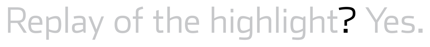 If it was looking too good to be true, well, check out the rogue glyph. The question mark in “Replay of the highlight?” is changed to another font. And in the process an extra space was added. The actual, and very recognizable, Stainless question mark is shown below.