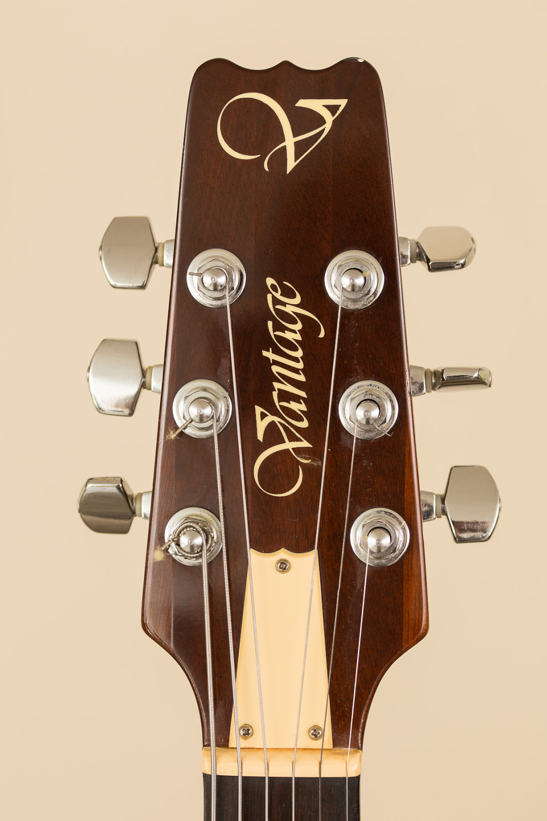 Their logo, shown here between the tuning keys on a guitar head, used Vivaldi.