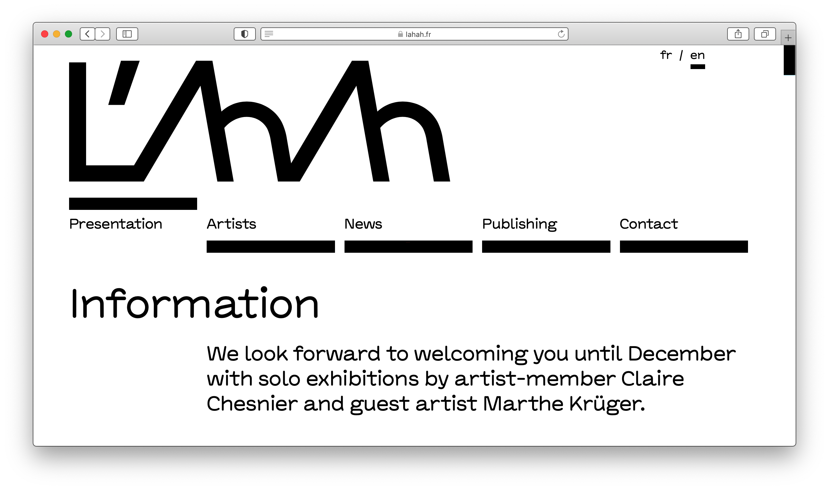 L’ahah is a non-profit organisation supporting contemporary creation and the research in arts. It offers tailor-made and long-term collaborations with the plastic artists. The association asked Baldinger•Vu-Huu to design its visual identity, which is applied on their website as well as on their exhibition flyers or their social networks.