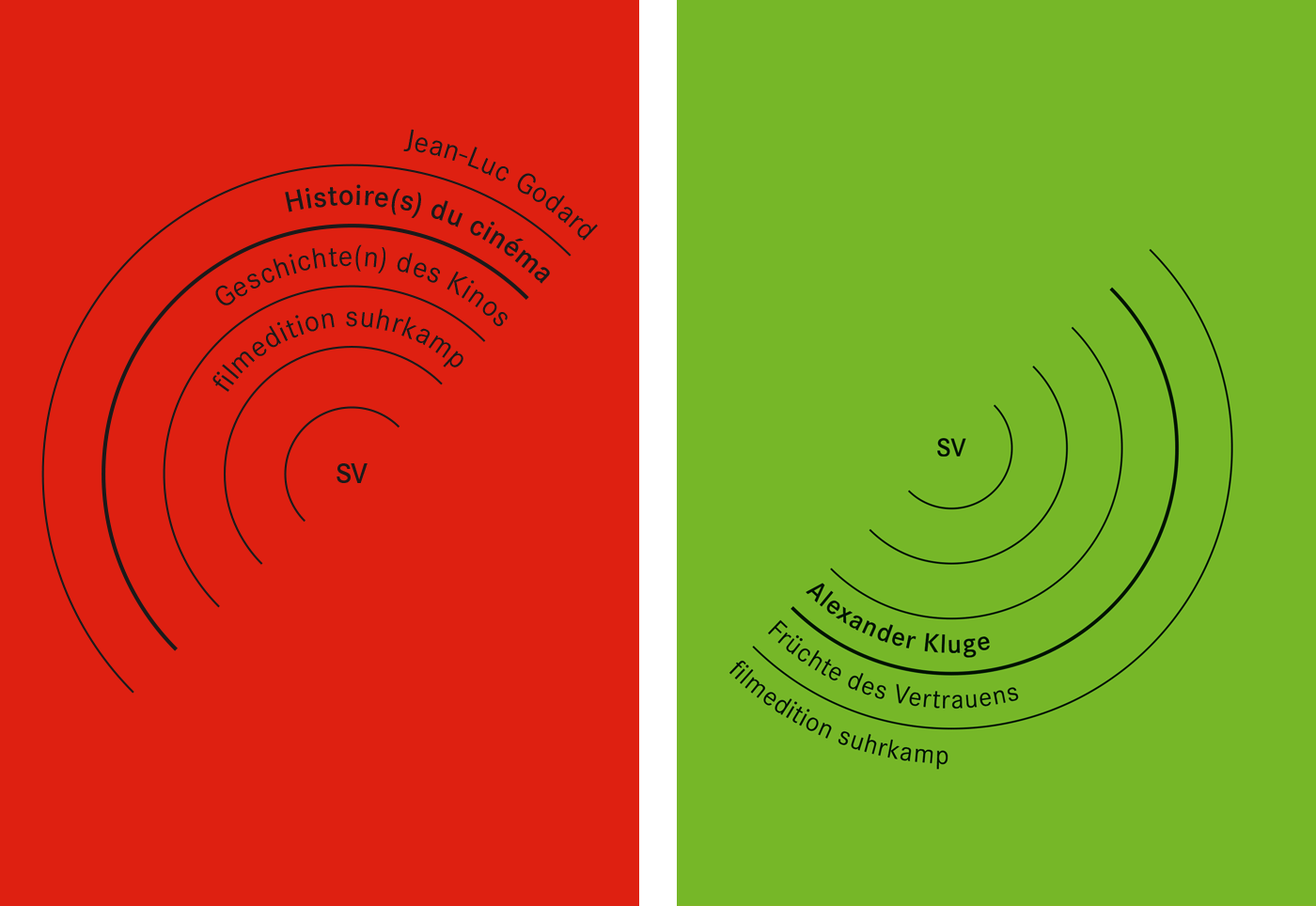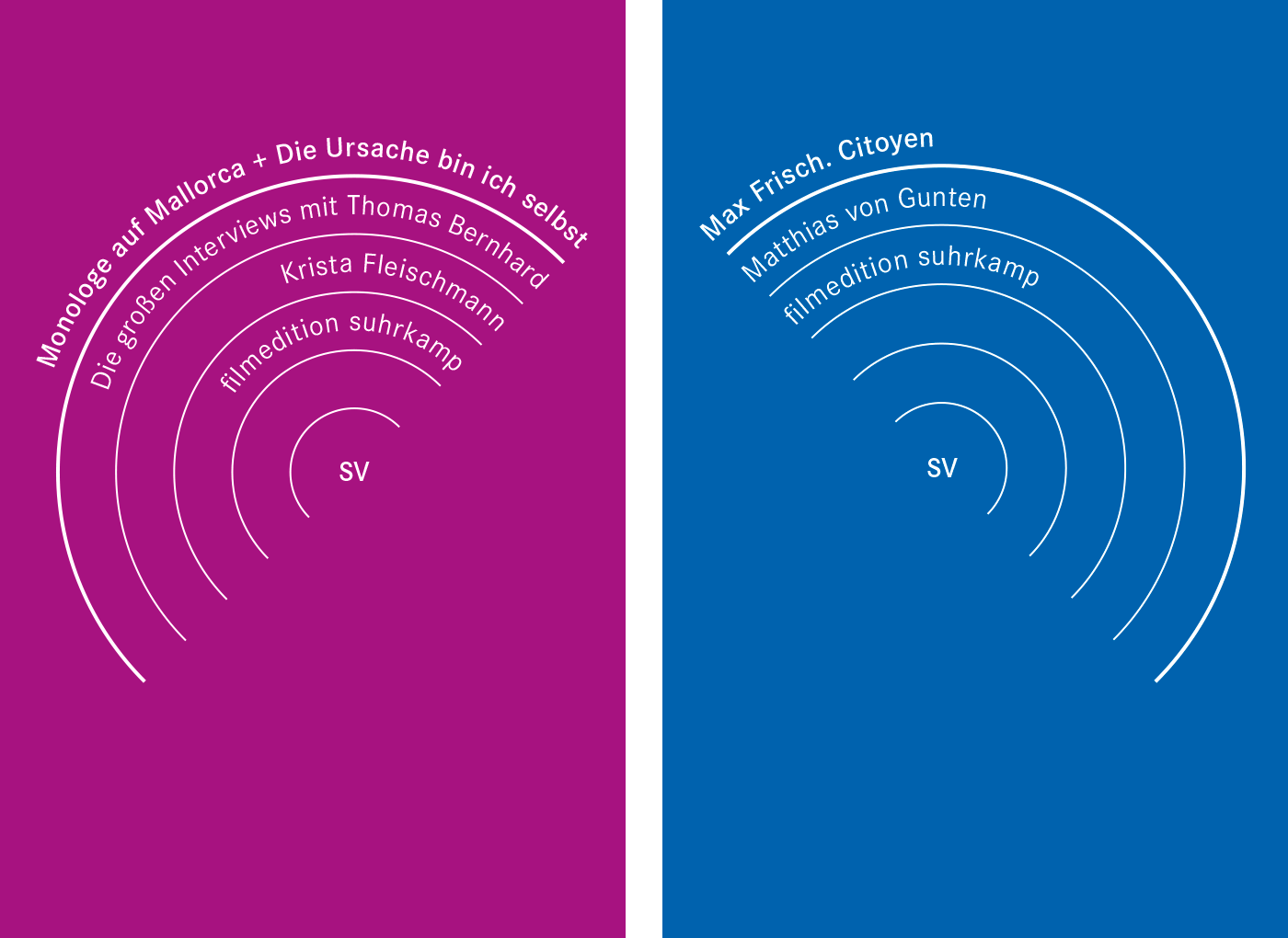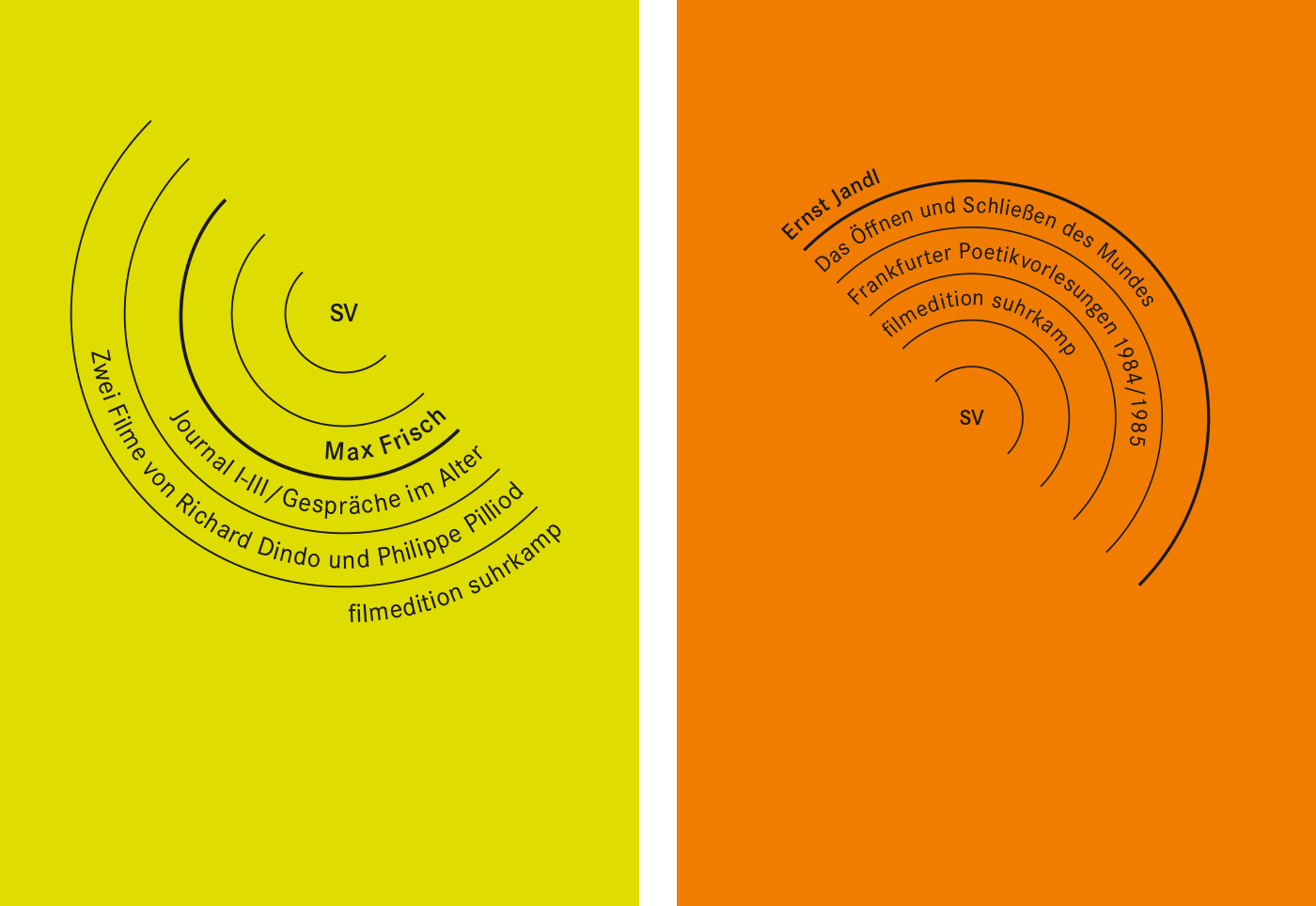 The filmedition suhrkamp (fes) series features cinematographic works by and about authors published by Suhrkamp, including Samuel Beckett, Thomas Bernhard, Pierre Bourdieu, Bertolt Brecht, Jacques Derrida, Marguerite Duras, Max Frisch, Jean-Luc Godard, Peter Handke, Ödön von Horváth, Alexander Kluge, Robert Walser and many more. The DVDs are produced in cooperation with absolut Medien. The series was started in 2008 and comprises 33 issues to date.