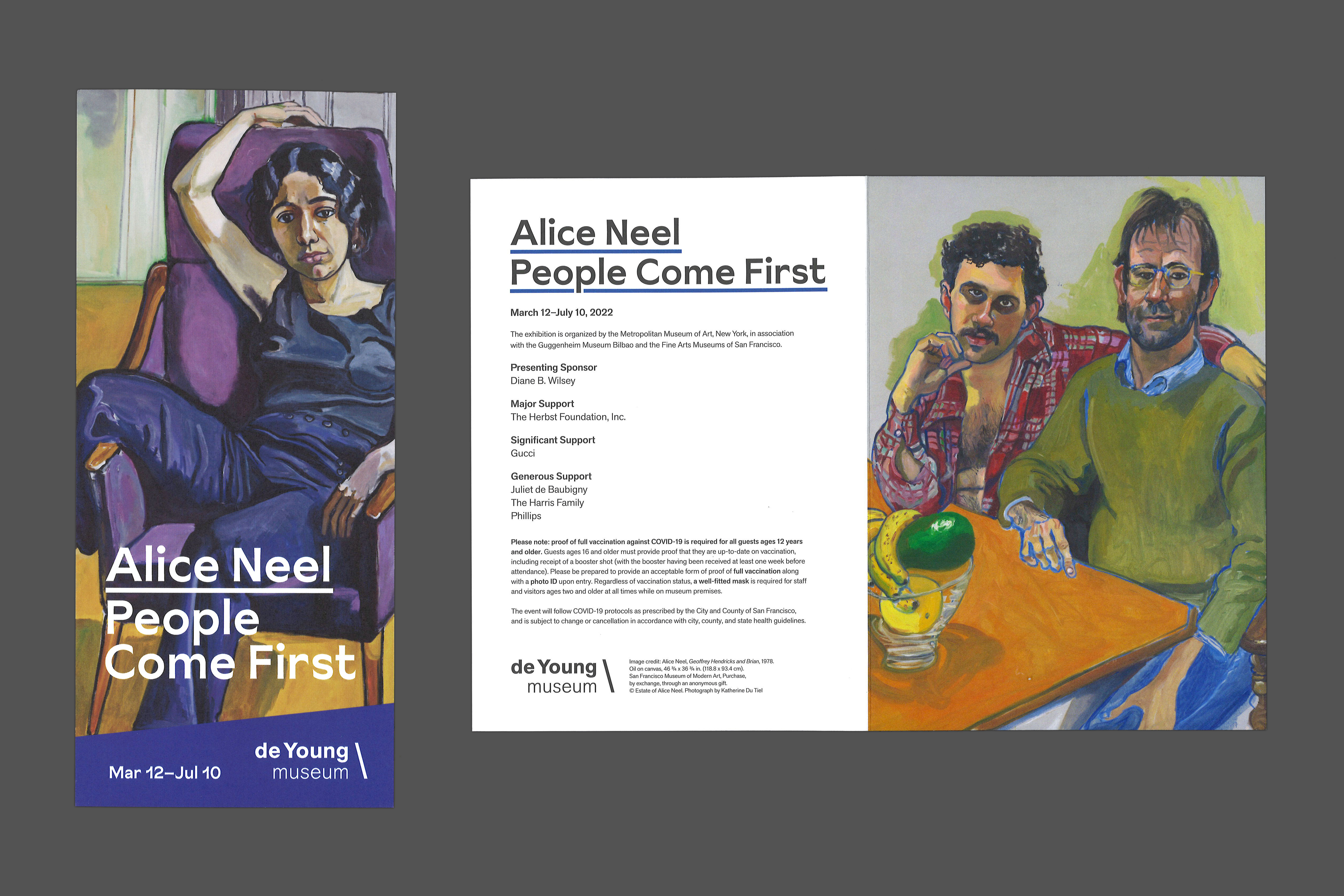 Sunset Gothic is used for the identity of Alice Neel: People Come First, the first comprehensive West Coast retrospective of Neel’s work hosted by the de Young museum. The exhibition includes depictions of Neel’s neighbors in Spanish Harlem, political leaders, queer cultural figures, activists, and mothers, along with a diverse representation of nude figures, including visibly pregnant women. Neel’s “pictures of people” embody a rare candor and irreverence.