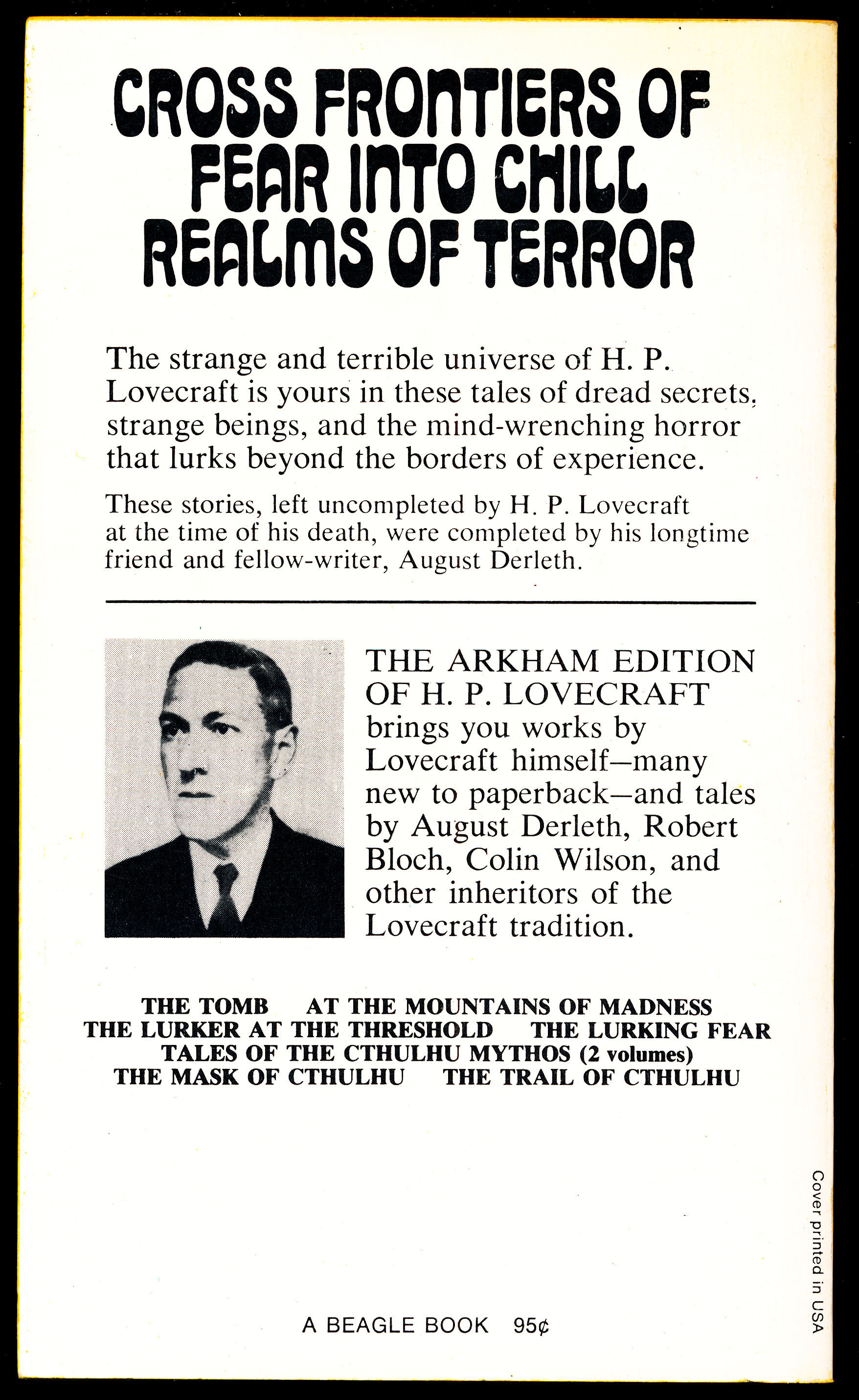 The same cover design including Vigus, Baskerville, and the creepy “palm tree” illustration by Picture Post was also used for a 1971 printing by Beagle Books.