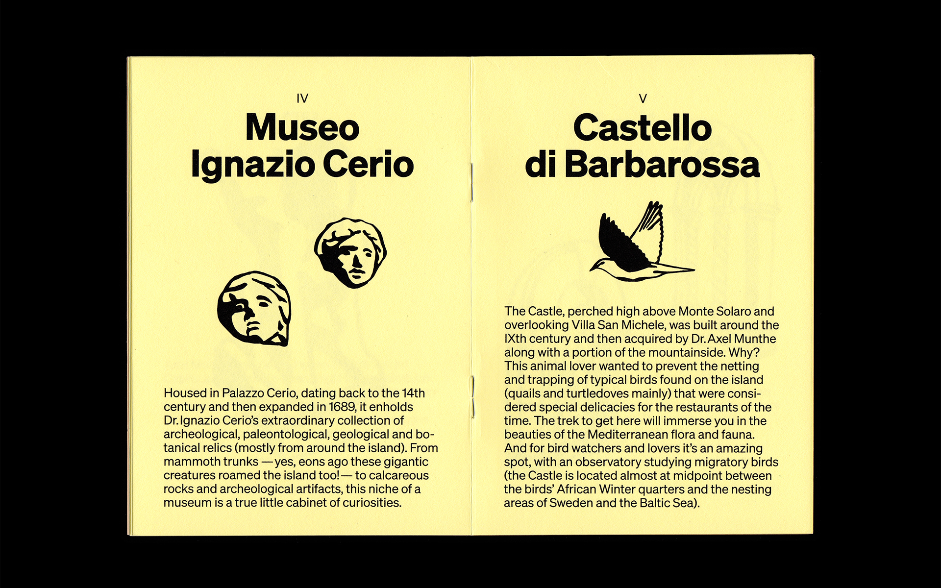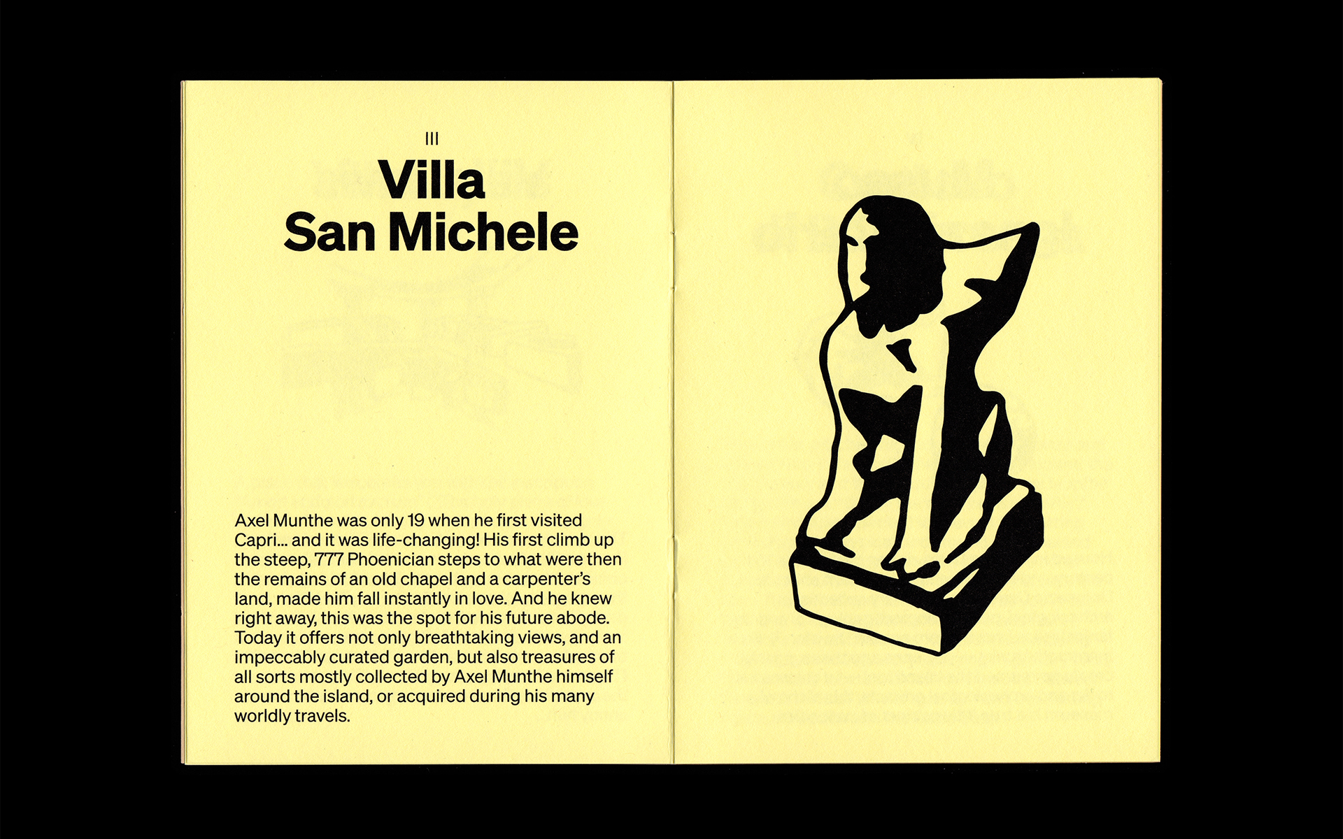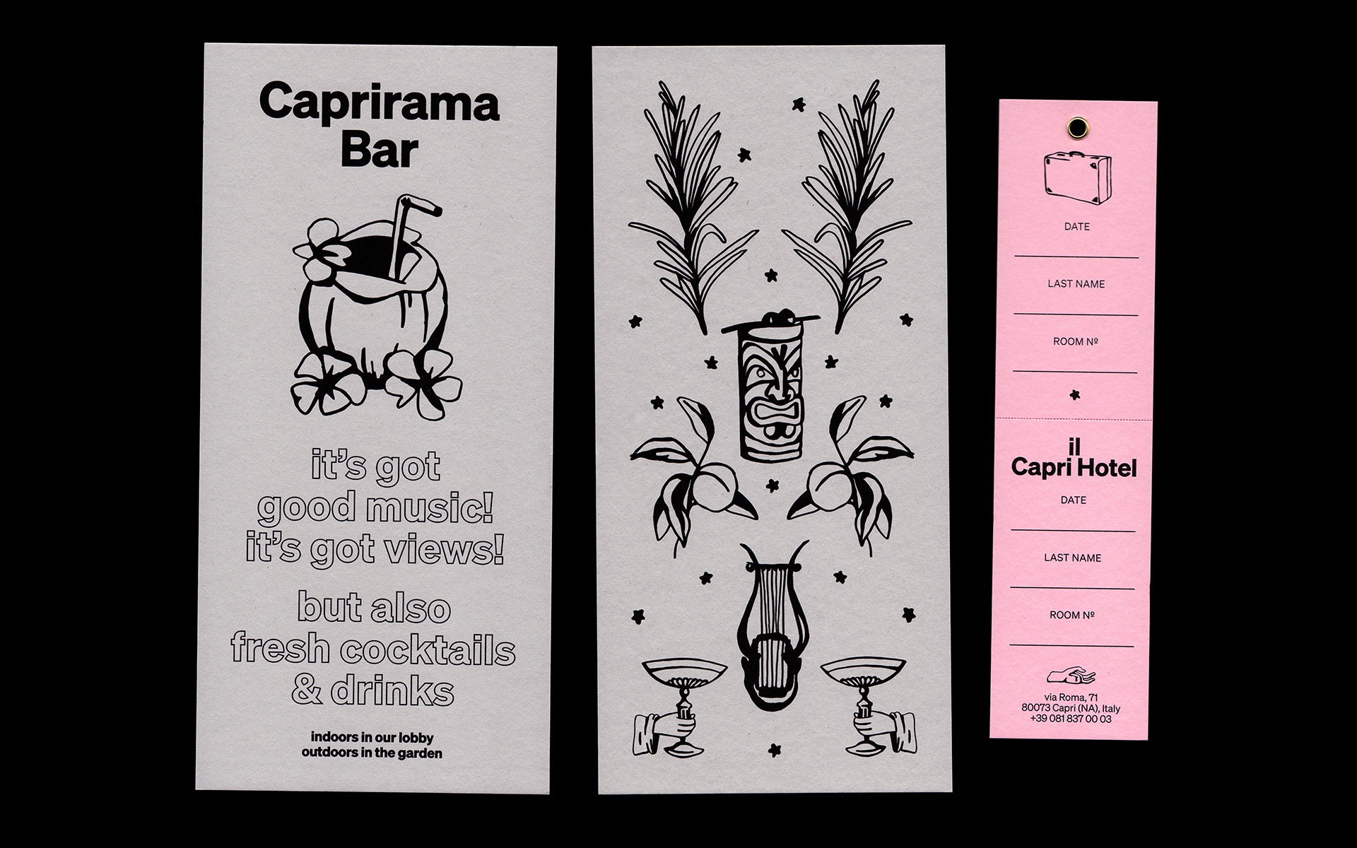 Il Capri Hotel Contributed by Fakepaper on Jun 16th, 2022. Artwork published in 2022. Fakepaper. License: All Rights Reserved. Visual identity for the Italian Il Capri Hotel, “a neo-gothic style pink palazzo set in the pulsating center of Capri”. Söhne by Klim Type Foundry is used throughout in two weights, mixed with ancient-inspired and pop illustrations. Fakepaper. License: All Rights Reserved. Fakepaper. License: All Rights Reserved. Fakepaper. License: All Rights Reserved. Fakepaper. License: All Rights Reserved. Fakepaper. License: All Rights Reserved. Fakepaper. License: All Rights Reserved. Fakepaper. License: All Rights Reserved. Fakepaper. License: All Rights Reserved. Fakepaper. License: All Rights Reserved. Fakepaper. License: All Rights Reserved. Typefaces More about SöhneGet Söhne Formats Branding/Identity (8358) Topics Travel (792) Lifestyle (1420) Designers/Agencies Fakepaper (21) Tagged withhotels (146)pink and red (32)outlined type (1251)center-aligned text (1881)brochures (200)stationery (802)social media (1067)one typeface family (1665)door hangers (34)colored paper (311) Artwork location France (2803) Italy (961) Paris (1302) Capri (1) In SetsIdentity (miguel anønimo) (383)Layer (miguel anønimo) (306)inspo (Pilar Sabogal) (48)Designs by Women (Fonts In Use Staff) (3529)TYPE (Dunya Ahmad) (361)visual identity (Philippe Lepilleur) (52) Post a comment Name Email – will not be published Website Your response Submit Comment More Söhne in use Stripe website (2020)2020StripeJonnie HallmanContributed by Drew Powers Rights of Way2021Wibke BramesfeldContributed by Wibke Bramesfeld Gurudutt Perichetla portfolio website (2023)2023Gurudutt PerichetlaContributed by Gurudutt Perichetla Sponsor More in Travel Developing Mountain Biking in Scotland logo2021Paul MullenContributed by Production Type Heidenheim an der Brenzc. 2015Nico HenselChristina NikolicAnna FranzContributed by Felix Braden “Till Ytterskären” flag2021Christoffer LekaAnna-Leena KirvesContributed by Christoffer Leka Leading Edge Aviationc. 2022unknownContributed by F37® More in Branding/Identity Sydney Festival 2022–24c. 2023Re AgencyContributed by Karin Wagner Avalon Hotel2002ReVerbPhoto(s) by Stephen Coles on Flickr. ThéâtredelaCité posters and website (2019–2020)2019Paul GaconPierre VanniContributed by Adrien Menard Staff Pick Eaze delivery service2020Born & BredContributed by Swiss Typefaces More Fonts In Use Instinct de liberté Collection, Lux Éditeur2017Jolin MassonContributed by Jolin Masson Staff Pick Bobulate2011Jason Santa MariaContributed by Anna Giedryś Staff Pick Ciência dos Magos, Ajna Editora2022Tereza BettinardiContributed by Gareth Hague Staff Pick U.S.A. Surpasses All The Genocide Records! poster and fact sheet1966George MaciunasFluxusContributed by Stephen Coles Staff Pick