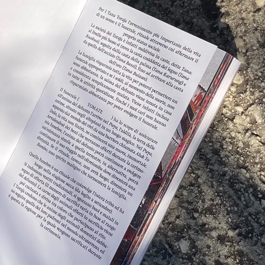 The focus of the book is the funeral ritual of the Tana Toraja, an Indonesian tribe. The ceremonial has been analysed and divided into its main stages, each accompanied by Domenico Barile’s photographic documentation. Other traditions related to death were then juxtaposed to each of the ritual’s phases, in a process of similarity that is as much ideological as it is practical-performative.