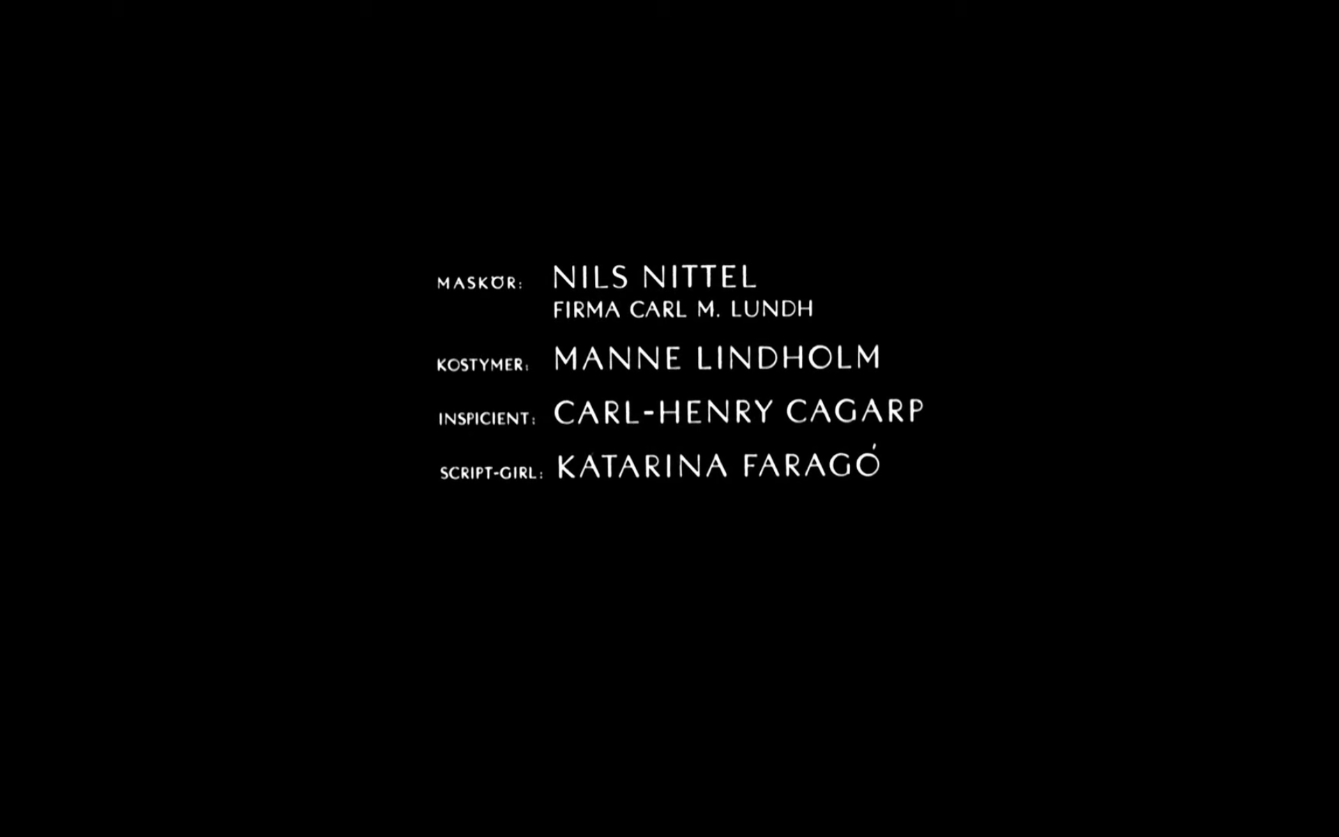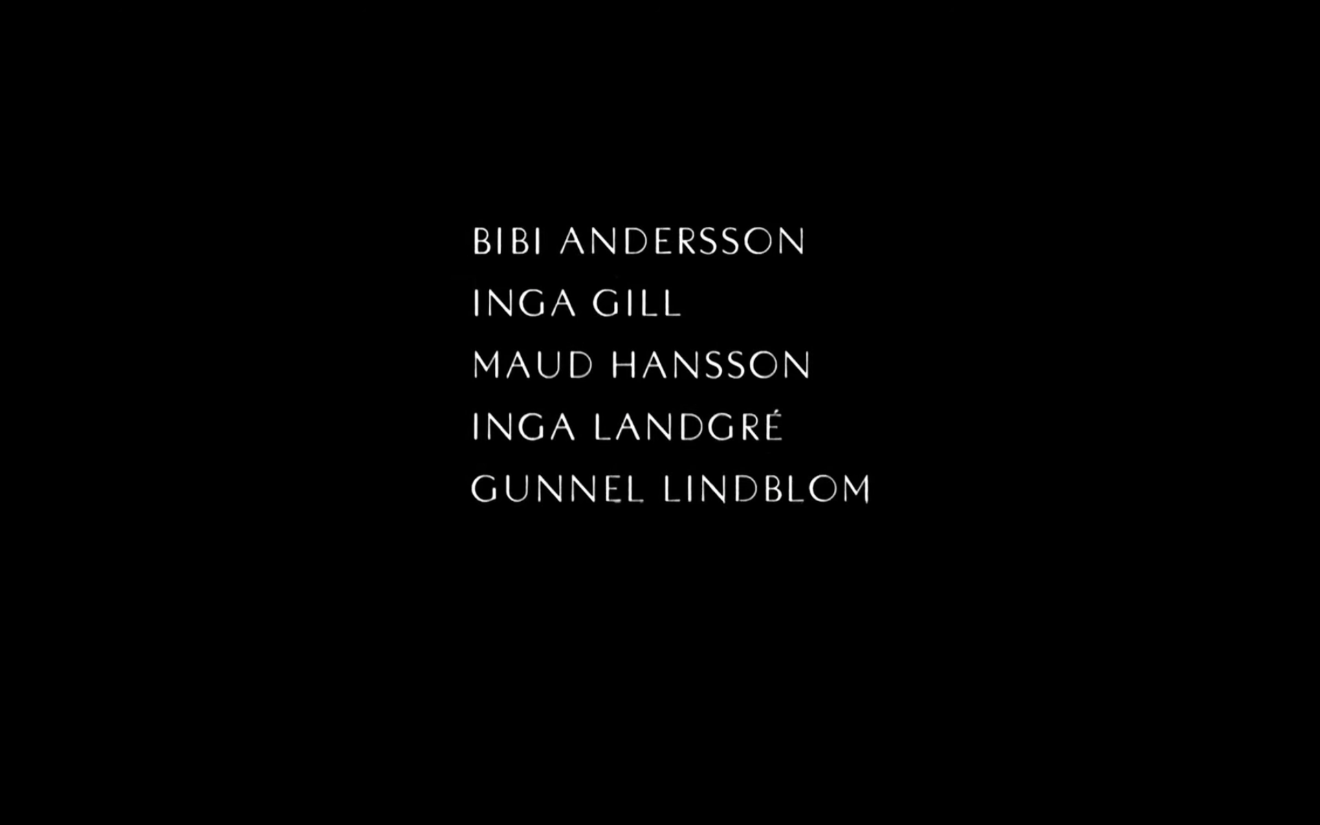 The Persona (1966) title sequence [see also the post on Fonts In Use] is the only with black text on a white background, all others white on a black background.