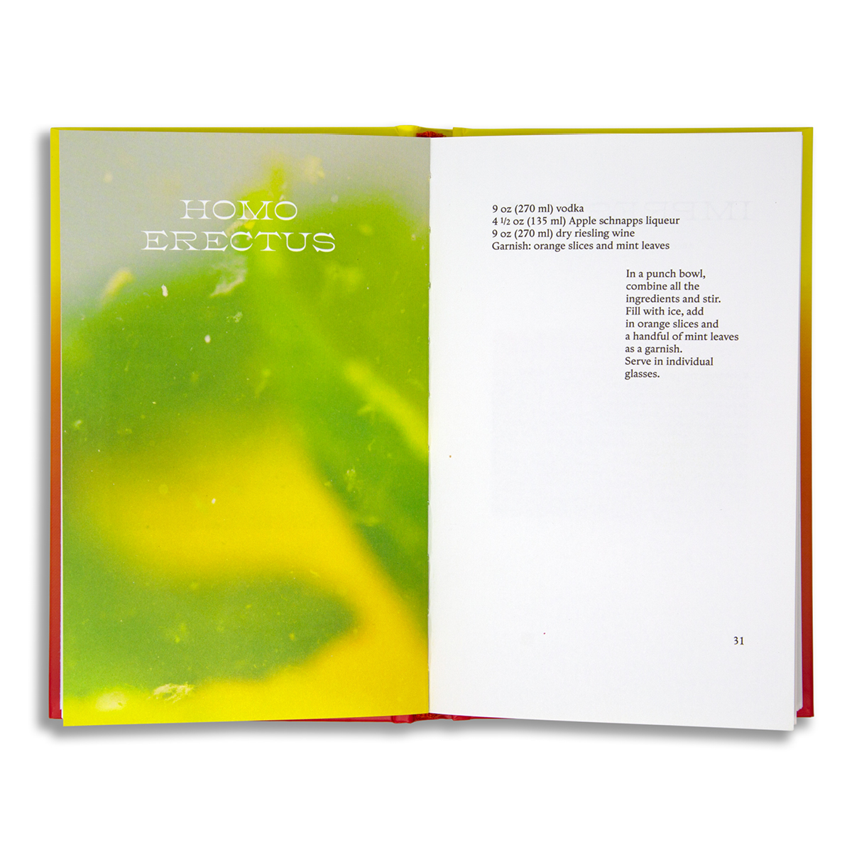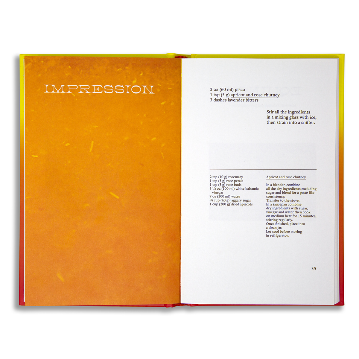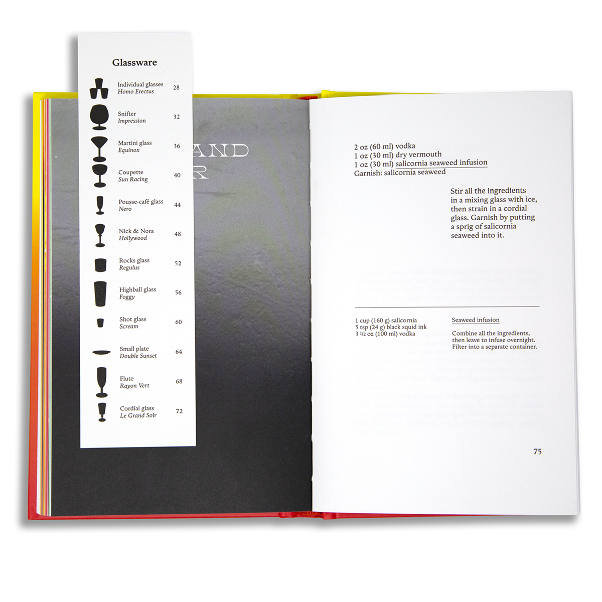 From the dazzling Regulus, whose saffron ice cube spreads its light in the vermouth, to Grand Soir, a political sunset that infuses the charcoal into the vodka. In a luminous afterword, Ryoko Sekiguchi awakens our senses and our bodies to receive fascination for an esthetic and gustatory experience. The book comes with a bookmark with the glassware specific to each cocktail for reference.