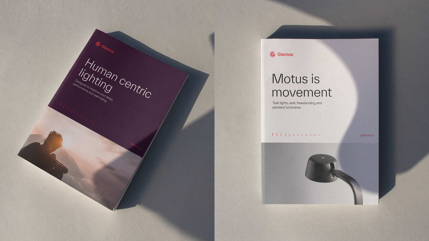 Rebranding for Glamox by Knowit using various styles of TWK Everett throughout. The logotype features a slightly modified terminal of G.