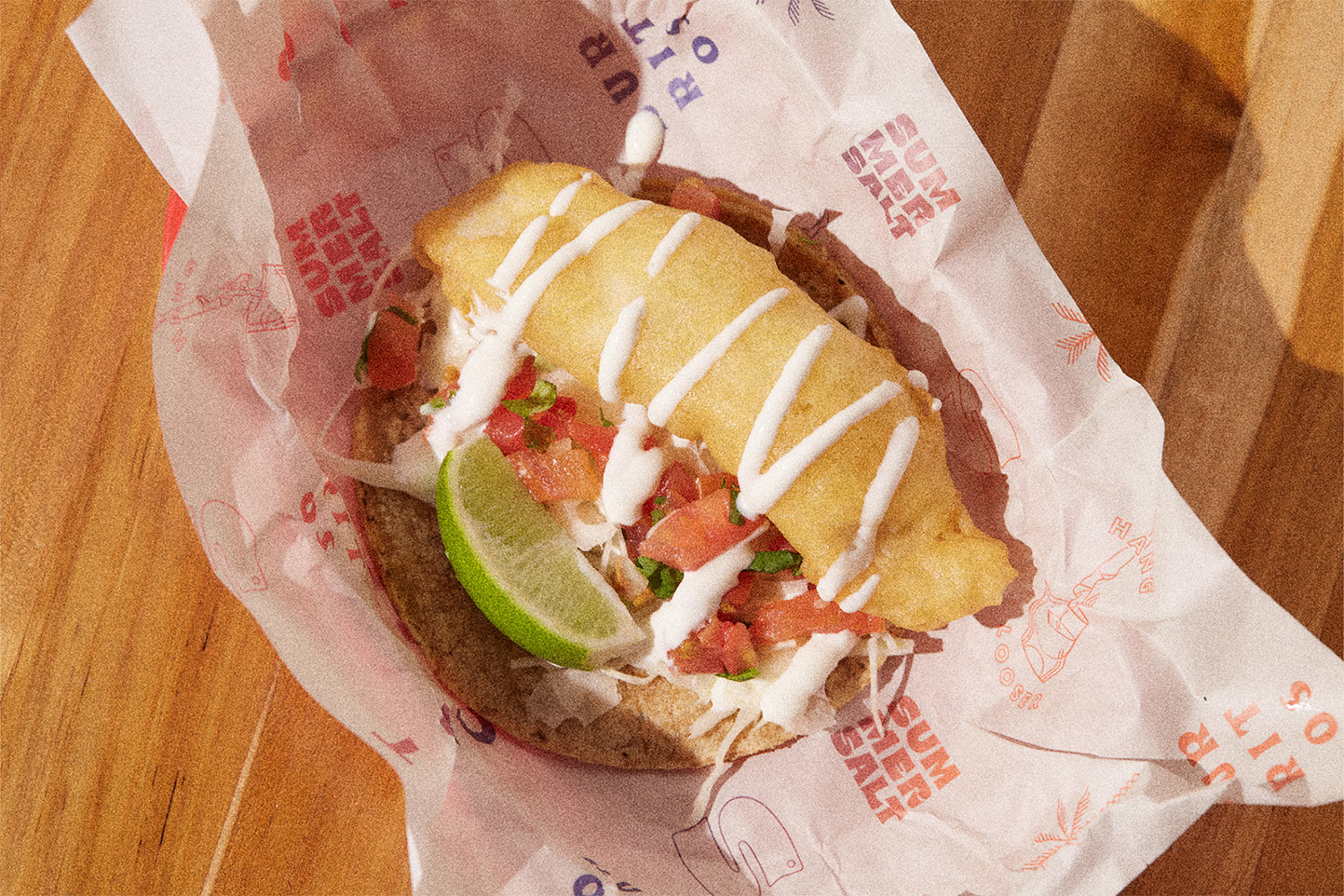 Founded by Danny Lyu, a former SoCal surfer, Summer Salt embodies surf culture and the food that rolls with it. Danny collaborated with Hungry to bring the burritos stuffed with fries that he inhaled during his teenage years to NYC. Sunburst breeze blocks, custom chain-stitched banner and wavy typography embodies the founder’s ethos of a laid-back surfer, all grown up.