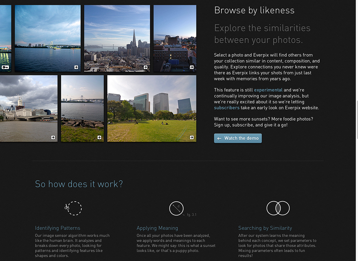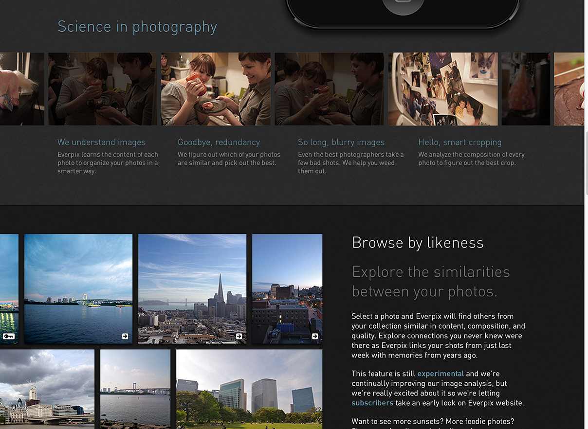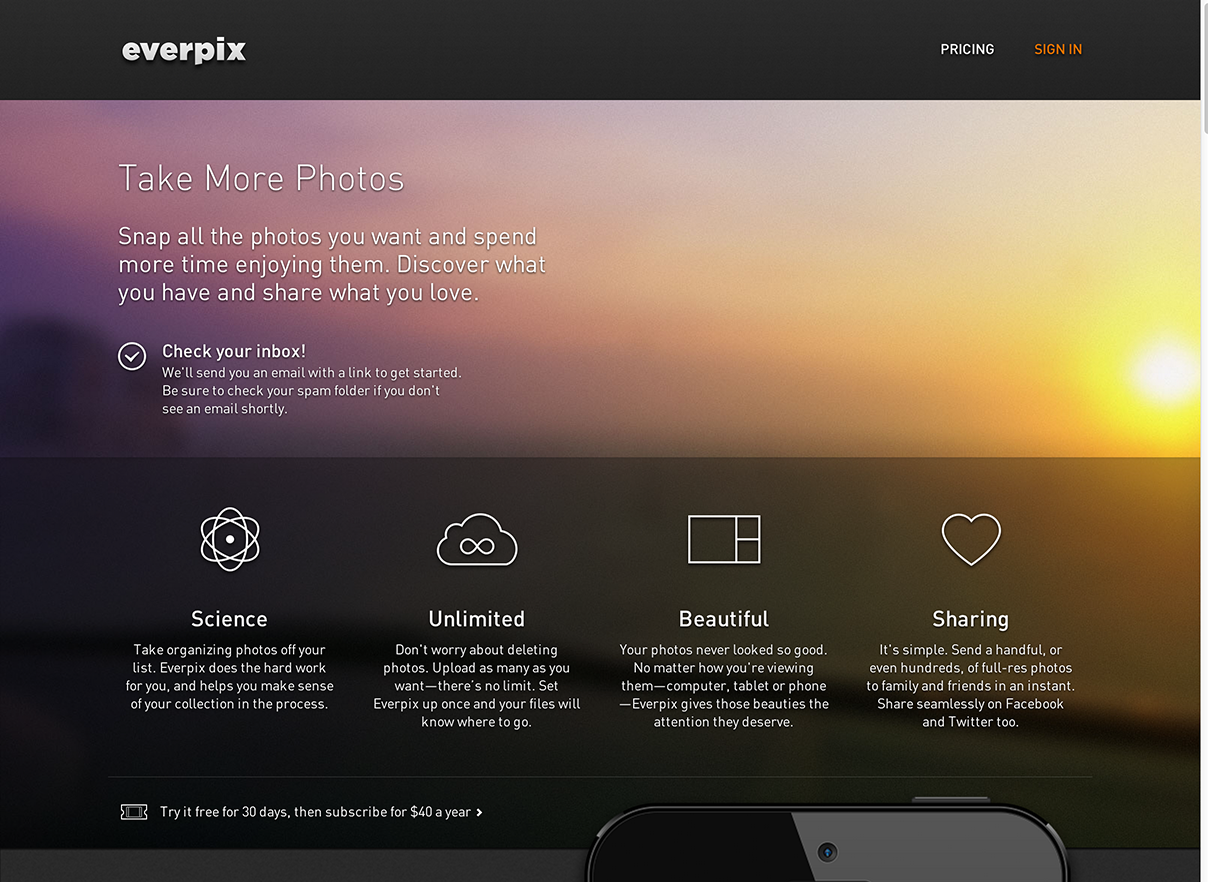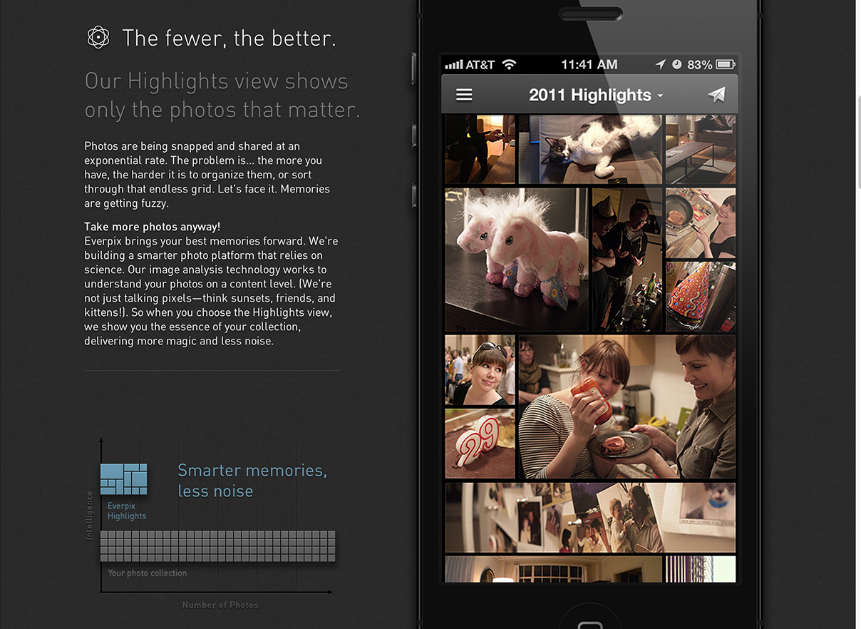 Everpix is an online photo storage service which employs FF DIN webfonts for its site and web app. The logo is set in Gotham Ultra with some modifications such as angled terminals on ‘p’ and ‘r’.