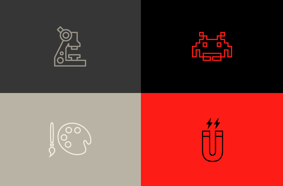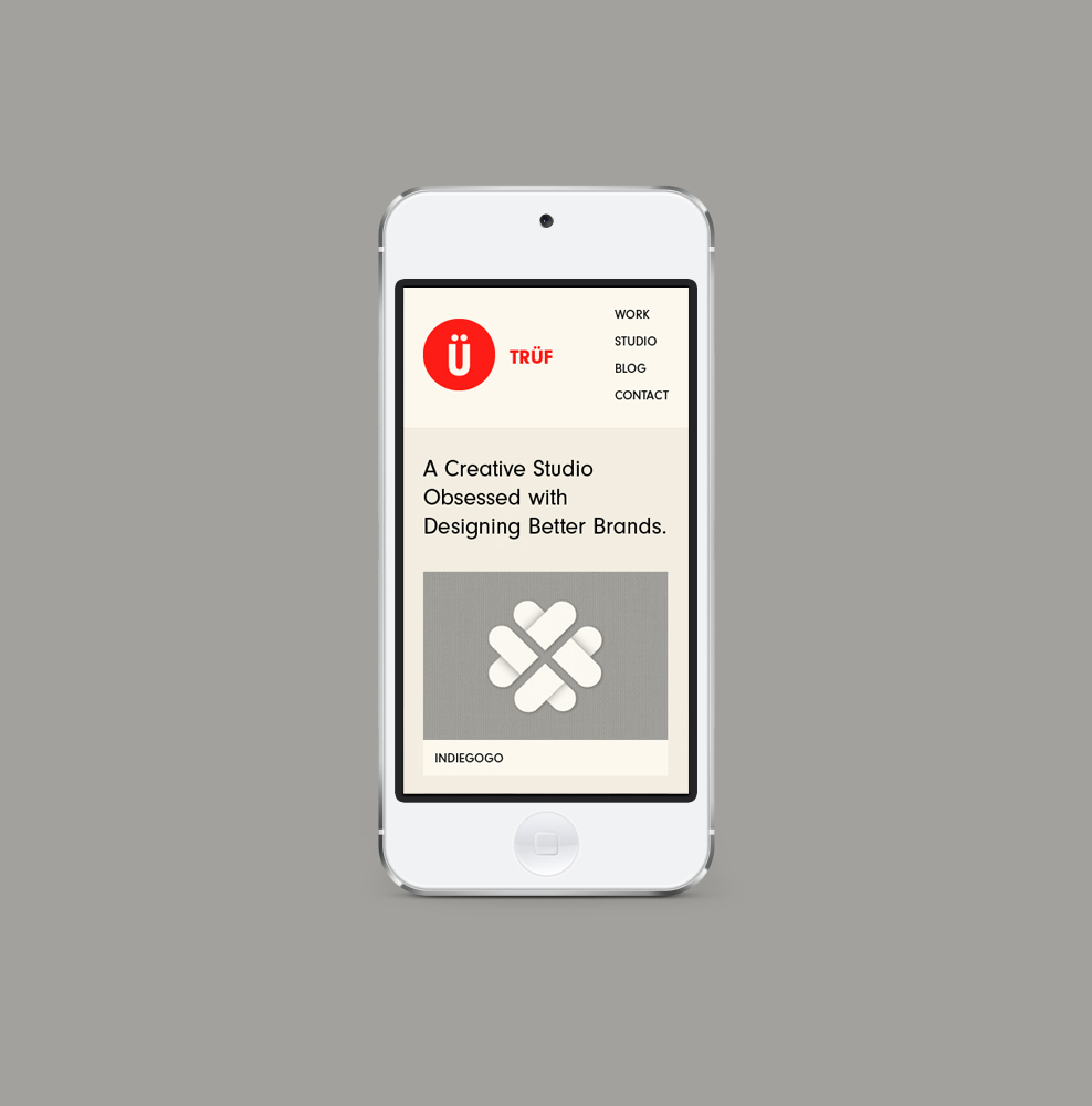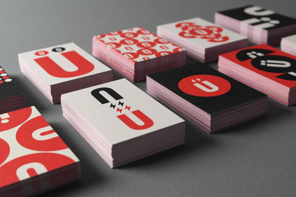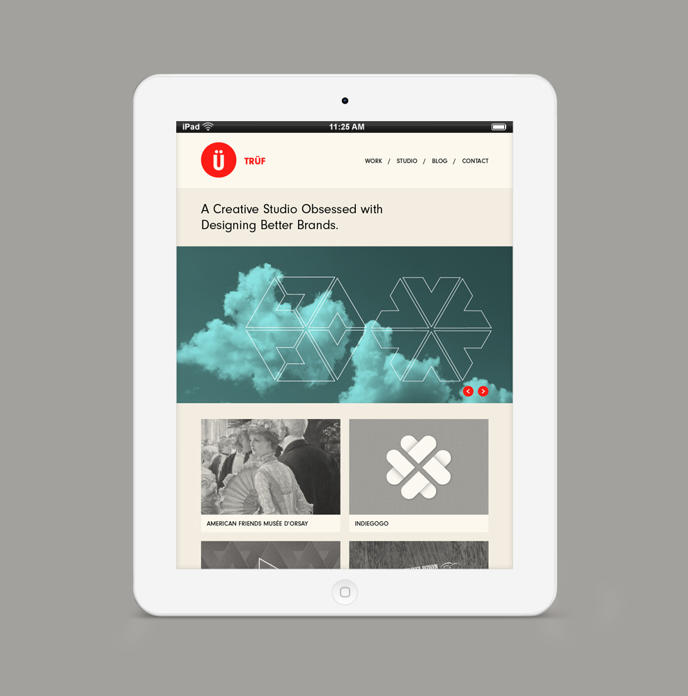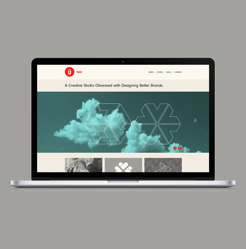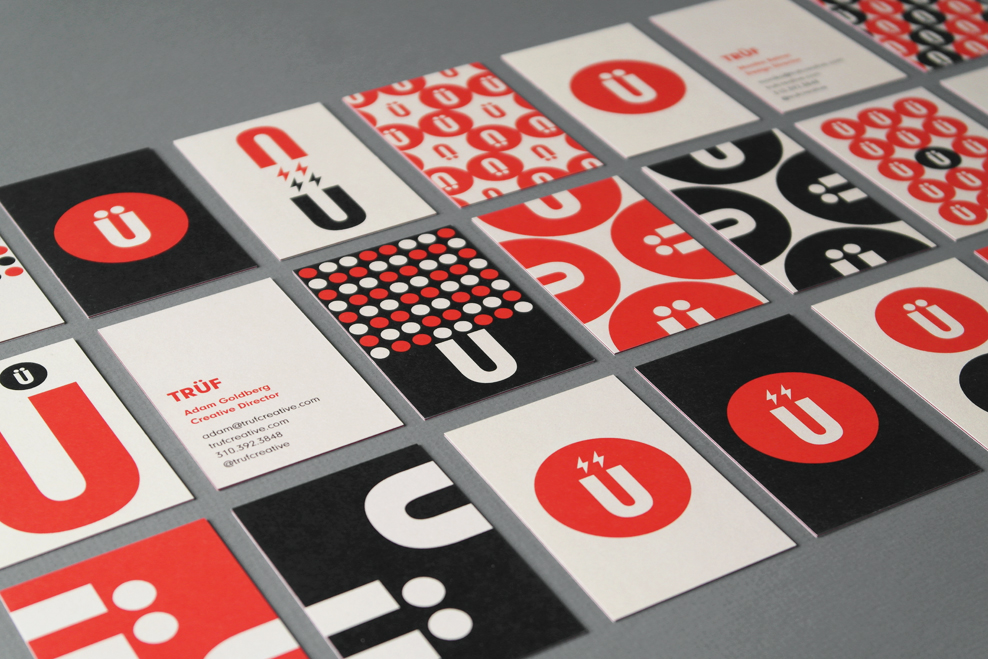 “After years of designing better brands for everyone else, we felt it was time to better our own. Moving away from the textured, Russian Constructivist-look and more towards the Swiss, we distilled our identity down to its purest form: der Umlaut. Circles, dots and the Ü motif reconfigure into interlocking and repeat patterns creating a set of unique business and greeting card designs. Electric bolts echo the magnetic philosophy behind our Brand Attraction process. The full system reflects our flexible design aesthetic. We partnered with JMX2 to build a site that’s responsive, making it a true fit for any size screen.” — TRÜF