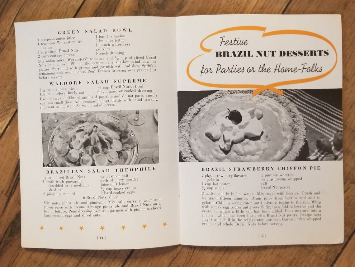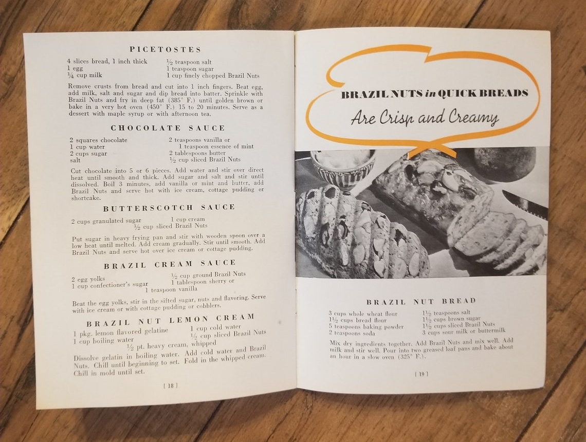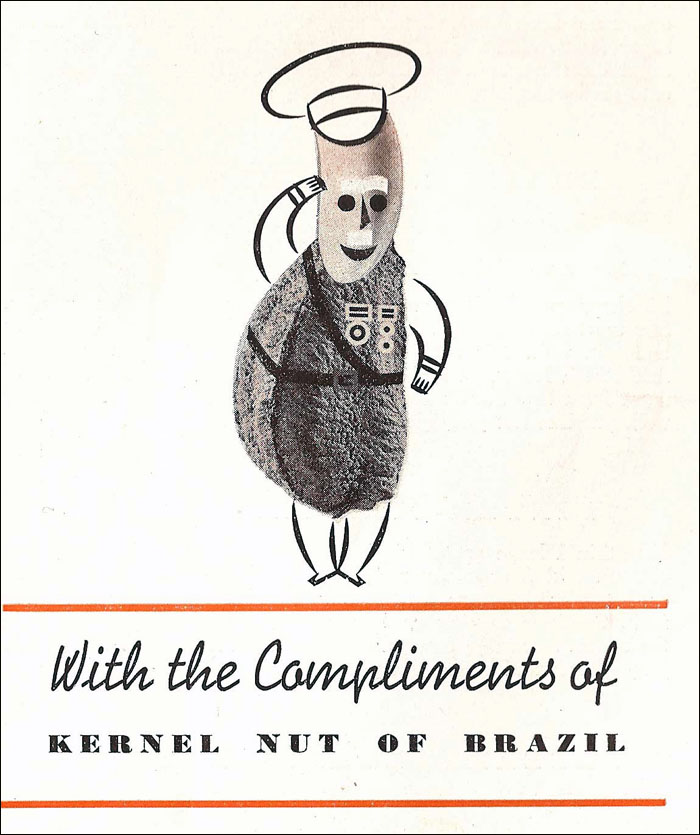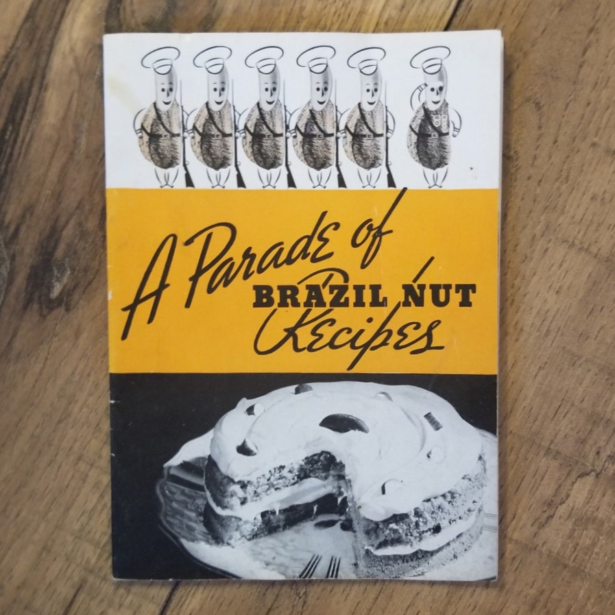 This booklet was issued by the Brazil Nut Association, New York. A version was advertised as early as in 1936, already featuring Kernel Nut of Brazil as seen on the back cover. The booklet was still distributed in 1950. The date of this specific editon is unknown.