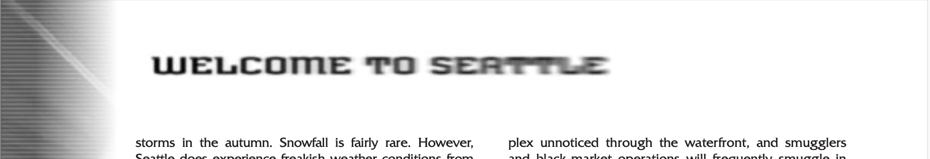 Shadowrun is a roleplaying game that was first released in 1989 by FASA Corporation, and is still published today in its current, sixth edition. For most of those editions, the primary typeface for body text has been Friz Quadrata (1966), which was also used for the game’s logo for the first and second editions (the latter from 1992), shown above.