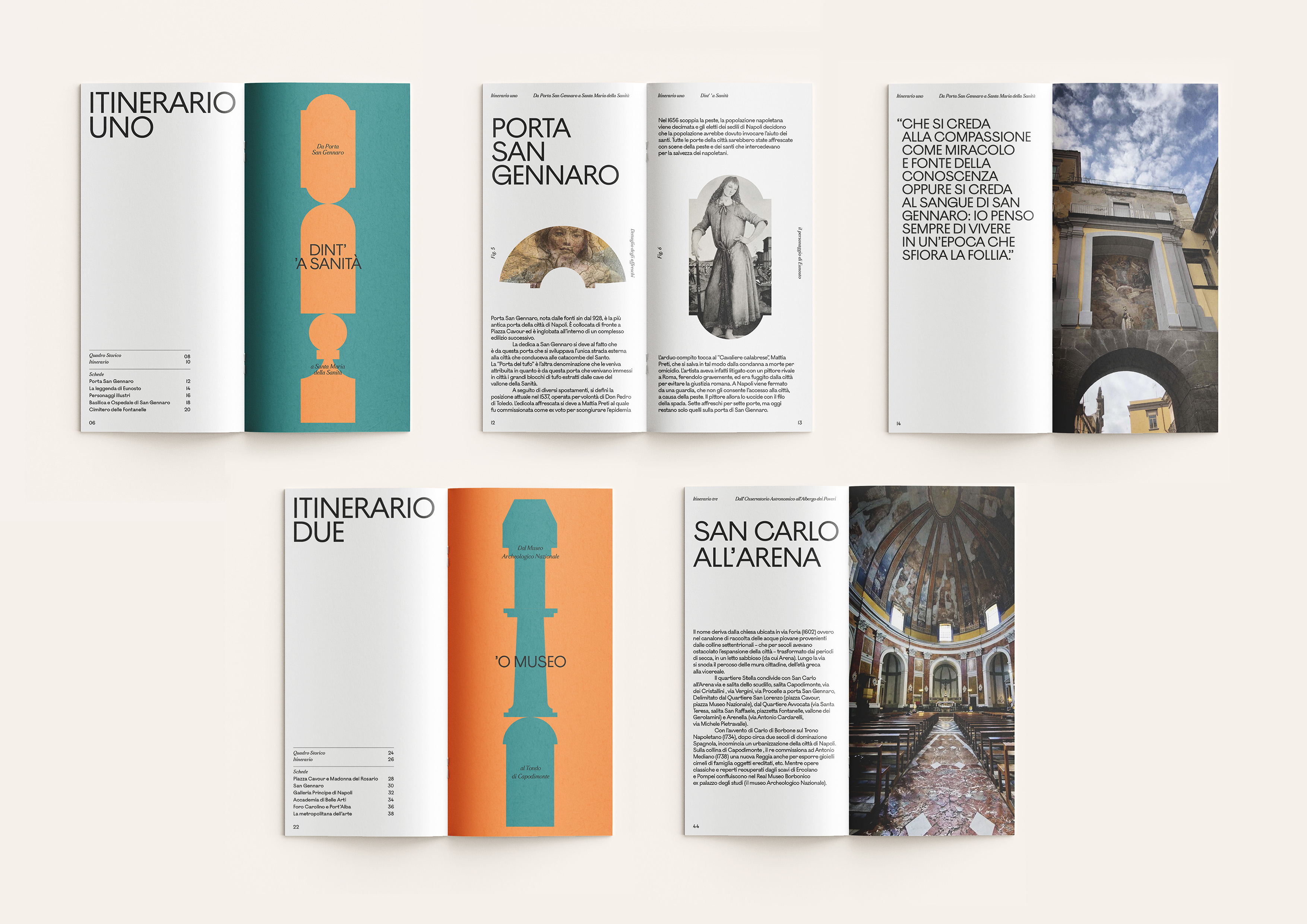 At the core of the visual language is a vocabulary of simple shapes, inspired by the common architectural features of the sites part of the network, that resolve into the solid D of the logo – standing for the “district”, a place to discover, explore and experience.