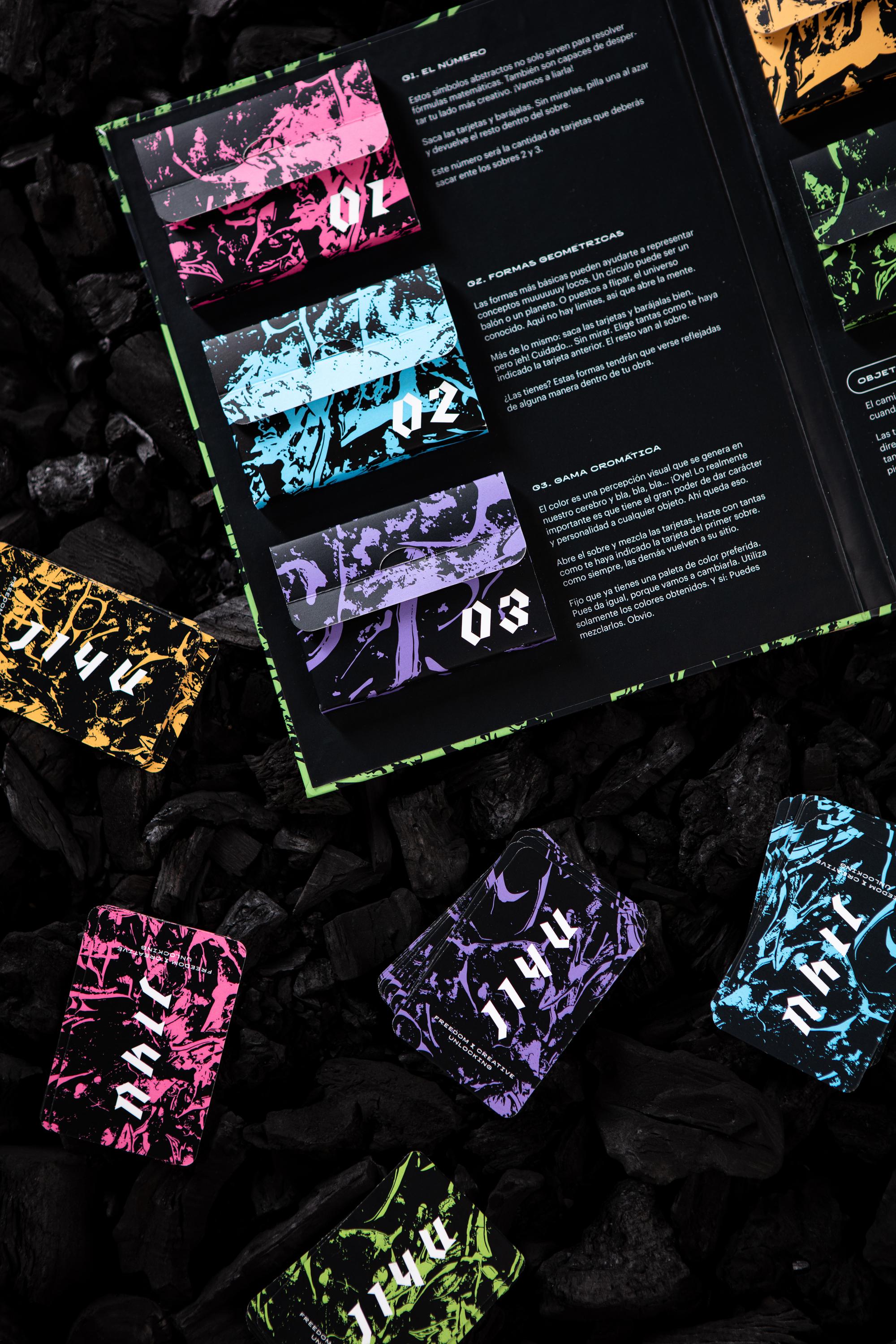 Jiyu. Freedom & Creative Unlocking, is a kit of cards designed to re-connect with your intuition. A no-game that will allow you to explore mindlessly and to try new techniques and registers, and you will be surprised with what you’re capable of creating.