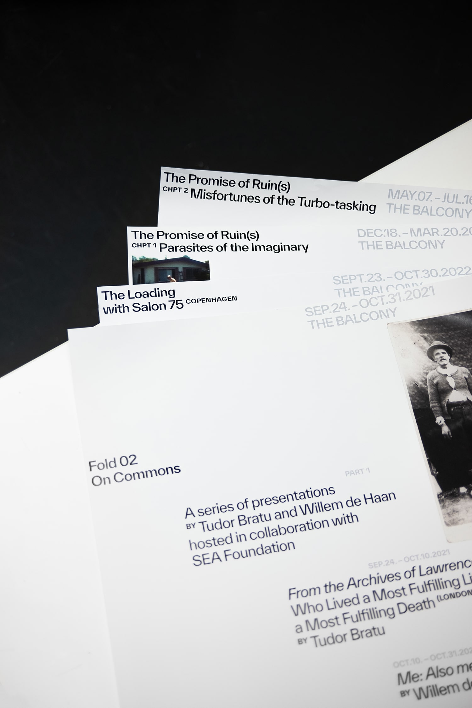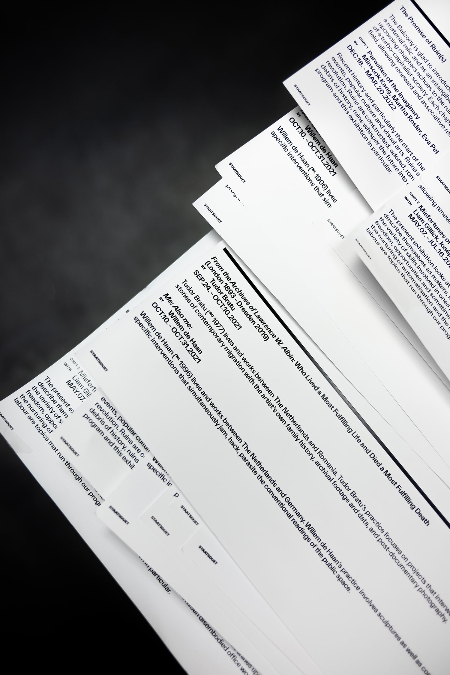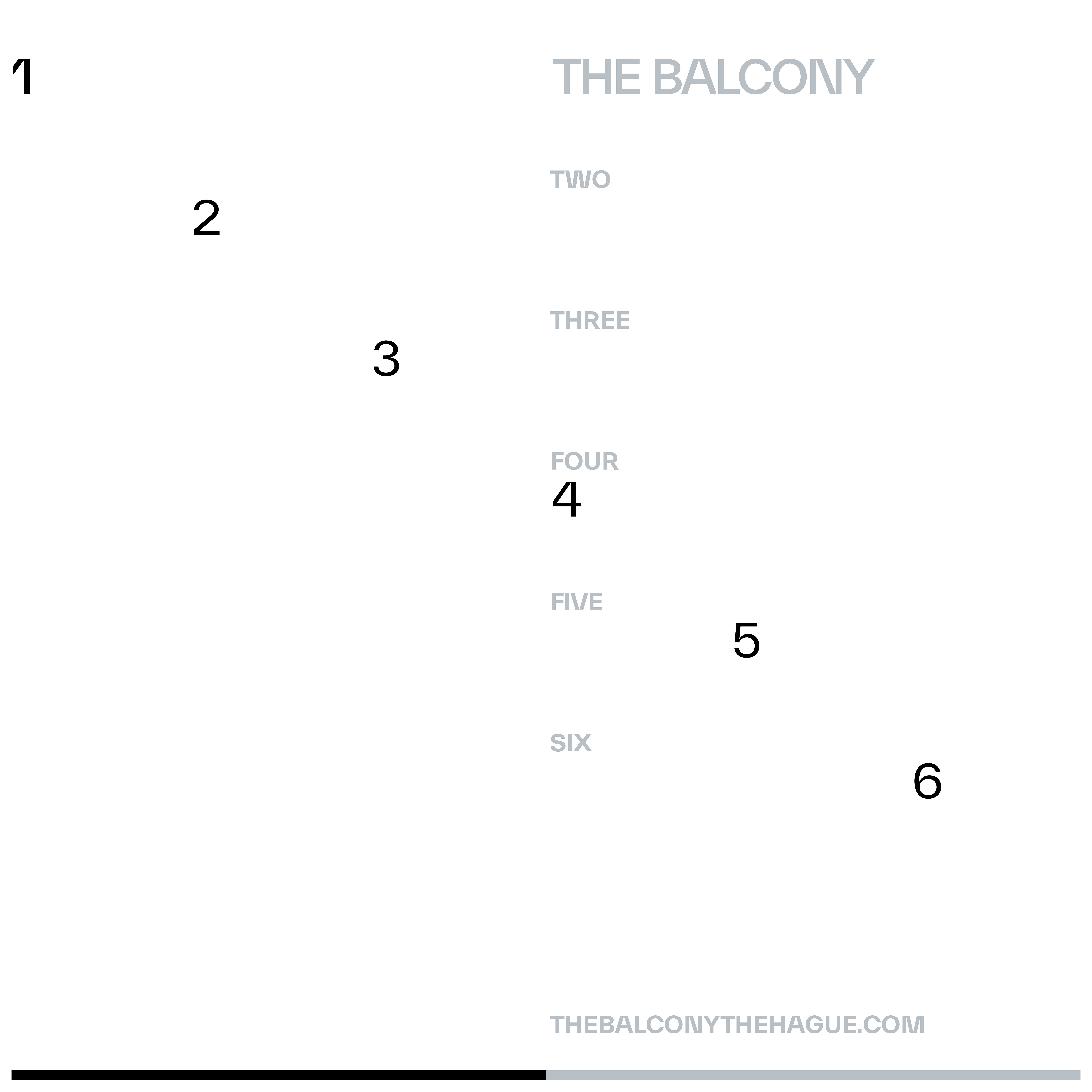 Development of a full-fledged flexible identity system for the non-profit and self funded artist initiative by Valentino Russo and Arthur Cordier. Based in The Hague, The Balcony also curates off-site exhibitions under the “Extramuros” editions. With each edition featuring a myriad of different artists and themes, the fluid identity follows the system of a continuous staircase which is crossed vertically by secondary information.