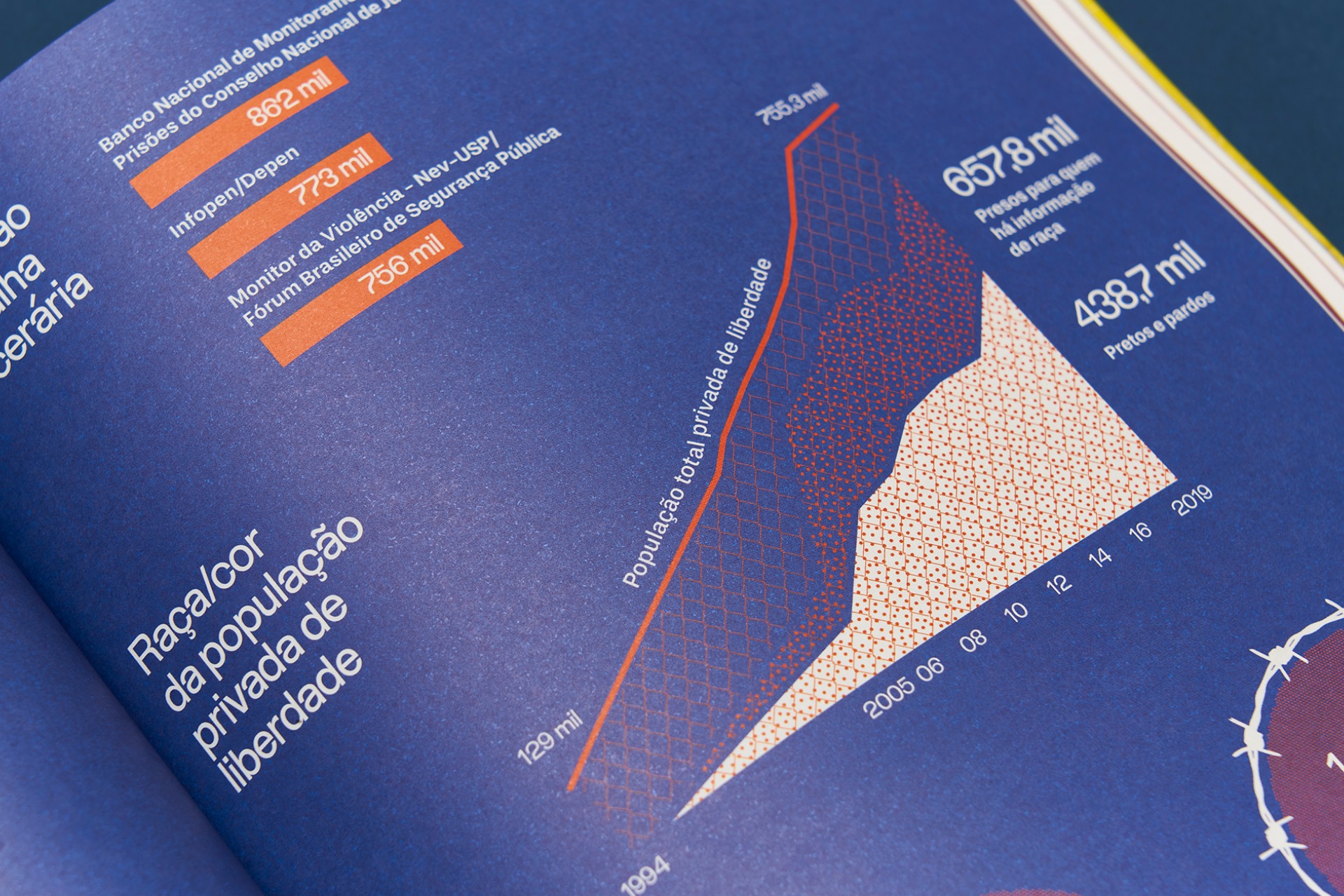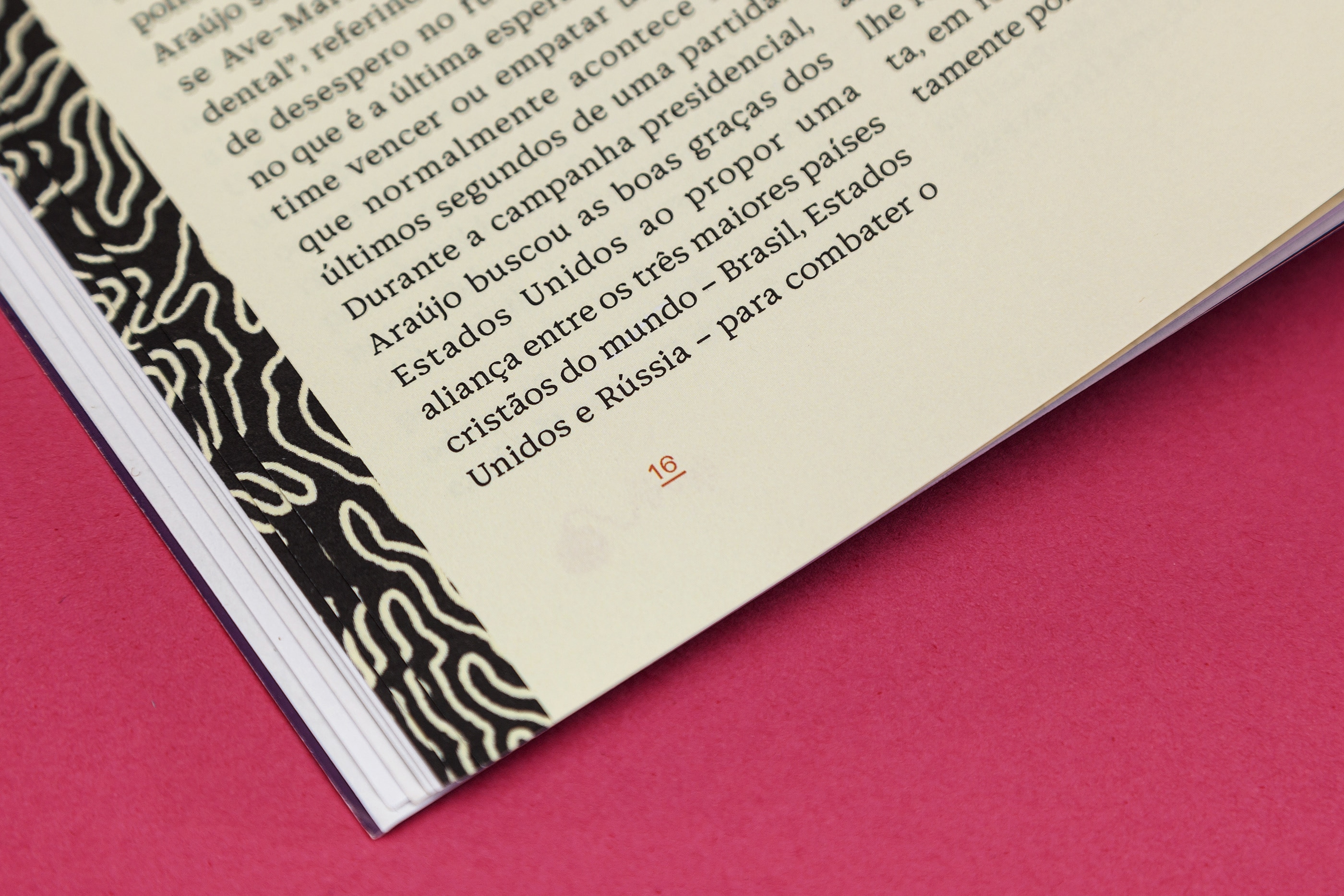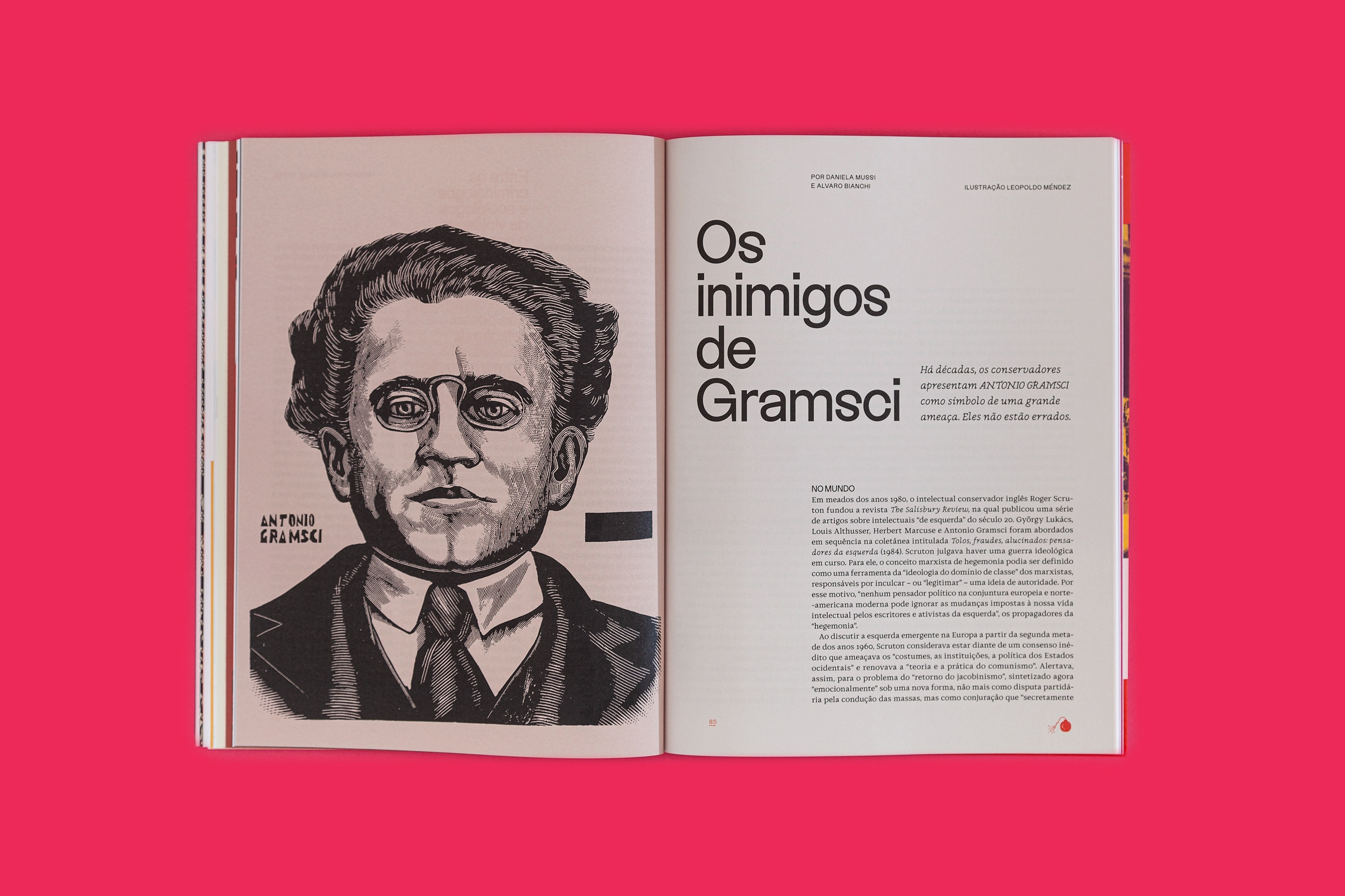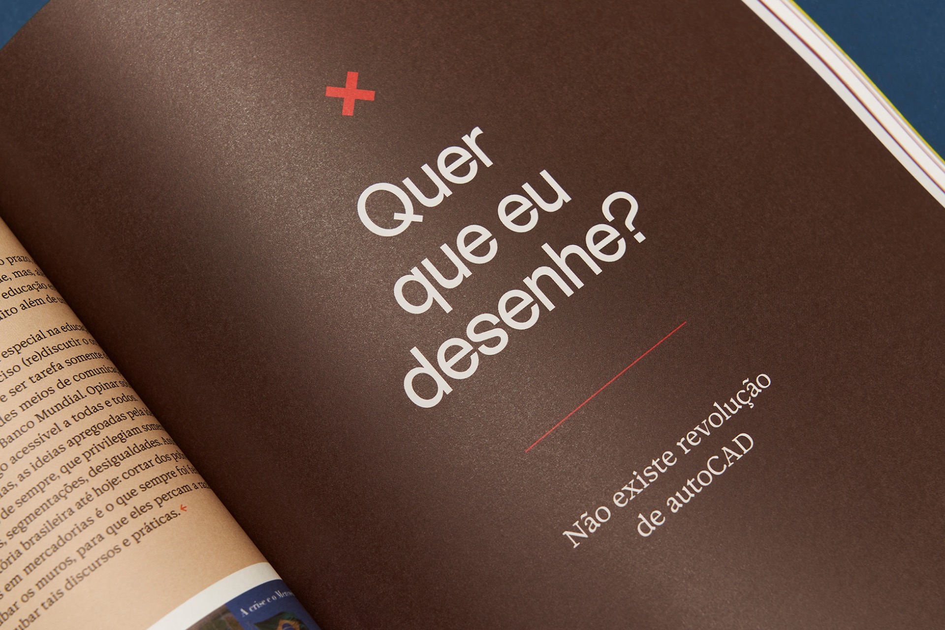 The whole publication is set exclusively in Brazilian typefaces: the titles are set in Fabiano Procópio's Durango Kid, body copy and headlines are set in Naipe Foundry’s Discórdia and additional text is set in Typefolio’s Stevie Sans. All the illustrations commisioned for the magazine are also by Brazilian artists. The nameplate, which could be either lettering or based on an existing typeface, was inherited from the magazine’s US version.