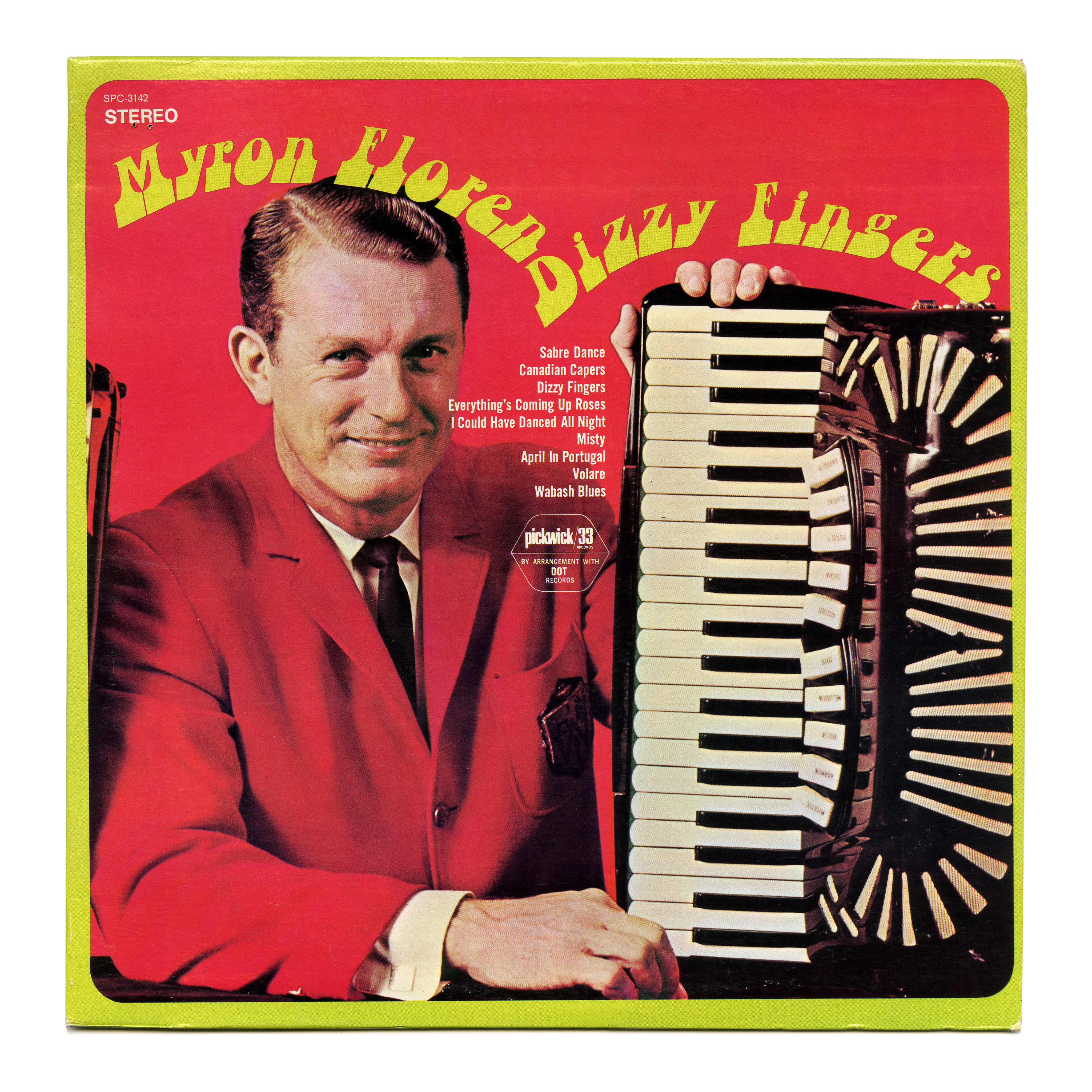 The bottom-heavy Chwast Art Tone, set on two curves, for an album by Myron Floren (1919–2005), who was best known as the accordionist on The Lawrence Welk Show between 1950 and 1980.