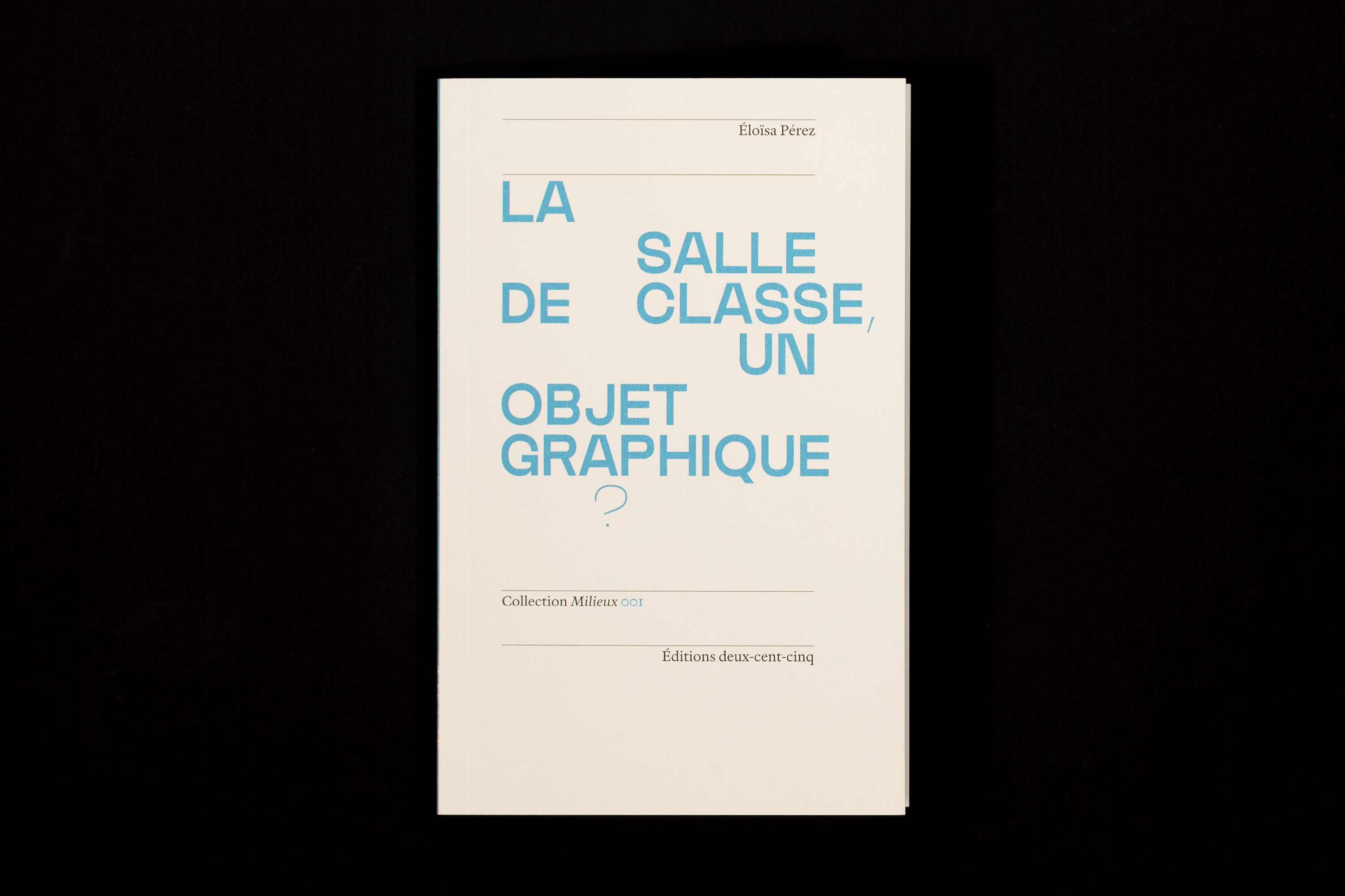 To design the book La salle de classe, un objet graphique? by Éloïsa Pérez (published by Éditions 205), Bureau 205 used the typefaces Heliuum by Damien Gautier, Immortel Infra by Clément Le Tulle-Neyret, and Muoto by Matthieu Cortat, all distributed by 205TF.