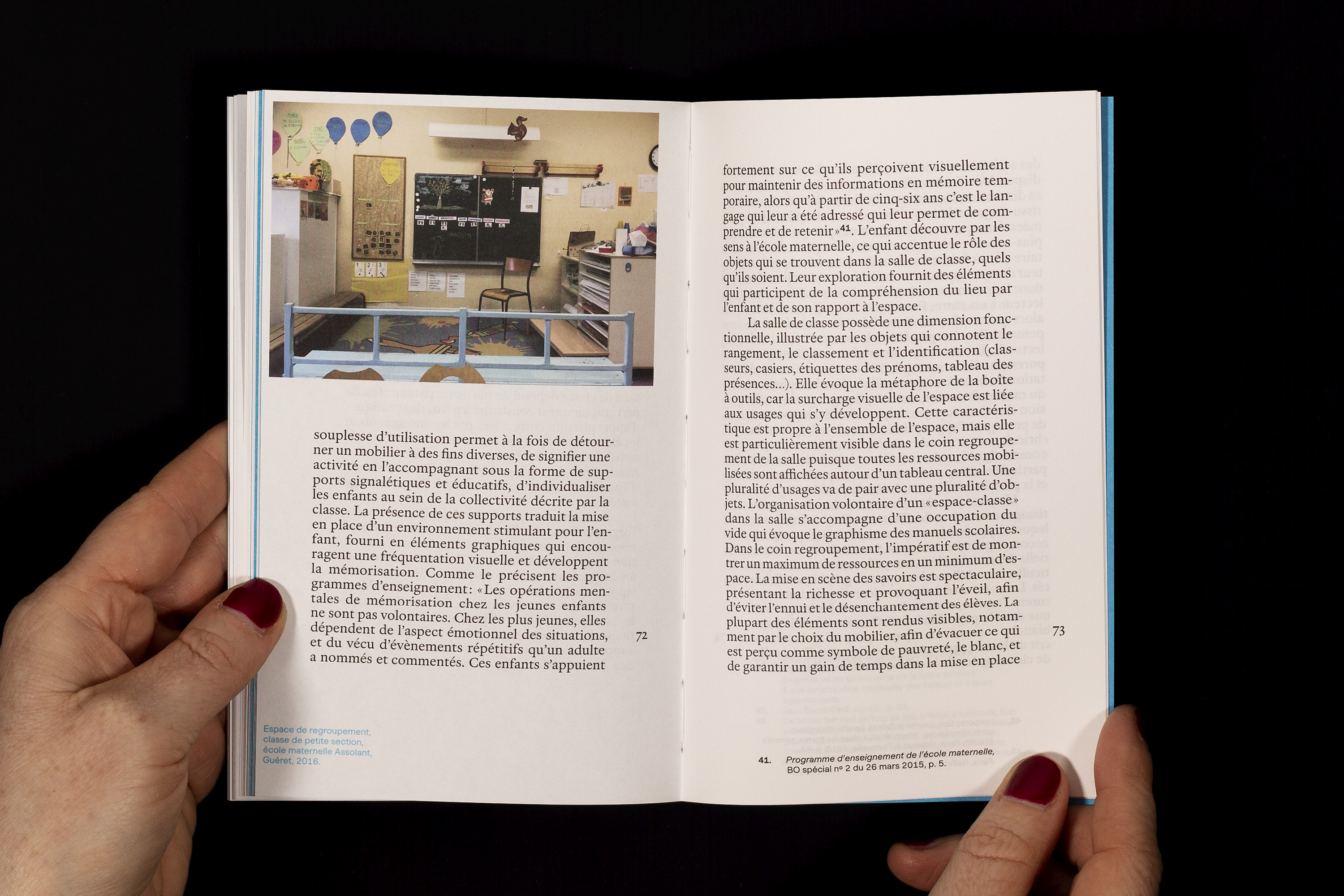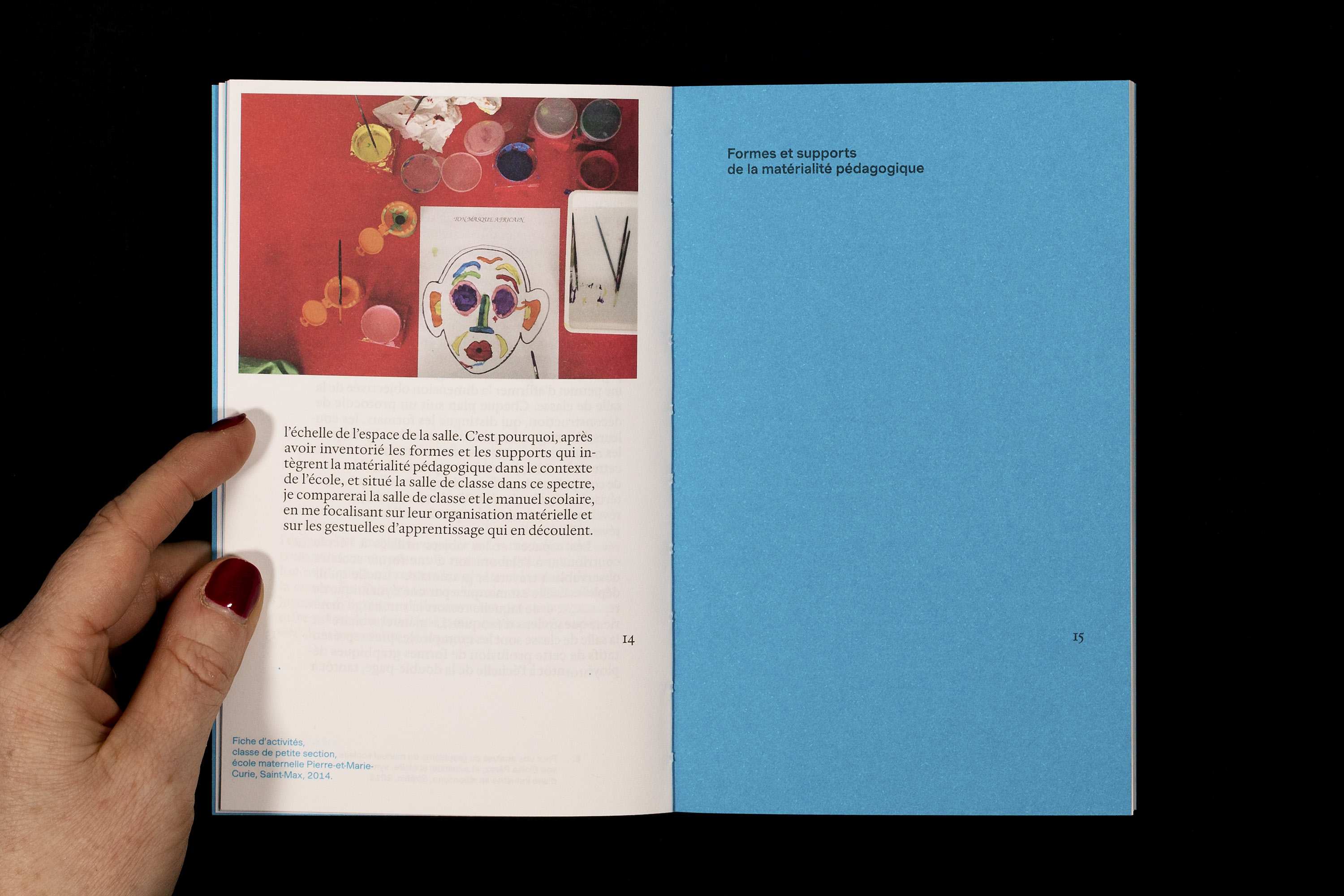 The “Milieux” series, of which La salle de classe: un objet graphique? is the first title, aims to help us understand the visual and textual forms that surround us. Each book explores our contemporary visual culture and questions the materiality and visuality of our social practices. Bureau 205 has designed a collection of pocket-sized books, guided by the desire to find a project economy that allows the book to be sold at low cost.