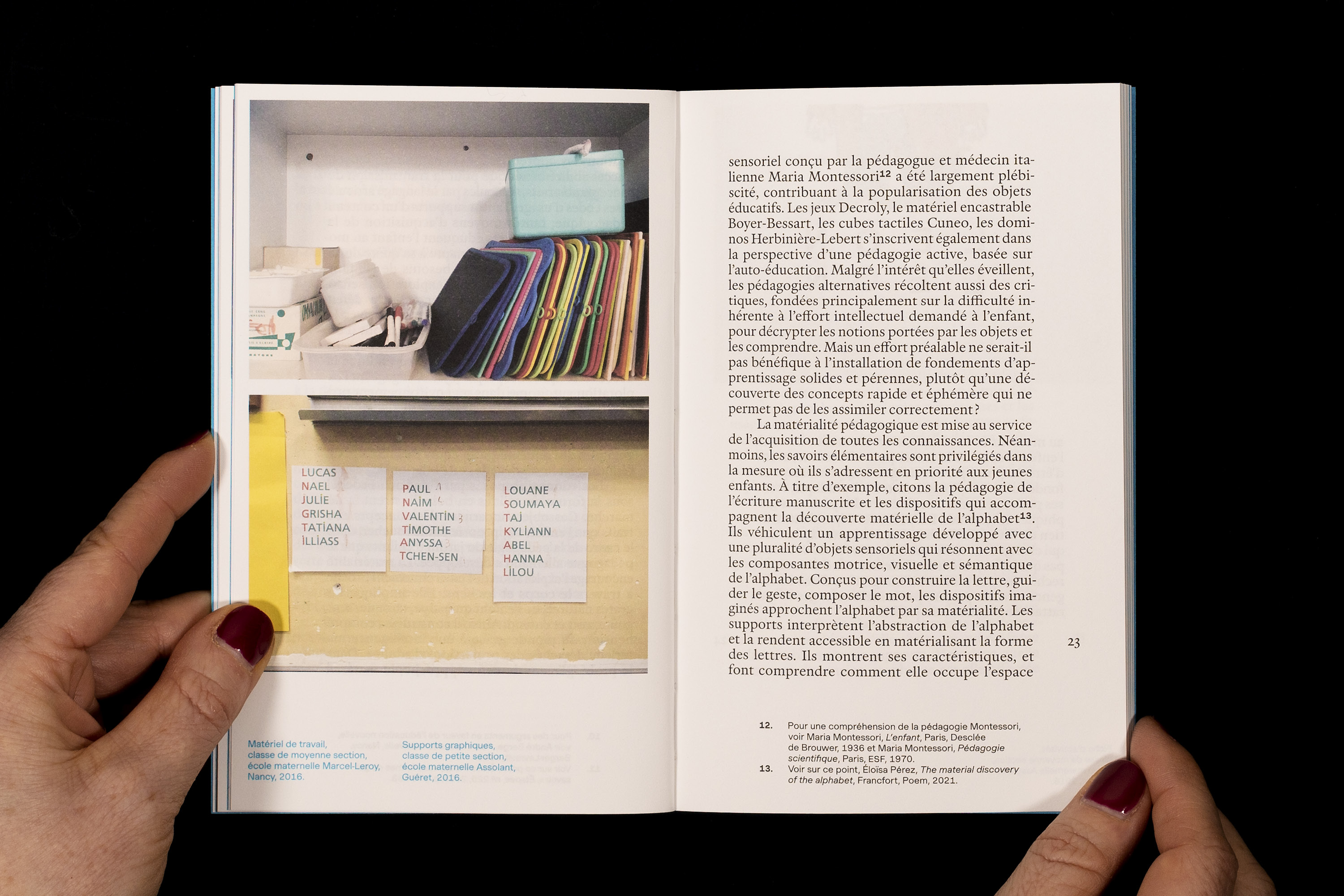 Their graphic forms – appearance, colour, volume – constitute a “pedagogical materiality”, whose effects on learning can be defined. Because in nursery school children develop their motor skills and gradually discover the codes required for the exercise of language, the first exchanges call for many tangible tools. Their forms acquire, in fact, a central role in the pedagogical act. We can then understand their characteristics in order to improve the methods in use.