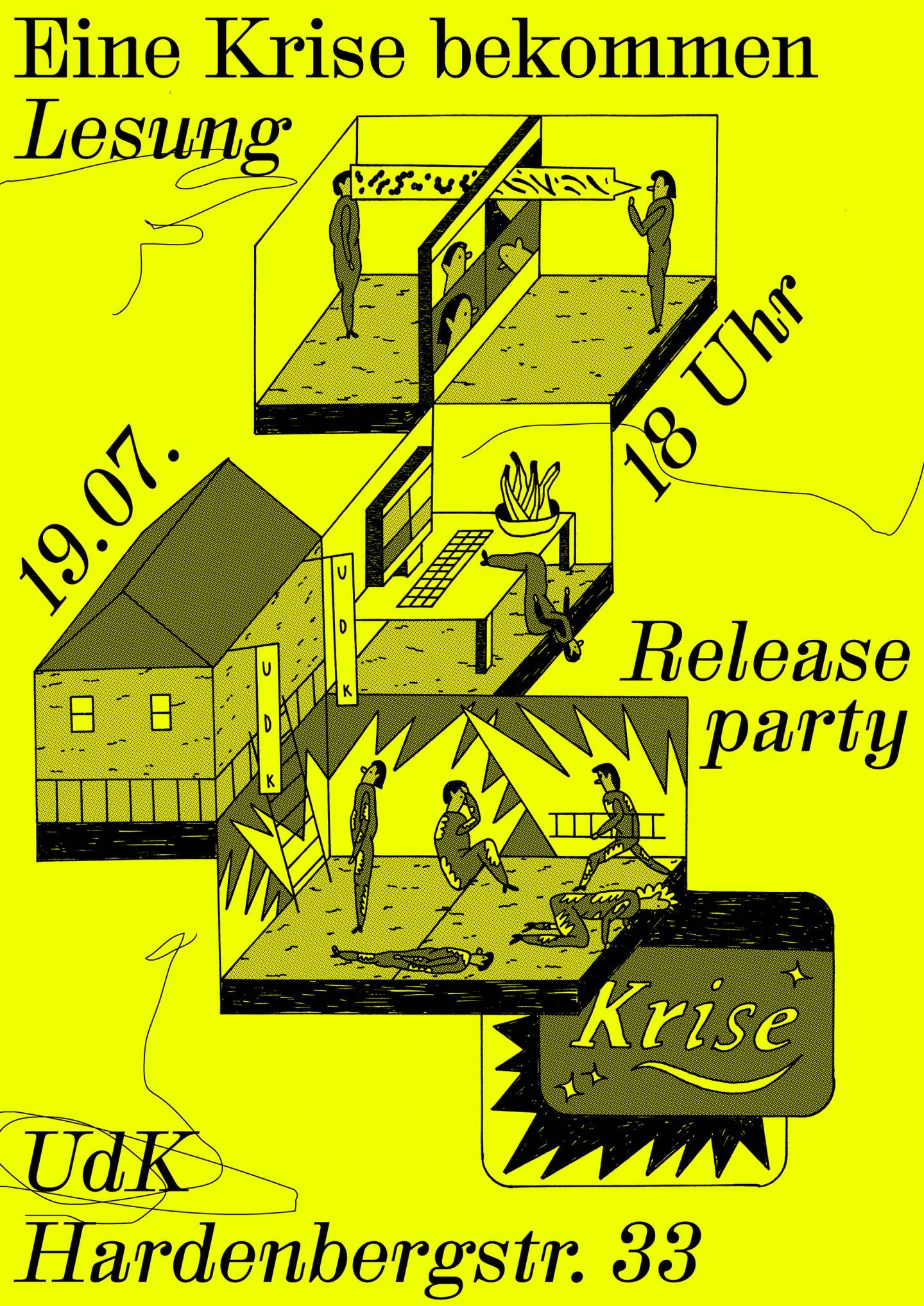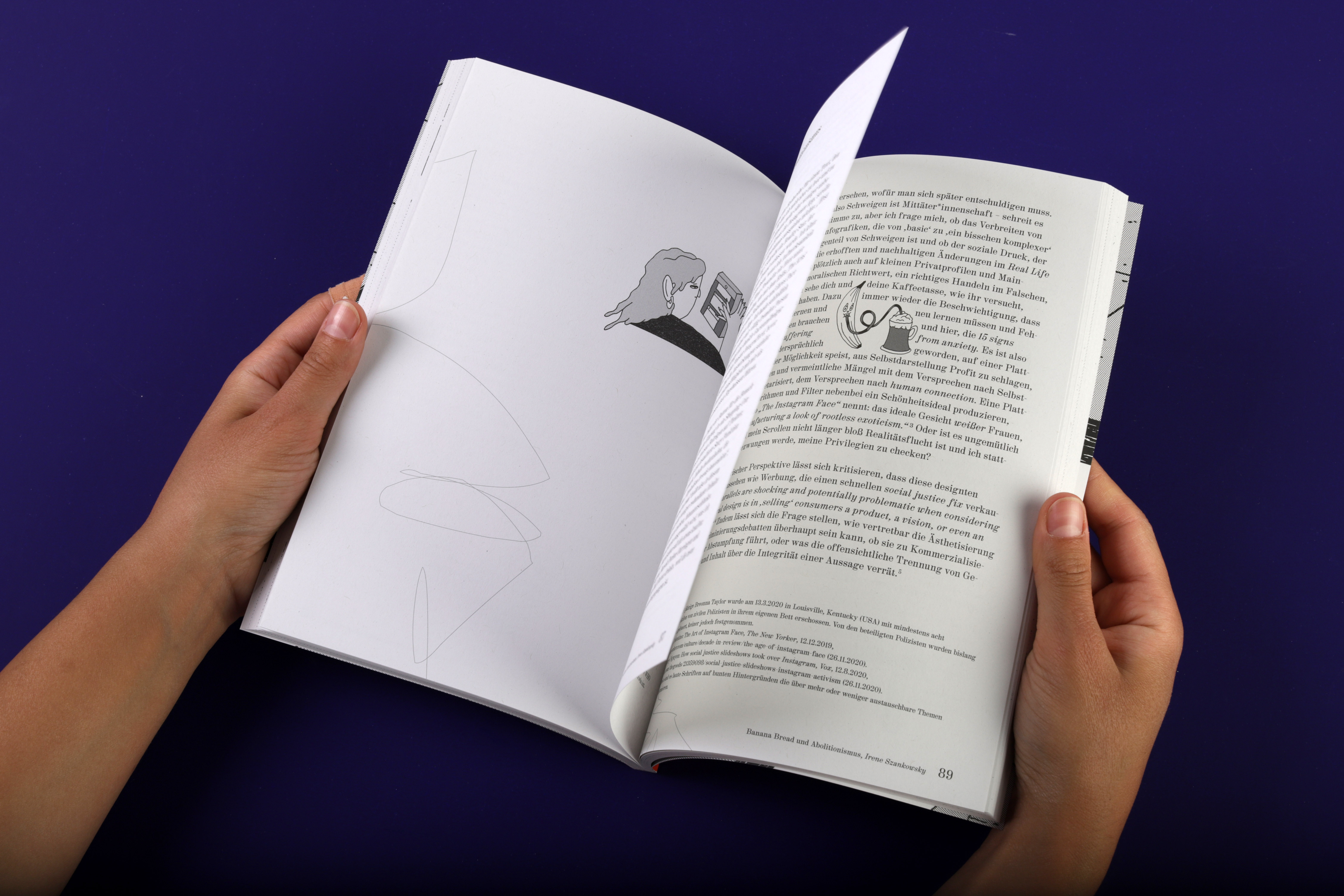Eine Krise bekommen (Visuelle Kultur Band 2, Schriftenreihe) was published by Kathrin Peters of the University of the Arts Berlin (Universität der Künste Berlin). This collection of student essays was designed by Katharina Brenner and Lucie Jo Knilli, and edited by Destina Atasayar, Sarah Böttcher, Katharina Brenner, Lucie Jo Knilli, and Luisa Herbst. The reader was printed at Gallery Print Berlin, set in HAL Colant by HAL Typefaces and features illustrations by Sarah Böttcher throughout. The publication is available digitally under Creative Commons license (CC BY-NC-ND – 4.0 International).