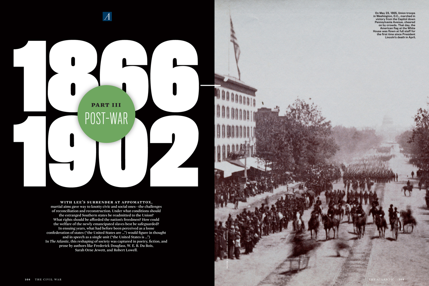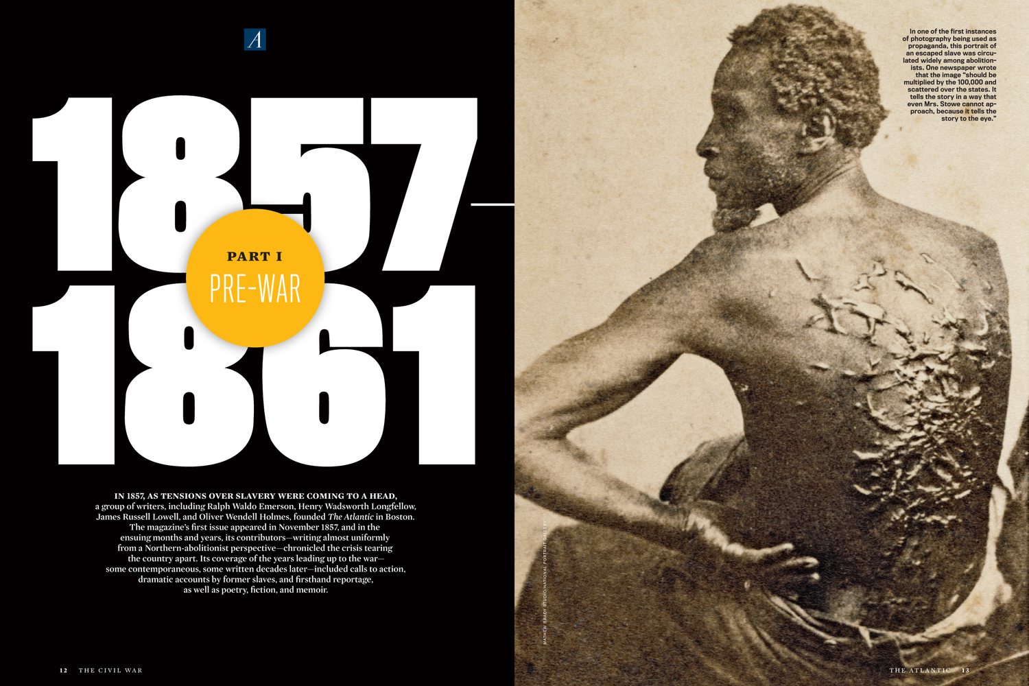 The (final?) cover shown on The Atlantic’s site is ok, but doesn’t seem as strong as this one with its massive Titling Gothic declaring the special issue topic. The entire issue appears to use only two families, but the expansive variants in each of these — weights and widths in Titling Gothic, Text and Display optical sizes in Mercury — offer plenty of options for the multitude of layouts and hierarchies in these pages.