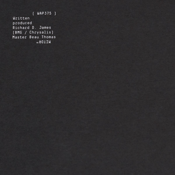 The typography for this EP uses Decima Mono, just like for the previous album Syro, which was likewise designed by The Designers Republic. On these minimalist covers the typeface stands out a lot. While Syro references the look of receipts, the negative monospaced text for this record resembles a computer terminal.