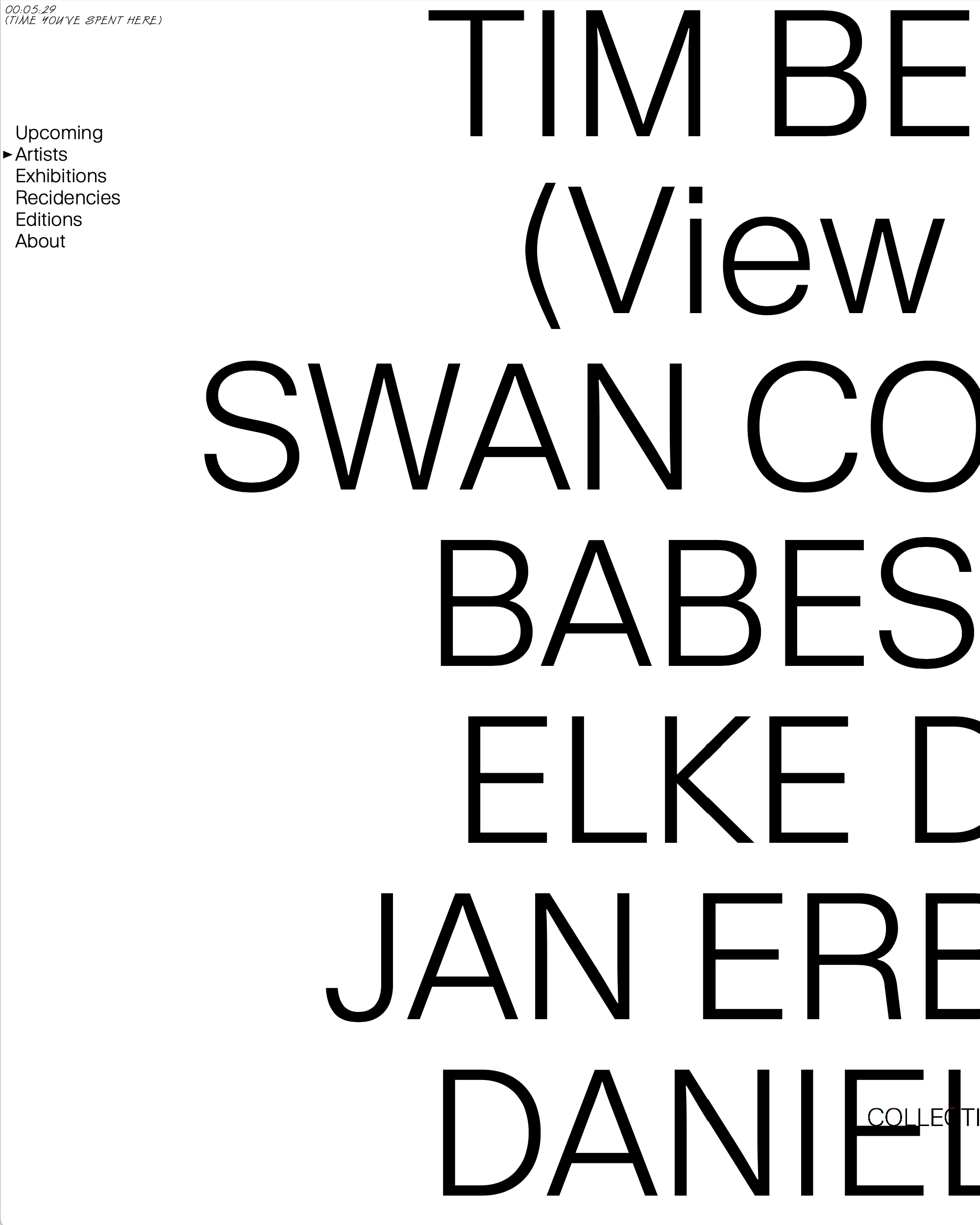 For this website, the typefaces Waldenburg by kimera and Van Dijk by Jan van Dijk were used. The concept and design were done by Colin Doerffler and Nadine Wetzel, and the website was coded by Manuel Fleig.