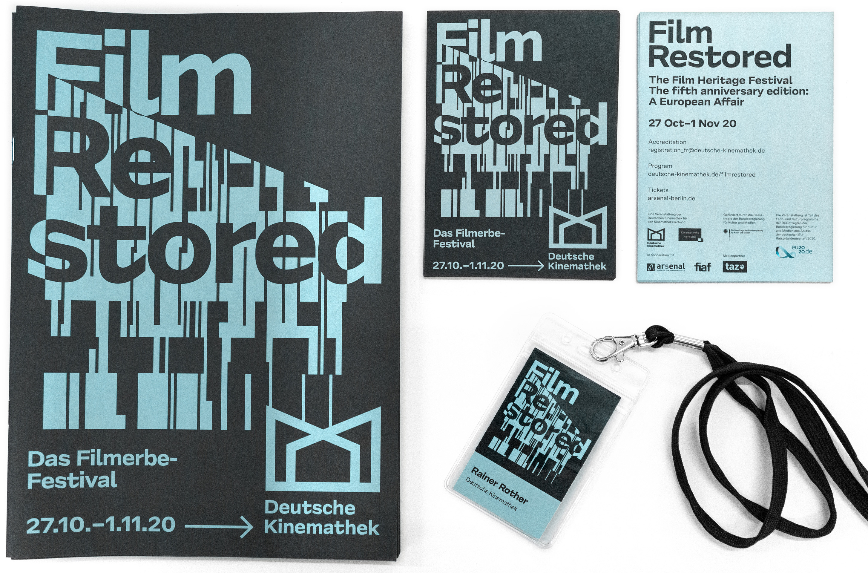 From this new design of Deutsche Kinemathek, and yet somewhat distinct from it, emerged the design for other projects that DK is affiliated with. The Film Restored Festival, an annual film restoration festival, uses the same typography with evocative images. Berlinale Retrospektive, the annual retrospective section of the Berlinale, also features many of the elements from DK’s new look, as can be seen on posters and on the cover of the No Angels book.