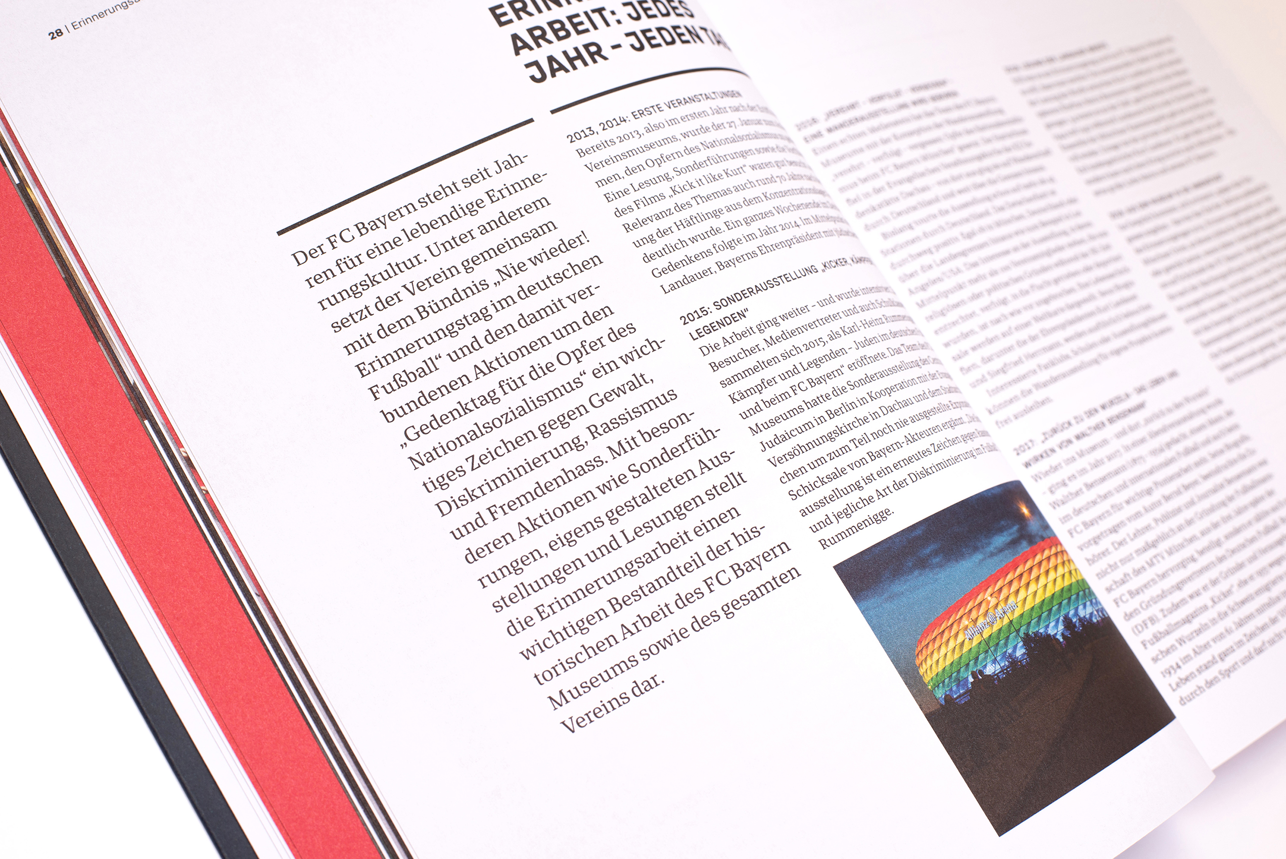 FC Bayern Museum catalog Contributed by Kai Büschl on Jul 31st, 2022. Artwork published in May 2022. Photo: Kai Büschl. License: All Rights Reserved. New design for the catalog of the FC Bayern Museum titled Unser Verein. Unsere Geschichte. Seit 1900. (“Our club. Our history. Since 1900.”), using the club’s custom typeface FC Bayern Sans along with LD Elsnac as the main text typeface. Photo: Kai Büschl. License: All Rights Reserved. Photo: Kai Büschl. License: All Rights Reserved. Photo: Kai Büschl. License: All Rights Reserved. Photo: Kai Büschl. License: All Rights Reserved. Photo: Kai Büschl. License: All Rights Reserved. Typefaces More about LD ElsnacGet LD ElsnacMore about FC Bayern Sans Formats Books (6424) Topics Institutional (1377) Sports (766) Designers/Agencies Dominik Schwarz (7) Kai Büschl (4) Tagged withFC Bayern München (1)football/soccer (134)museums (195)exhibition catalogs (841)book covers (5763)book interiors (3571)red (815)reversed type (3306)custom typefaces (826)typeface combinations (3842)uses by the typeface’s designer (1243)two columns (525)ragged right text (992)German (language) (2453)local type (260)numerals (1058)trophies (10)paperbacks/softcovers (1935)sports clubs (52) Artwork location Germany (3798) München (288) In SetsFootball (Charly Morfin) (23)Real Athletico (Stefan Barcelo) (10) Post a comment Name Email – will not be published Website Your response Submit Comment More in Institutional Mark Bradford poster series for MCA Chicago2010James GogginContributed by Indra Kupferschmid The Union of Bulgarian Artists, newsletter 02/2018c. 2018format.bgContributed by Ani Petrova Tramas. Laboratorio transdisciplinar de debates interculturales2024Javier QuintanaContributed by Quintana-Font Sponsor More in Books RUFA Annual Report 2015c. 2016Intorno DesignGuido LombardoTommaso SalvatoriContributed by intornodesign Display Typography1970Eric K BainContributed by Chris Purcell Staff Pick Hungarian Design Council report 20192020Andrea CsuportContributed by Andrea Csuport City of Leoben2018Marie ZiegerContributed by Bureau Brut Staff Pick More Fonts In Use Ac Matkychtivý Čúra2018Matěj MartinecContributed by Matthijs Sluiter Staff Pick The Thomas Crown Affair (1968) title sequence and trailer1968Pablo FerroContributed by Patrick Concannon Staff Pick Electro-Harmonix logoc. 1973Contributed by Florian Hardwig Staff Pick Billy Vaughn – Embraceable You! album art1967unknownPhoto(s) by Bart Solenthaler on Flickr. Staff Pick Roméo Mivekannin booklet2022FakepaperContributed by Fakepaper Staff Pick “Who needs the economy…” poster2021Dafi KühneContributed by Dafi Kühne Staff Pick Rio Bravo Czechoslovak movie poster1967Karel VacaContributed by Stephen Coles Staff Pick I Read Where I Am2011LUSTContributed by Stephen Coles Staff Pick