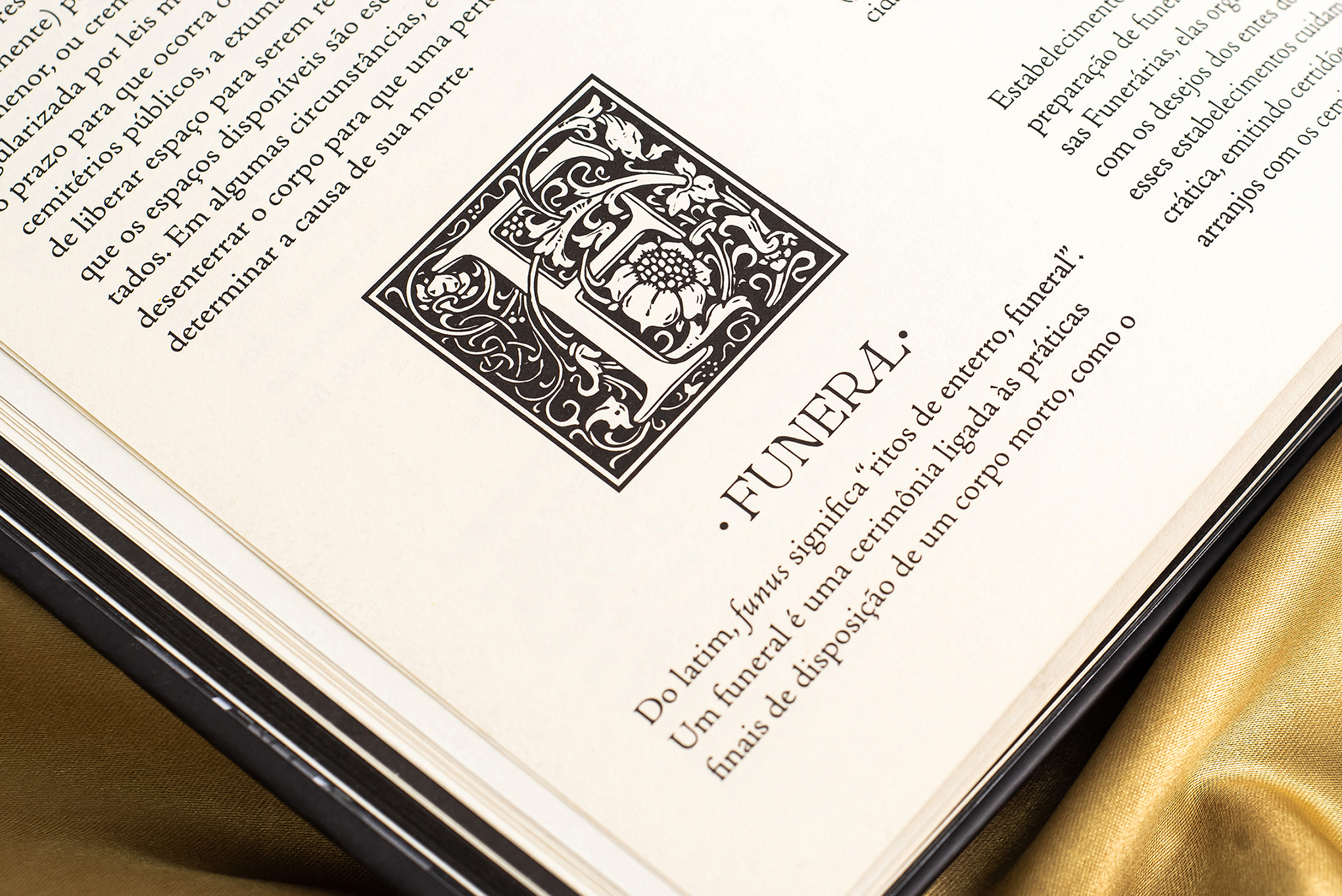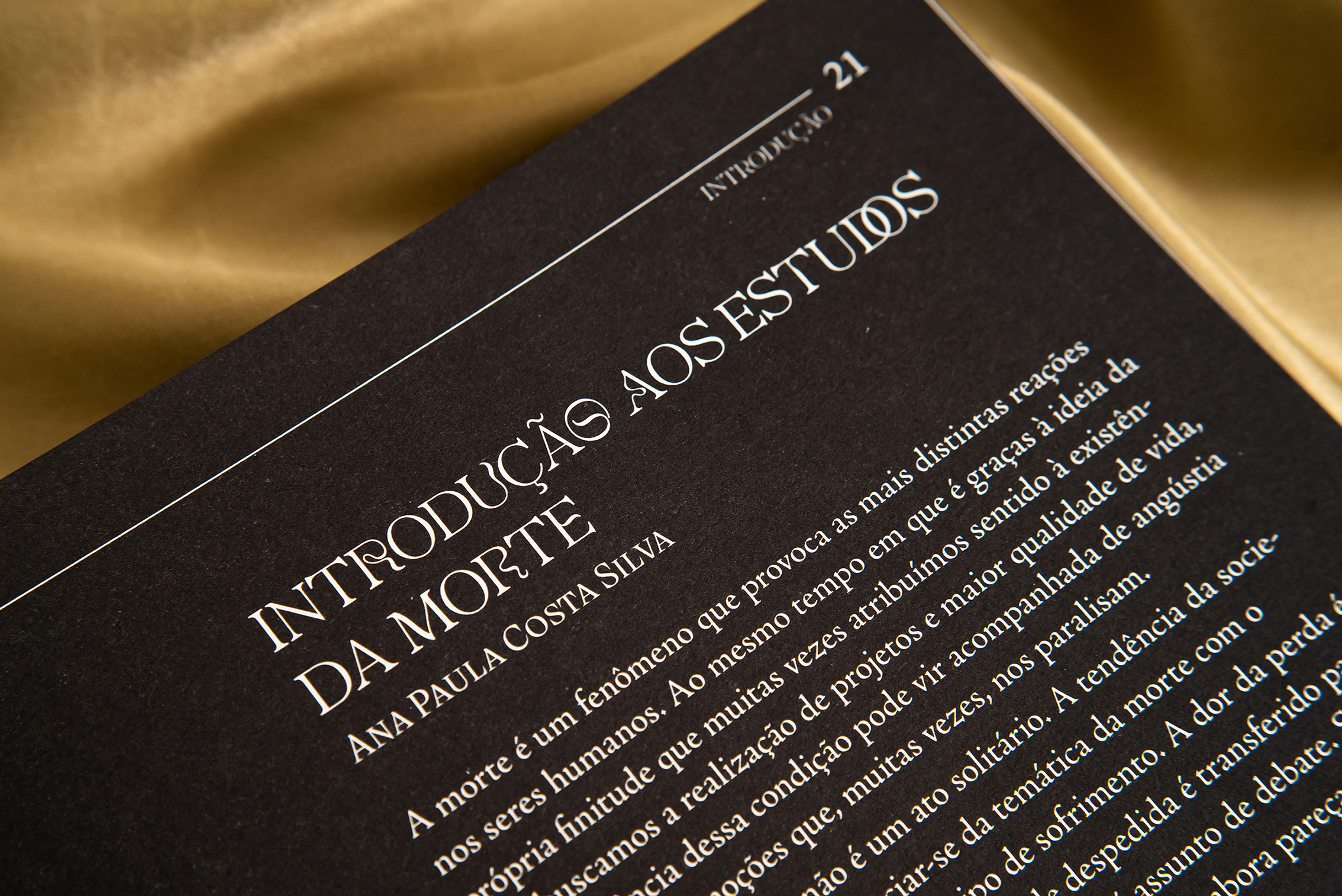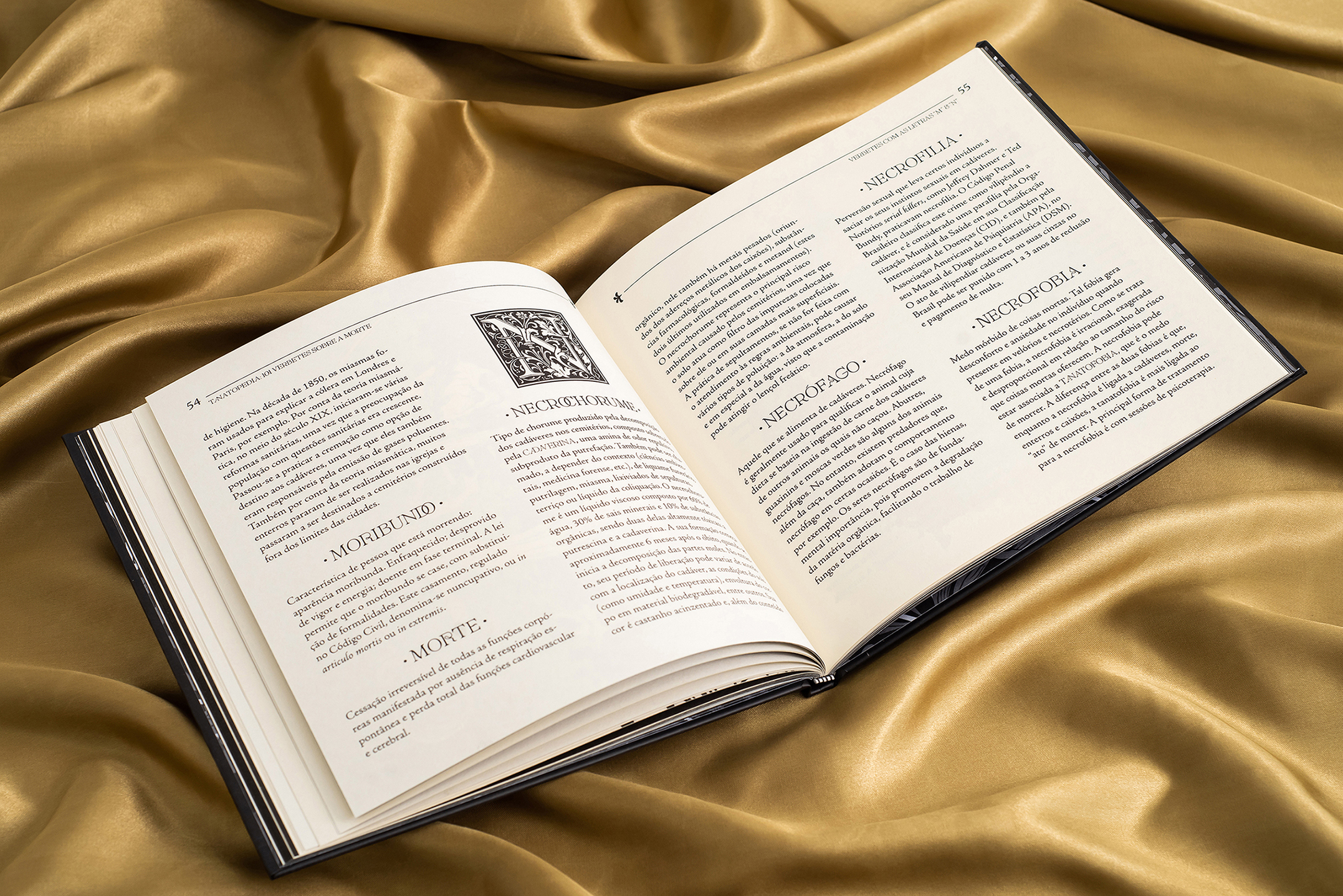 Tanatopedia is an encyclopedia with entries on death, with illustrations by Caroline Murta. The crowdfunded project was designed to make the book sumptuous, a physical object that does not go unnoticed due to its size or theme. Sober, elegant and dark – words that define the aesthetic used for the design of the cover and inside.