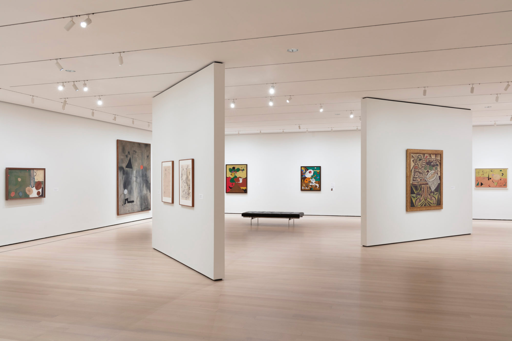 Visitors walk through the transformative threshold before entering into the brightly lit galleries, where they encounter some 60 paintings, works on paper, prints, illustrated books, and objects – made primarily between 1920, the year of Miró’s first, catalytic trip to Paris, and the early 1950s, when his unique visual language became internationally renowned.
