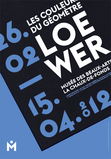 For the series of exhibition posters for the Museum of Fine Arts of La Chaux-de-Fonds, Switzerland, onlab puts the versaitility of Euclid BP to the test. The ultra-geometric grotesque was designed by Emmanuel Rey and released in 2011 in a single weight. According to Swiss Typefaces, four additional weights and italics will complete the family soon.