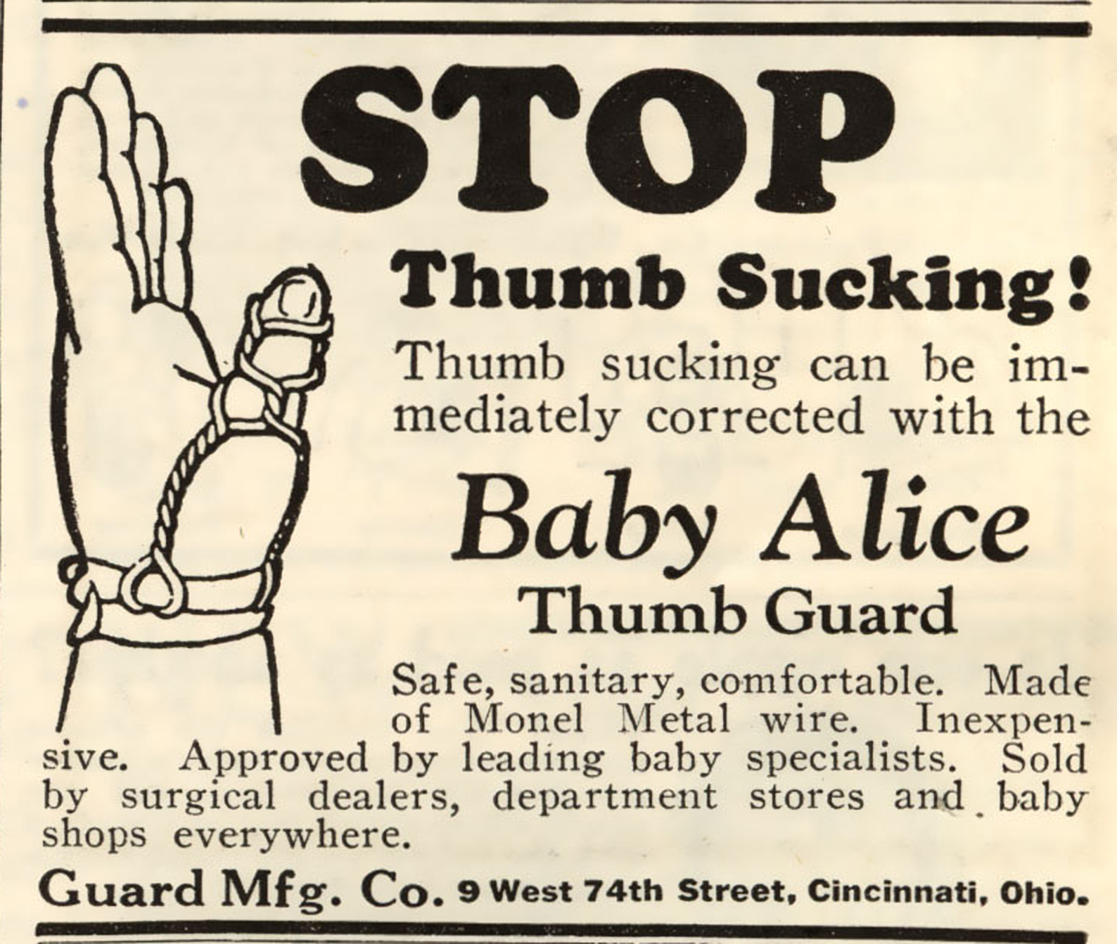 Baby Alice Thumb Guard advertisement Contributed by Bryson Stohr on Aug 14th, 2022. Artwork published in 1931. Source: www.reddit.com License: All Rights Reserved. Cooper Black tends to be associated with the 1960s and (likely) beyond, but this early 1930s advertisement for a thumb guard is proof that this popular typeface predated that era – it’s used for the “STOP Thumb Sucking!” portion. Typefaces More about Cooper BlackGet Cooper BlackMore about Goudy OldstyleGet Goudy OldstyleMore about Old Style No. 1More about CheltenhamGet CheltenhamMore about Franklin GothicGet Franklin Gothic Formats Advertising (2119) Topics Product (2108) Designers/Agencies unknown (4186) Tagged with1930s (189)thumb guards (1)thumbs (15)newspaper ads (76)babies (23)black and white (2021)exclamation mark (!) (367) Artwork location United States (9927) Cincinnati (29) Ohio (61) Post a comment Name Email – will not be published Website Your response Submit Comment More Cooper Black in use More Than Magic2019CollinsContributed by helvetica bold Wet Hot American Summer poster2001Contributed by Stephen Coles Balthazar eyewear2017Simon PiuContributed by Pierre Brossard Sponsor More in Product Floridina2013Wings SuryaContributed by Muhammad Okky Vel2021All PurposeContributed by WELTKERN® Typefaces Epicure2016Hint CreativeContributed by Analisa Sanchez Staff Pick Ads for Bohn Aluminum and Brass Corp, 1945–481945unknownContributed by Stephen Coles More in Advertising Establishment 203c. 2023GroundcrewContributed by Margot Lévêque Typefaces Conways Photosetting adc. 1974ConwaysContributed by Mathieu Triay Notes from Ukraine2022Julia Donchuk/JULContributed by Yuliia Donchuk Ebony Magazine advertisement campaign1968Herb LubalinContributed by Herb Lubalin Study Center Staff Pick More Fonts In Use Three’s Company TV intro1977unknownContributed by Jayce Wheeled Staff Pick DJ Manny – Signals In My Head album art2021QubikJoe GilmoreContributed by Timothée Goguely Staff Pick Design: Vignelli1990Massimo VignelliContributed by Stephen Coles Staff Pick Profily z prací mistrů československé fotografie photobook seriesc. 1980V. JedličkaContributed by Alex Chumak Staff Pick