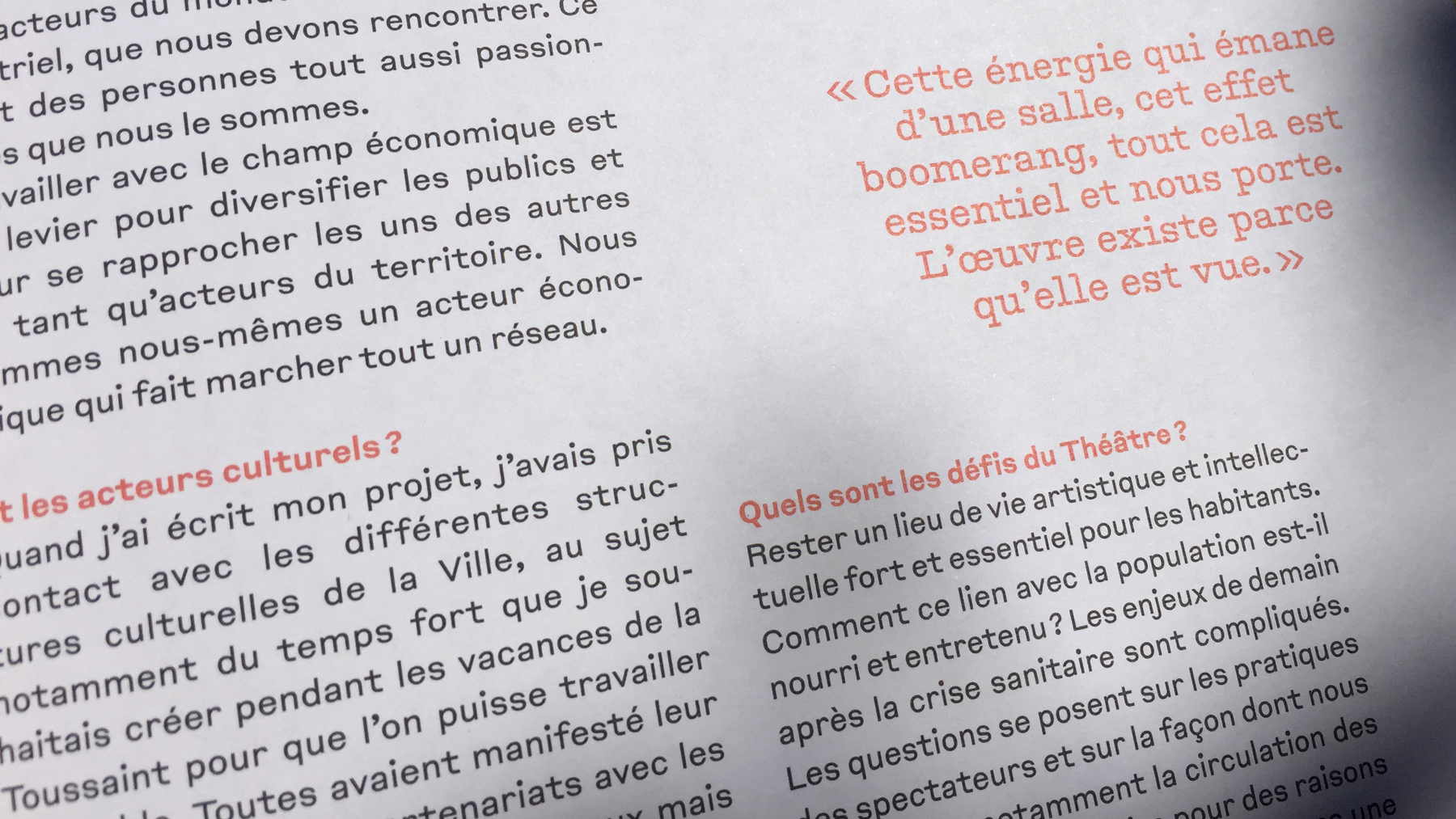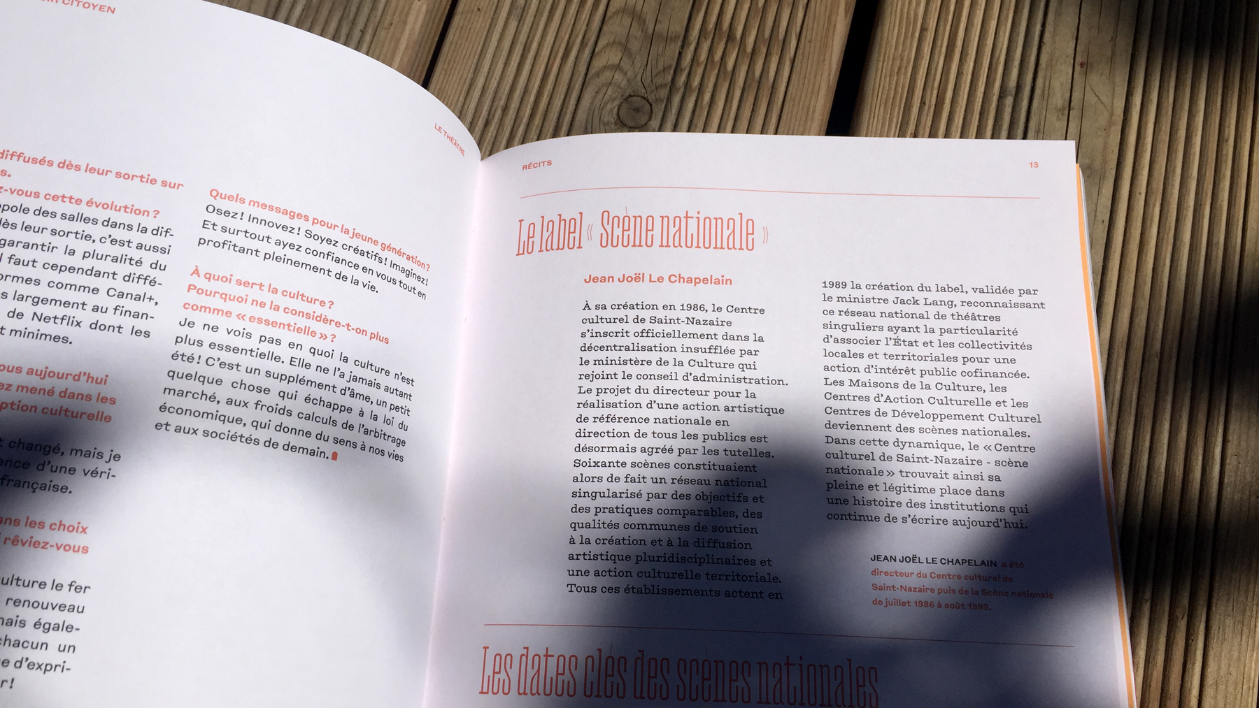 Le Théâtre, récits de la scène nationale de Saint-Nazaire highlights not only the history of this place, but also its team, its project and all the public action of the national stage with the populations. More broadly, it focuses on the fundamental issues facing the world of culture and live performance today.