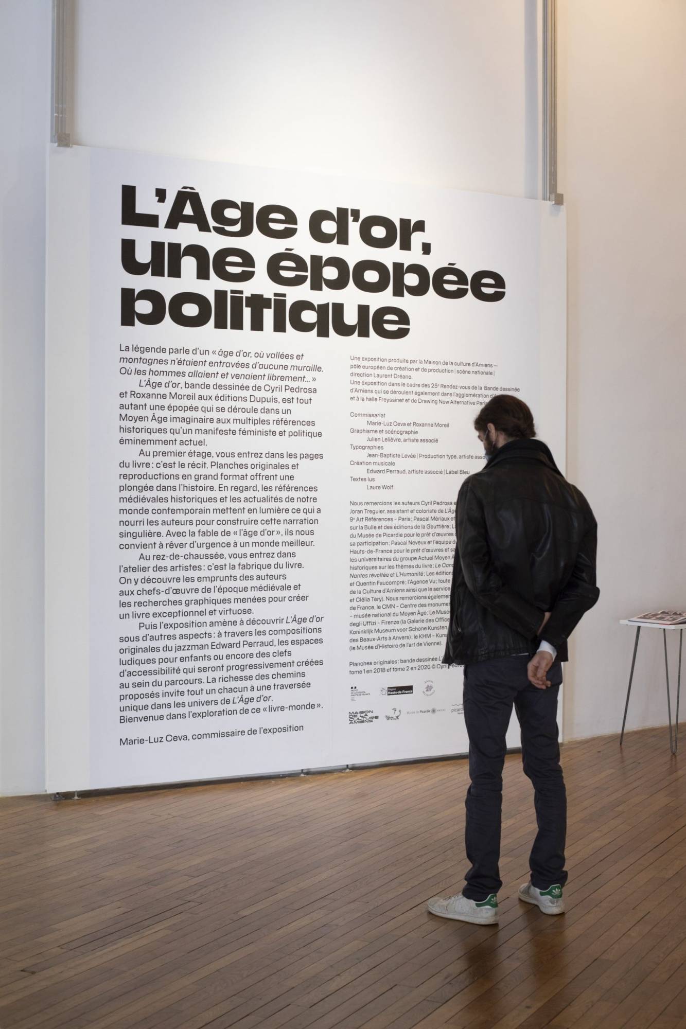 The Golden Age, a political epos is the title of an exhibition that took place at the Maison de la Culture in Amiens, France, in 2021. It was dedicated to the original artwork of Âge d’Or, a French graphic novel by Cyril Pedrosa and Roxanne Moreil.