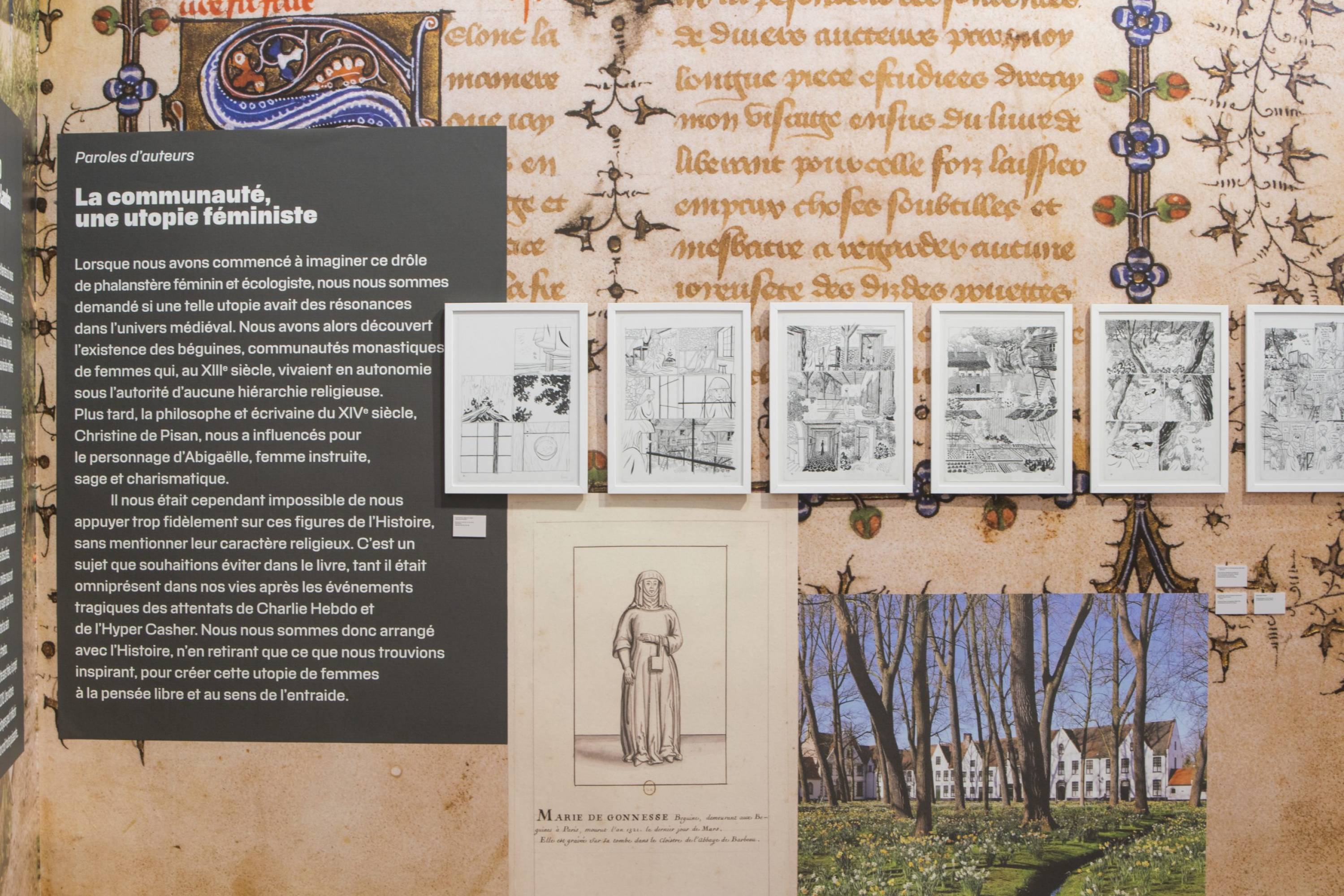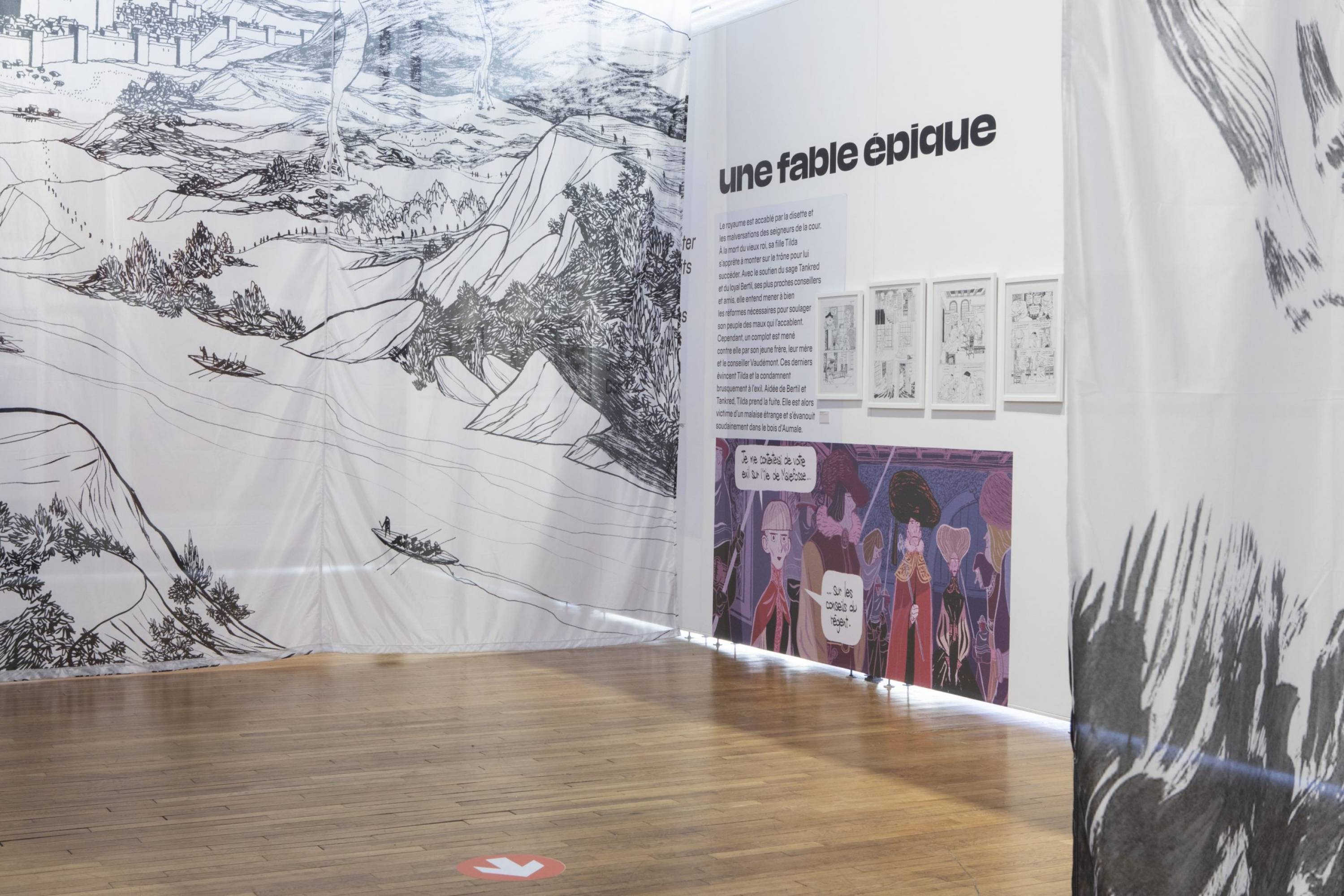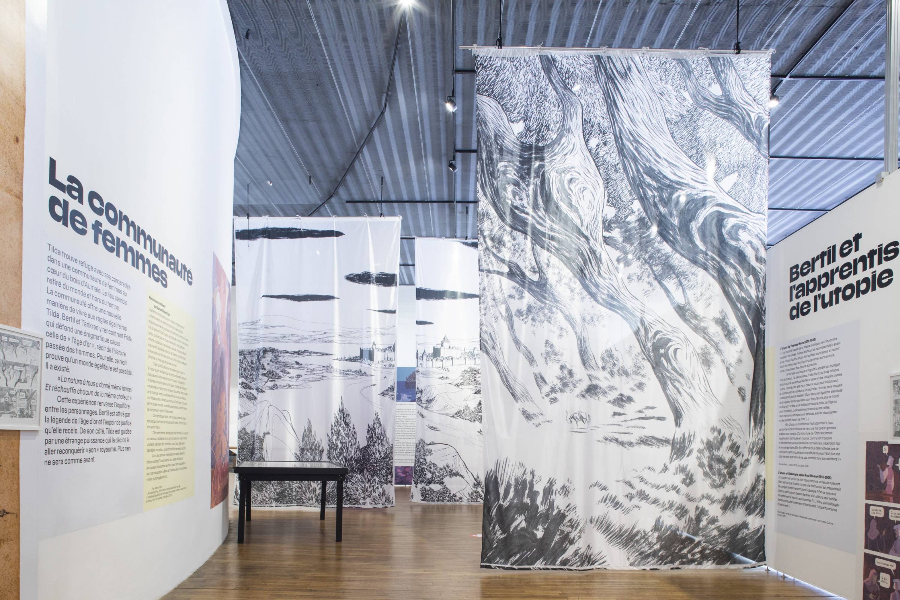 The exhibition in Amiens was mounted in the framework of the 25th Festival de la bande dessinée. It was designed by Julien Lelièvre whose scenography allowed for an immersive delve into the artwork of the books. Spectators could learn about the genesis of the novel and find thematic points of access to the topics addressed.