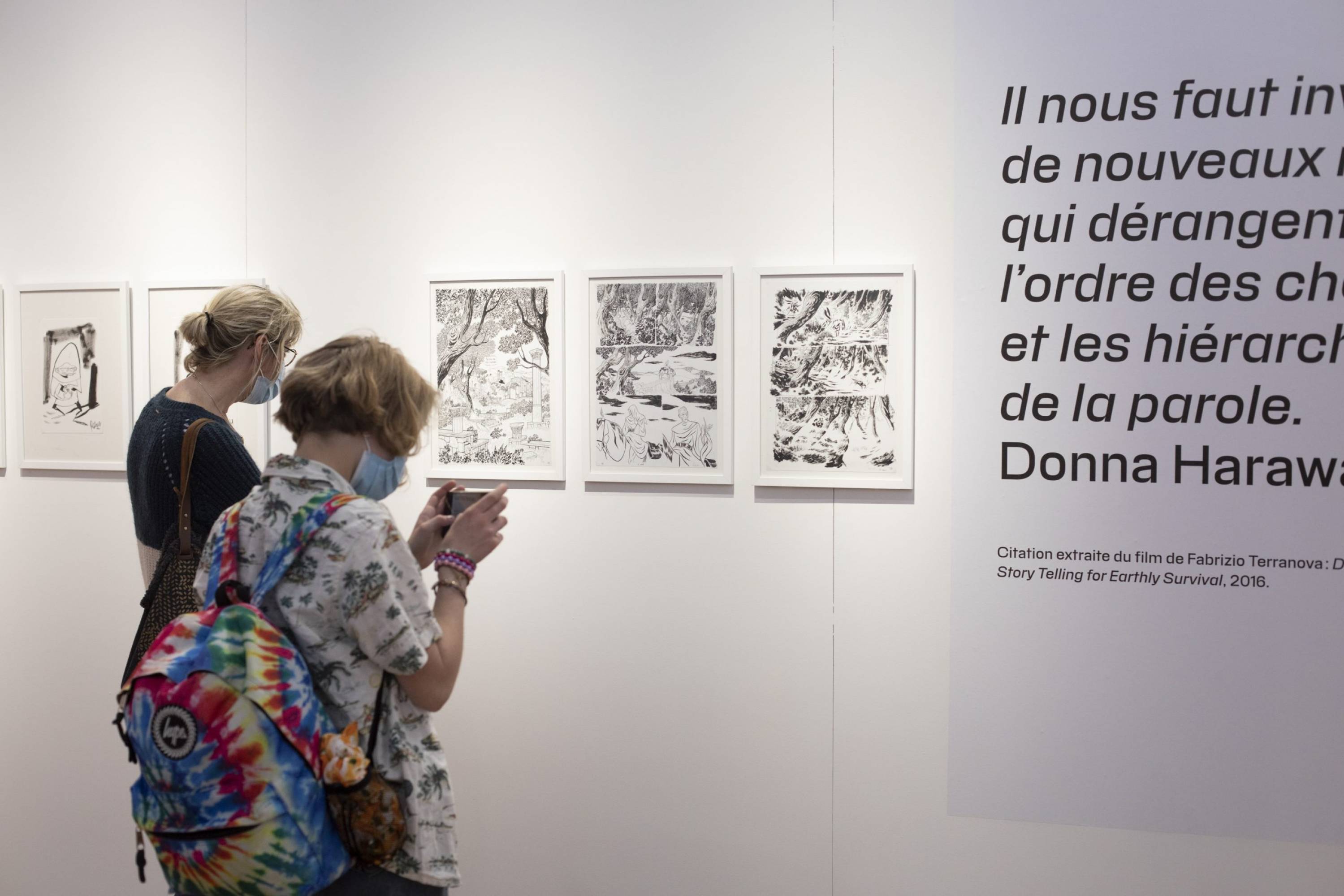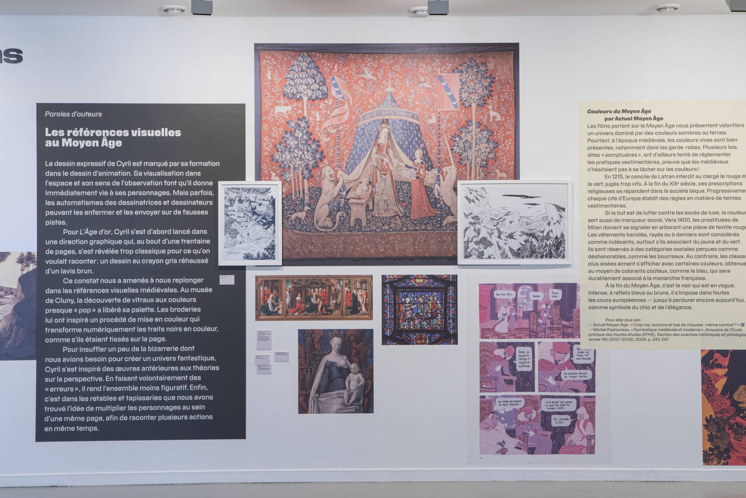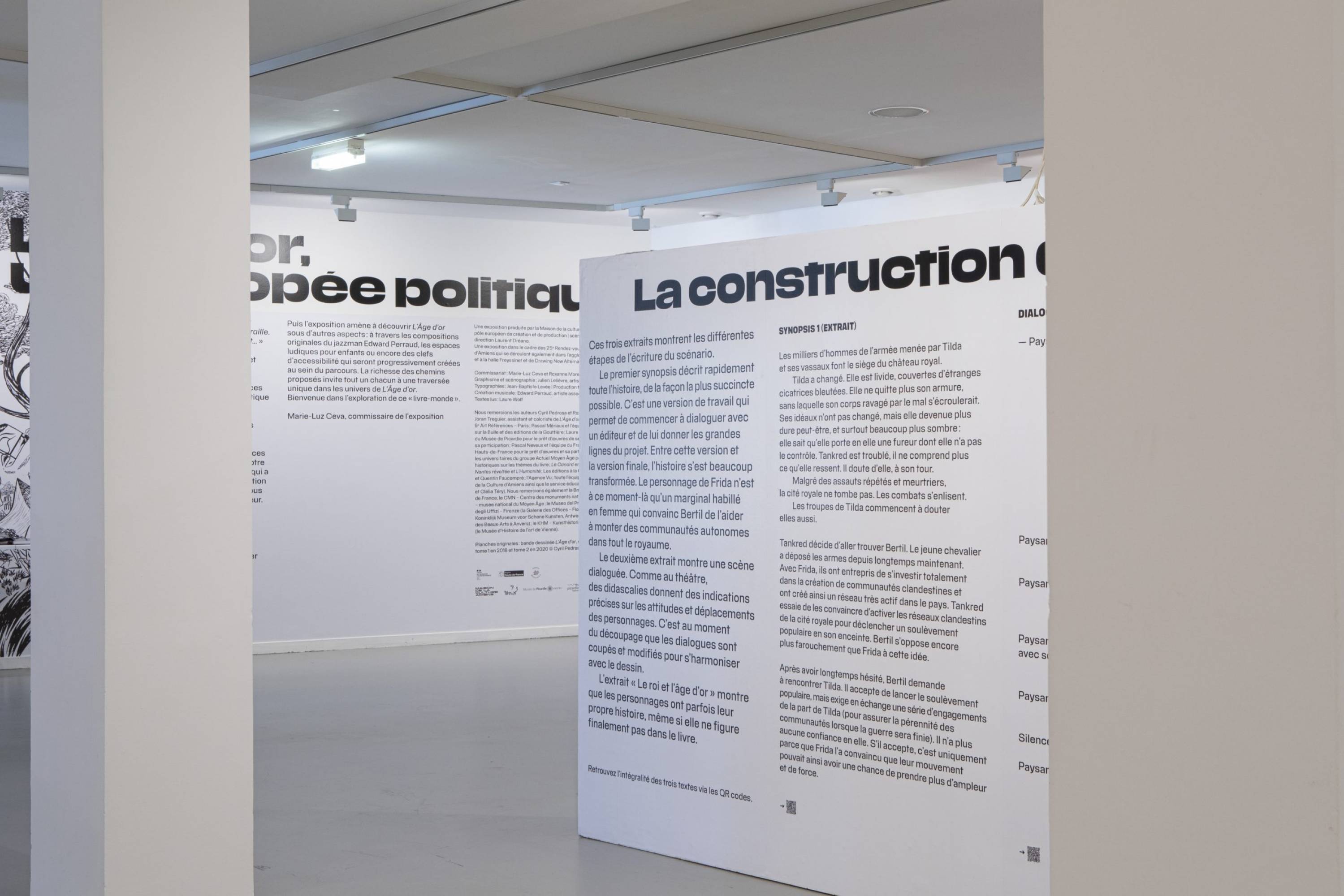 The exhibition in Amiens was mounted in the framework of the 25th Festival de la bande dessinée. It was designed by Julien Lelièvre whose scenography allowed for an immersive delve into the artwork of the books. Spectators could learn about the genesis of the novel and find thematic points of access to the topics addressed.