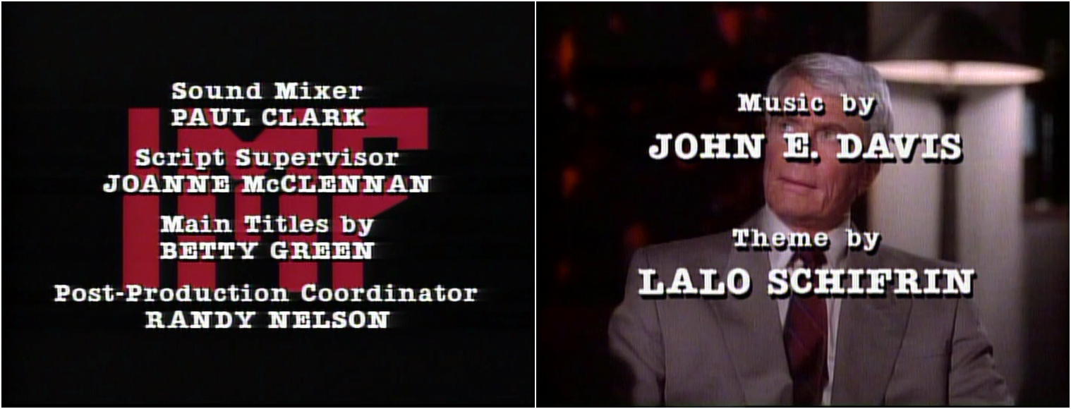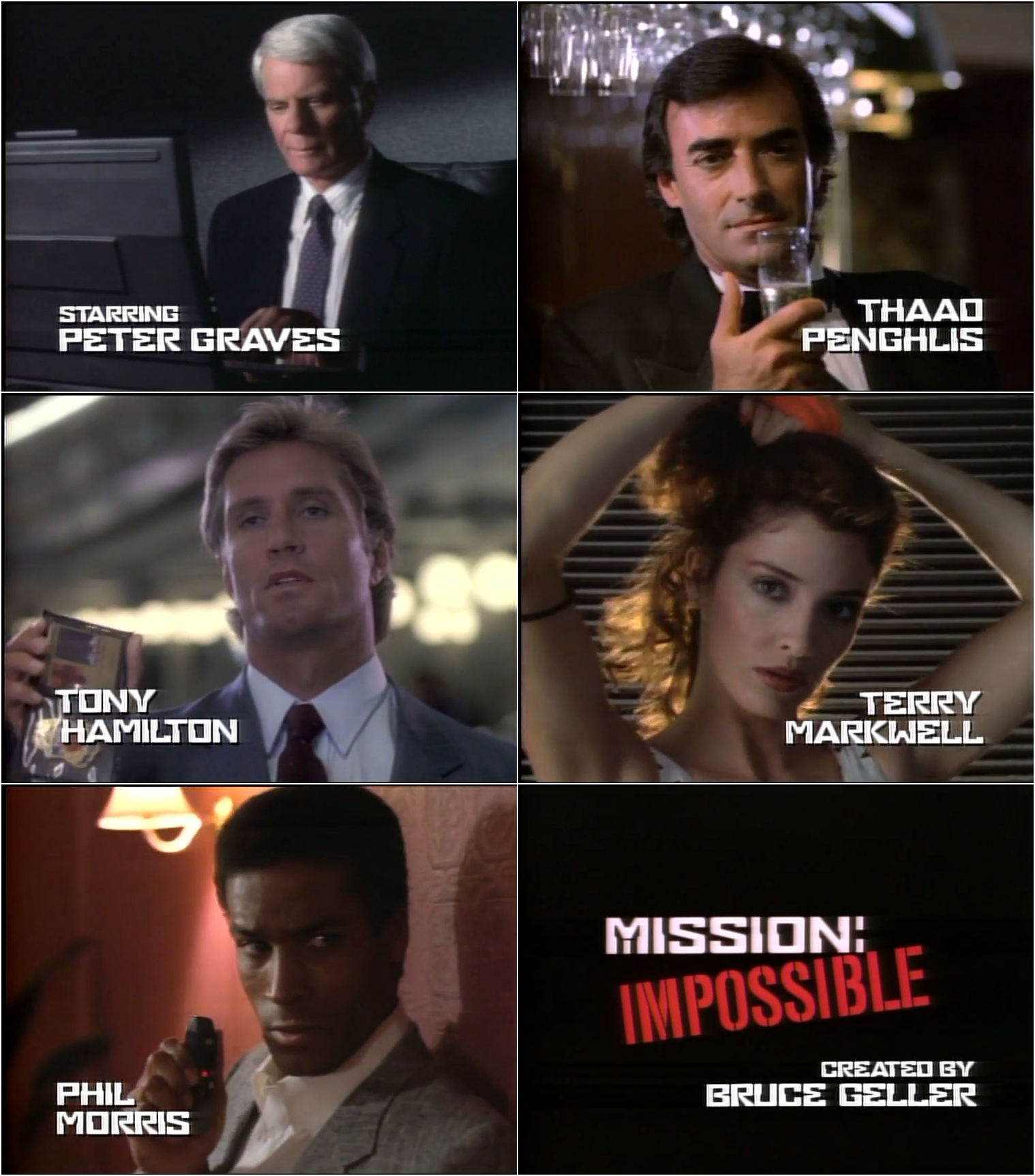 Title sequence for the 1988 American television series Mission: Impossible, designed by Betty Green. Though originally envisaged as a remake, the revival is a continuation of the 1966–1973 television series of the same name.
