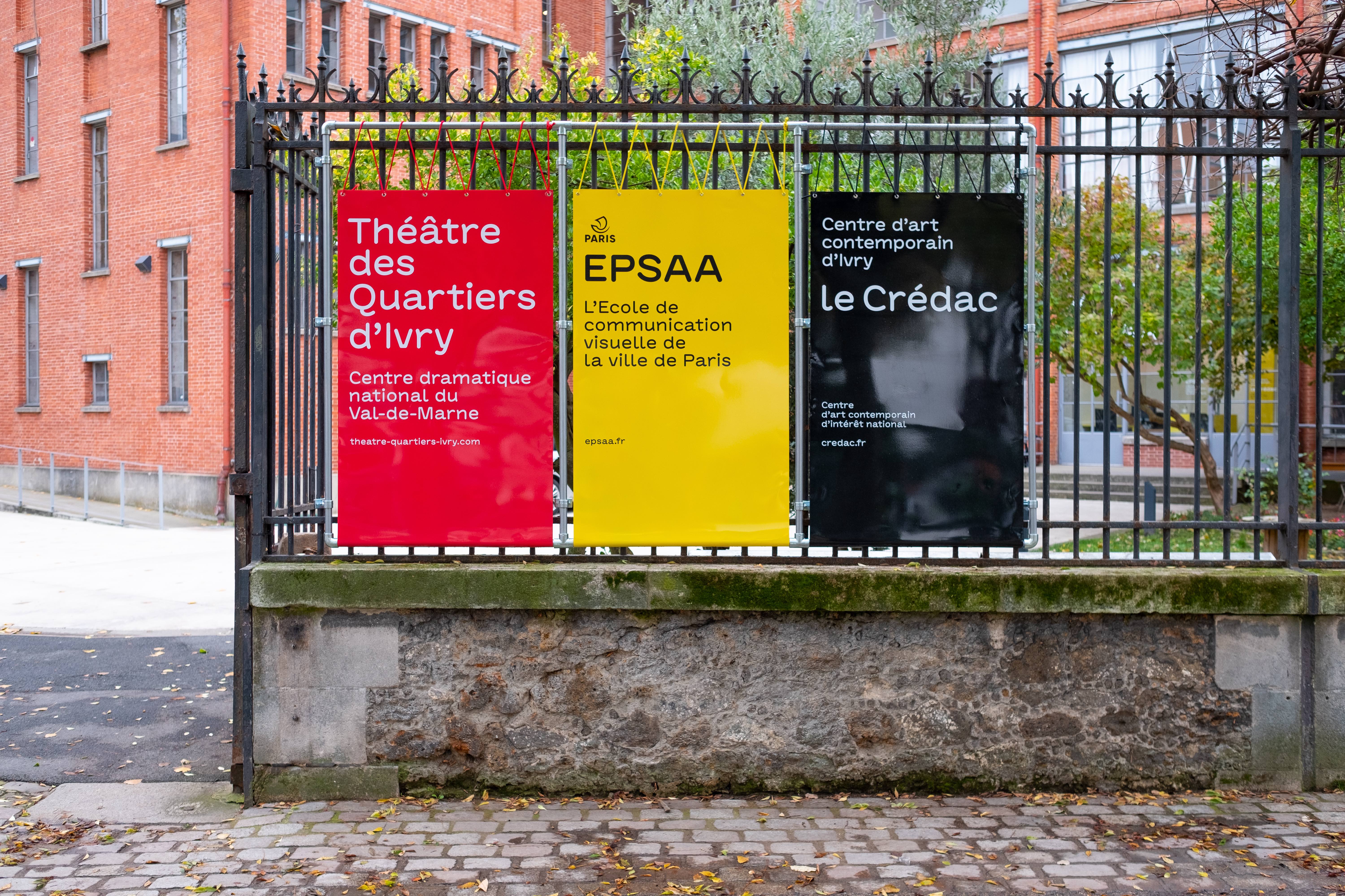 Baldinger•Vu-Huu designed and produced the signage for the Manufacture des Œillets in Ivry, France. This place, a former factory of eyelets, gathers a theatre, an art school as well as a center of contemporary art.