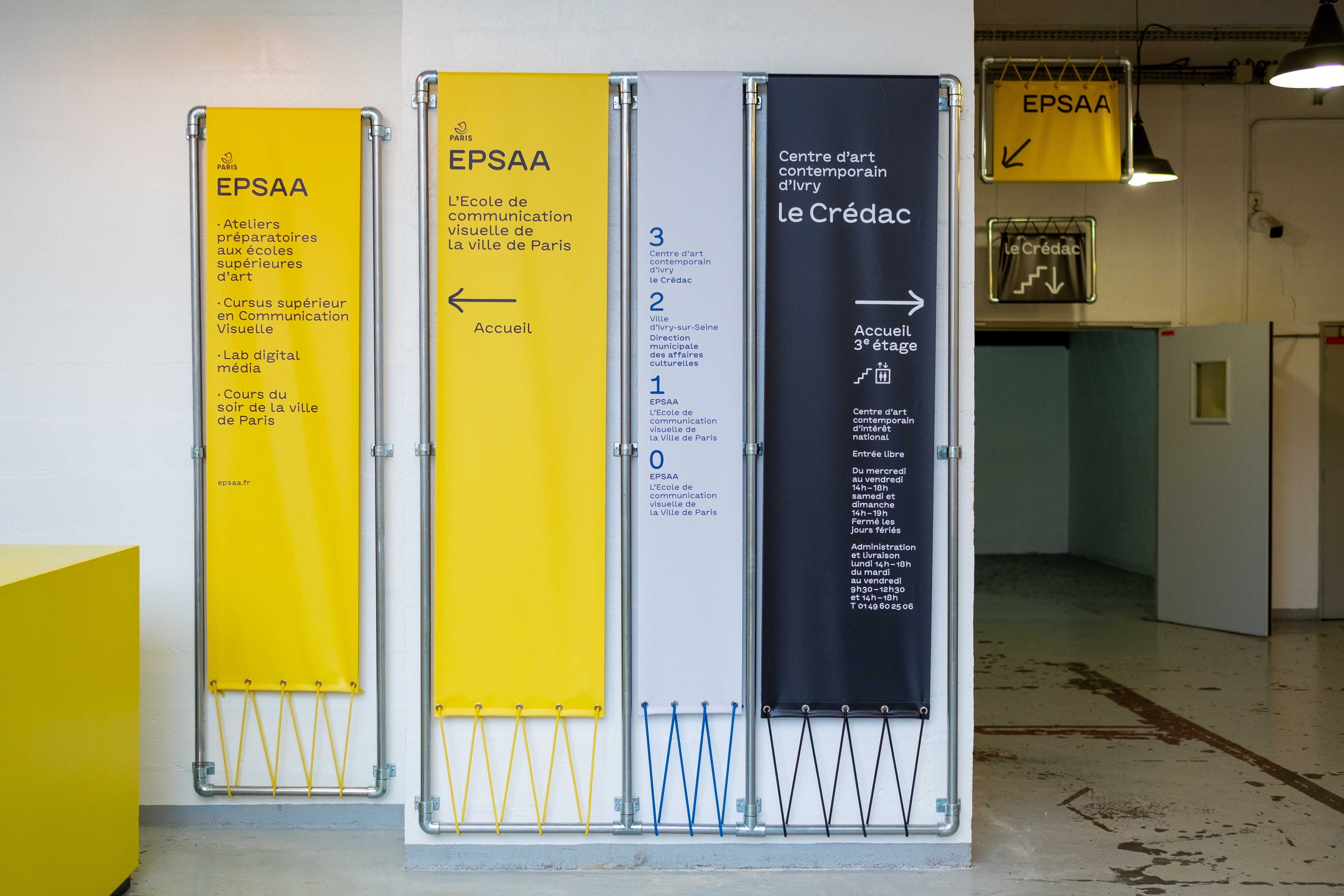The wayfinding project was realized with the BVH Anto Rounded, reminding of the elastics used in the signage supports.