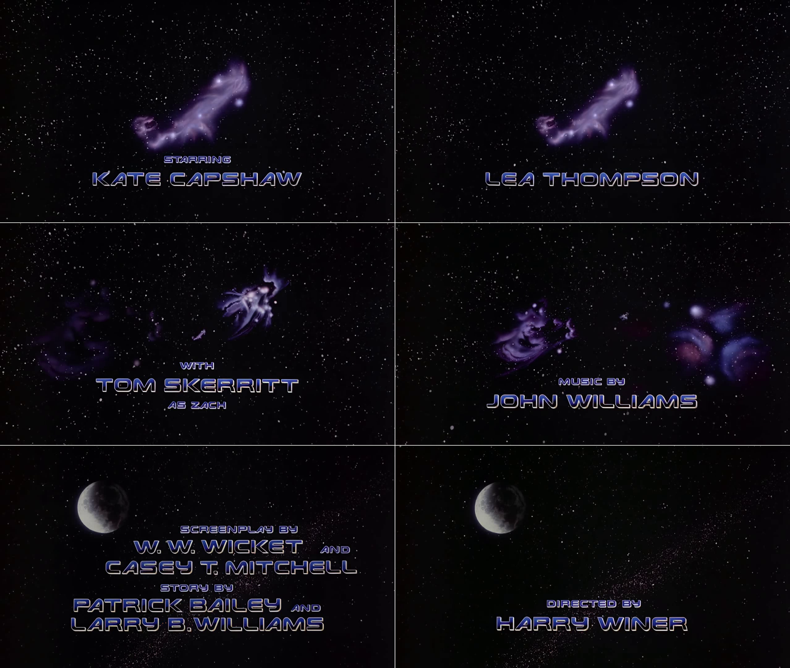 Title sequence by Penelope Gottlieb for the 1986 American science fiction adventure film SpaceCamp. All opening titles are set in a more solid variant of Earth, with most rendered in a 3D chrome effect that is almost identical to the logo of 1984’s The Terminator.
