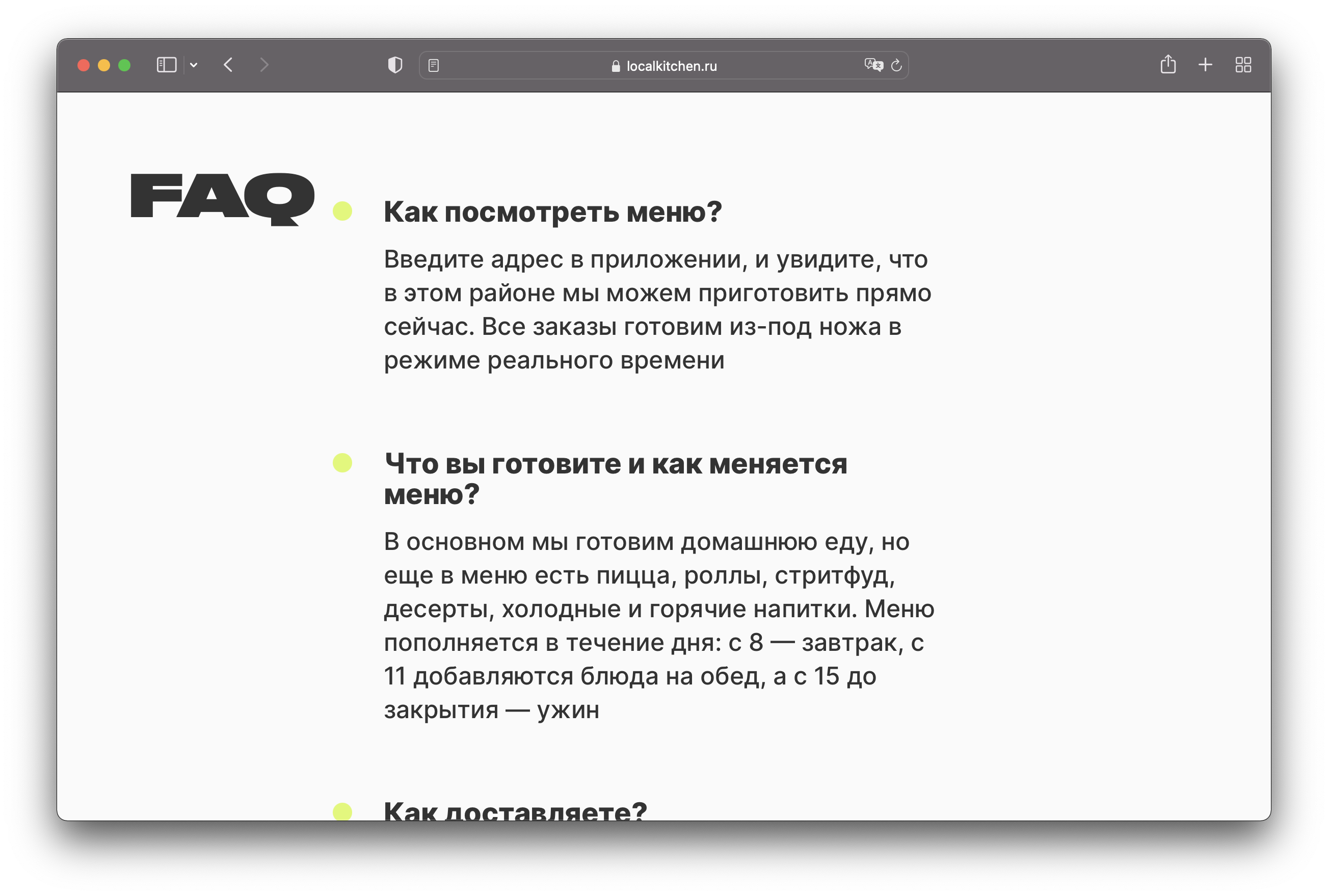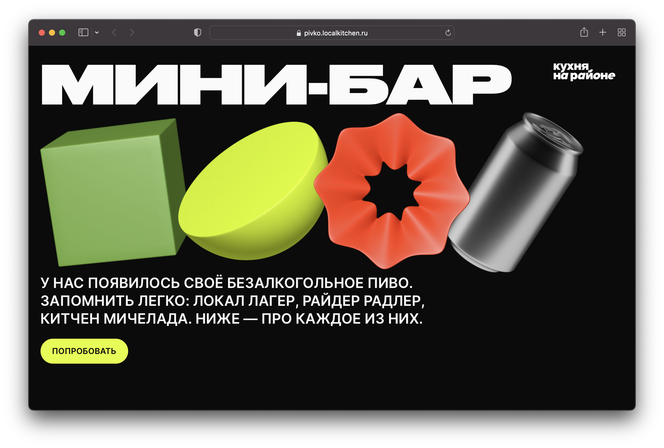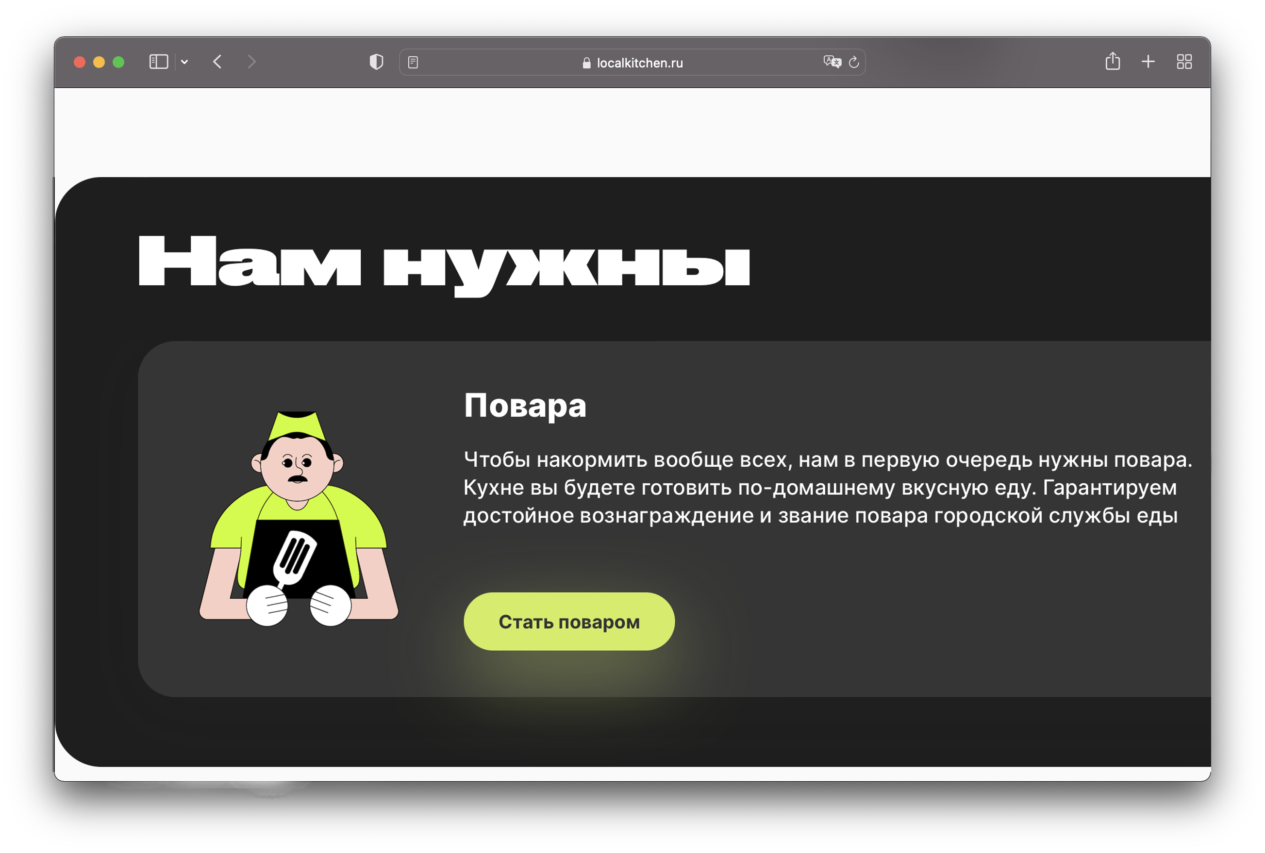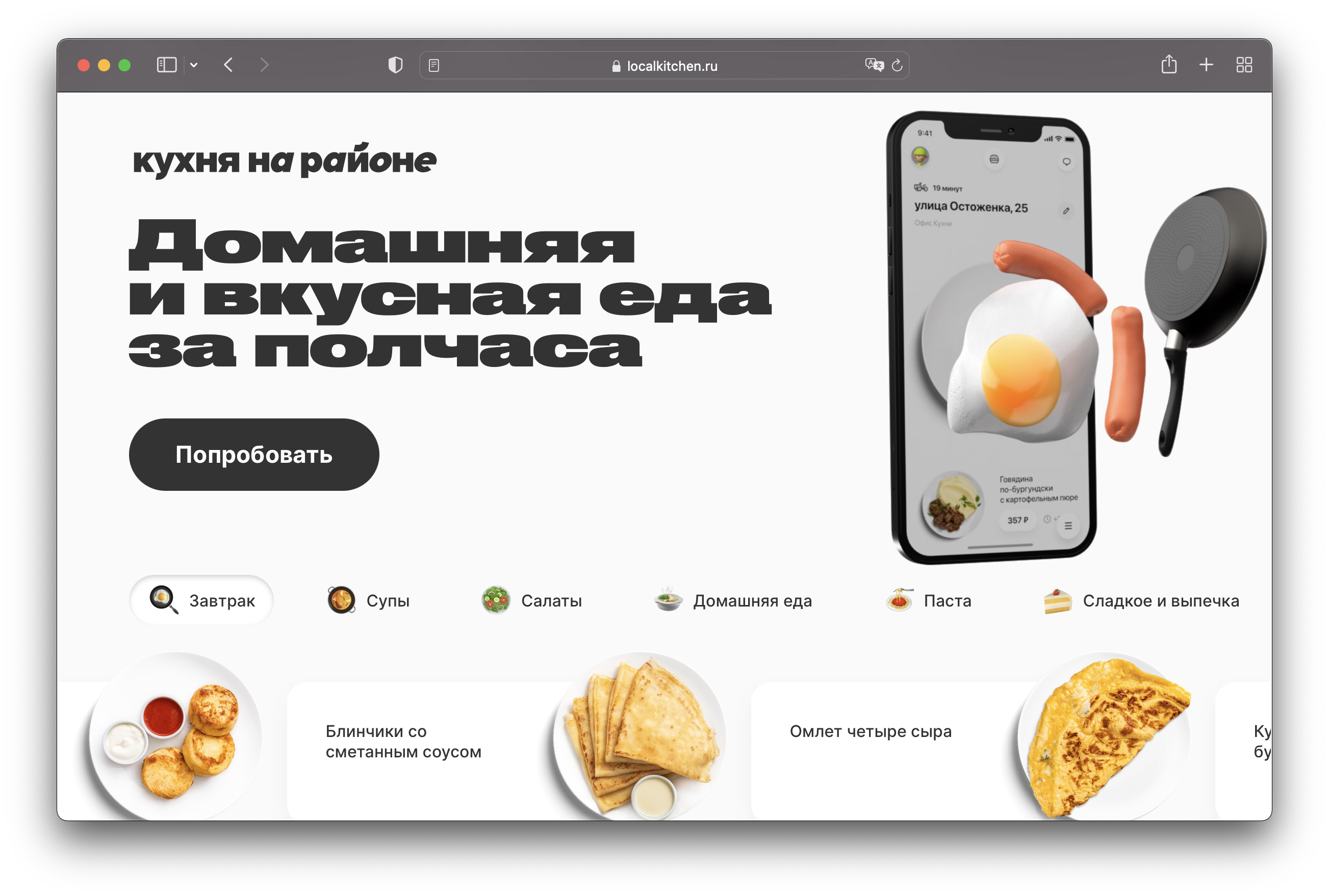 Кухня на районе (“Local Kitchen”) is a Moscow service that prepares and delivers home-cooked meals within 30 minutes. From 2017 to 2020 the project used Inter as the main typeface. Two years ago they added Druk Wide to their webpage and social media. In some cases, Pragmatica is added to the mix.