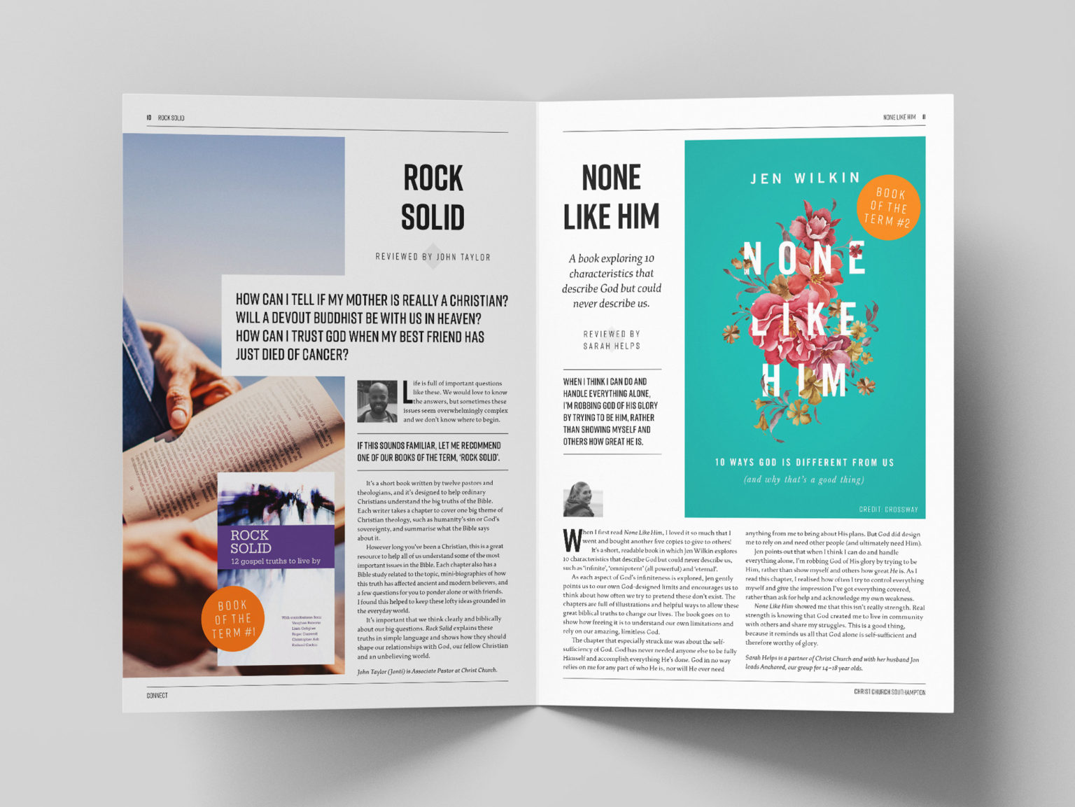 Sarah Fisher designed Connect, a quarterly magazine published by Christ Church Southhampton. She writes on her website: