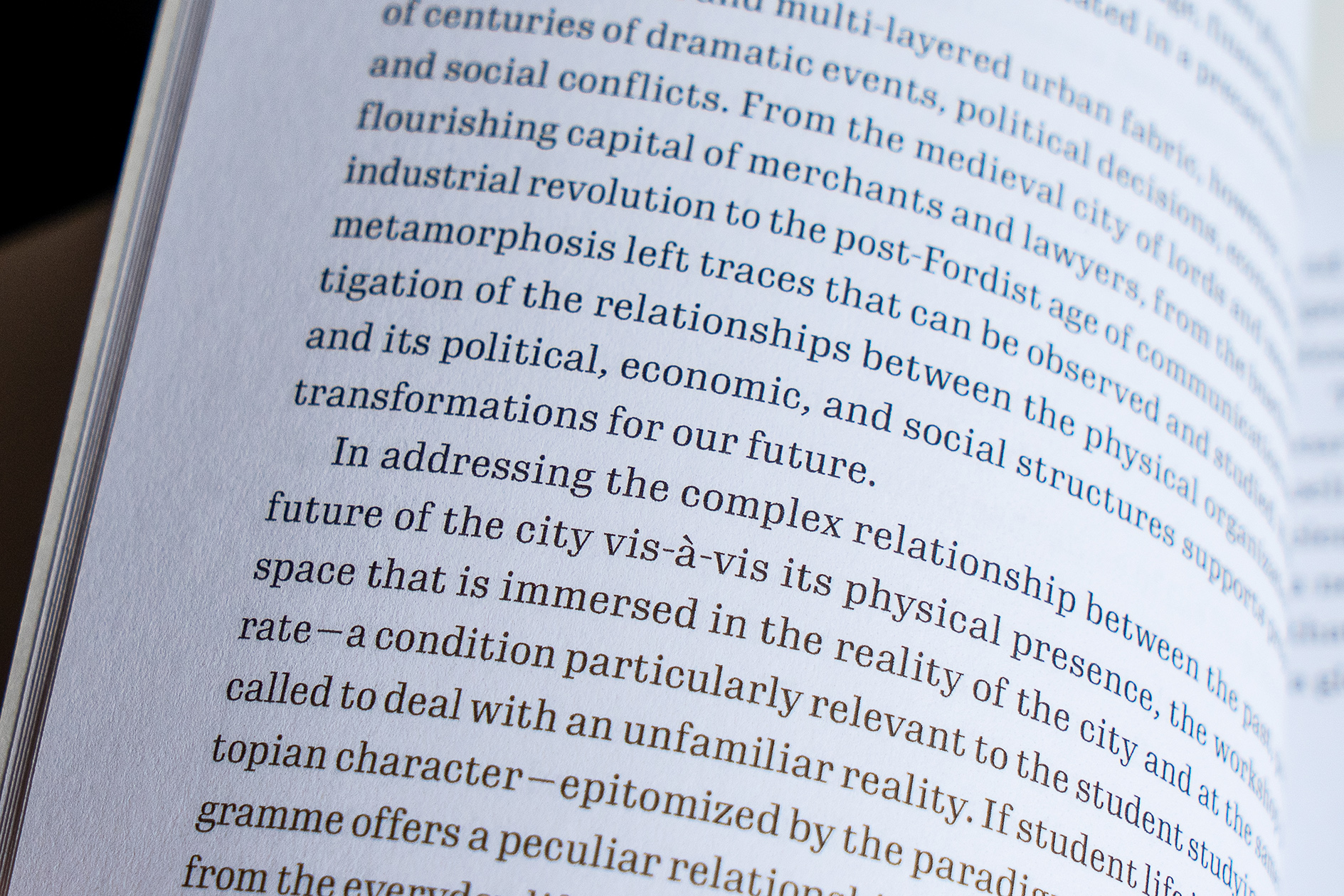 Through the course of the normal editing process, the wordcount dropped sufficiently that most of the text was ultimately set in Gimlet Condensed, with Gimlet Compressed stepping in occasionally to smooth over some hyphenation and justification sticking points. Once the wordcount had come down appreciably, we realized we had the option to revisit typeface options, but after we saw how well Gimlet performed through the less-than-crisp printing method our budget allowed, that discussion was over before it began.