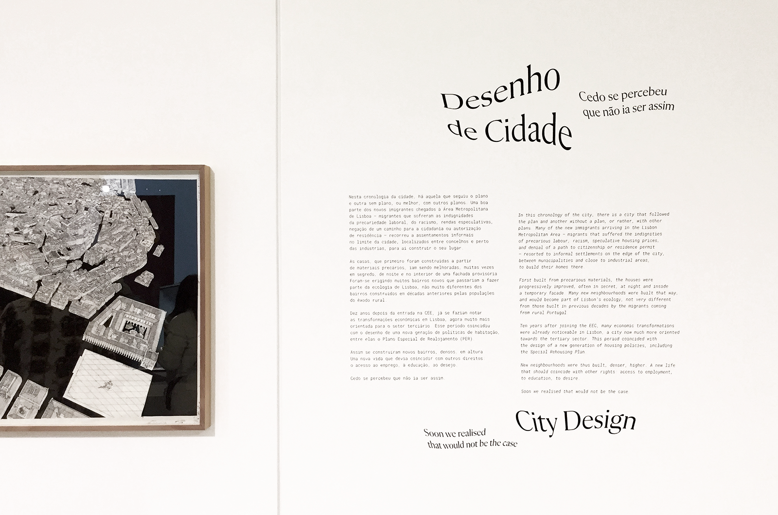 Designer Ana Teresa Assensão used two styles of Flecha for headlines – mostly distorted, sometimes outlined or set on a curve. Body copy and secondary information is set in Roboto Mono.