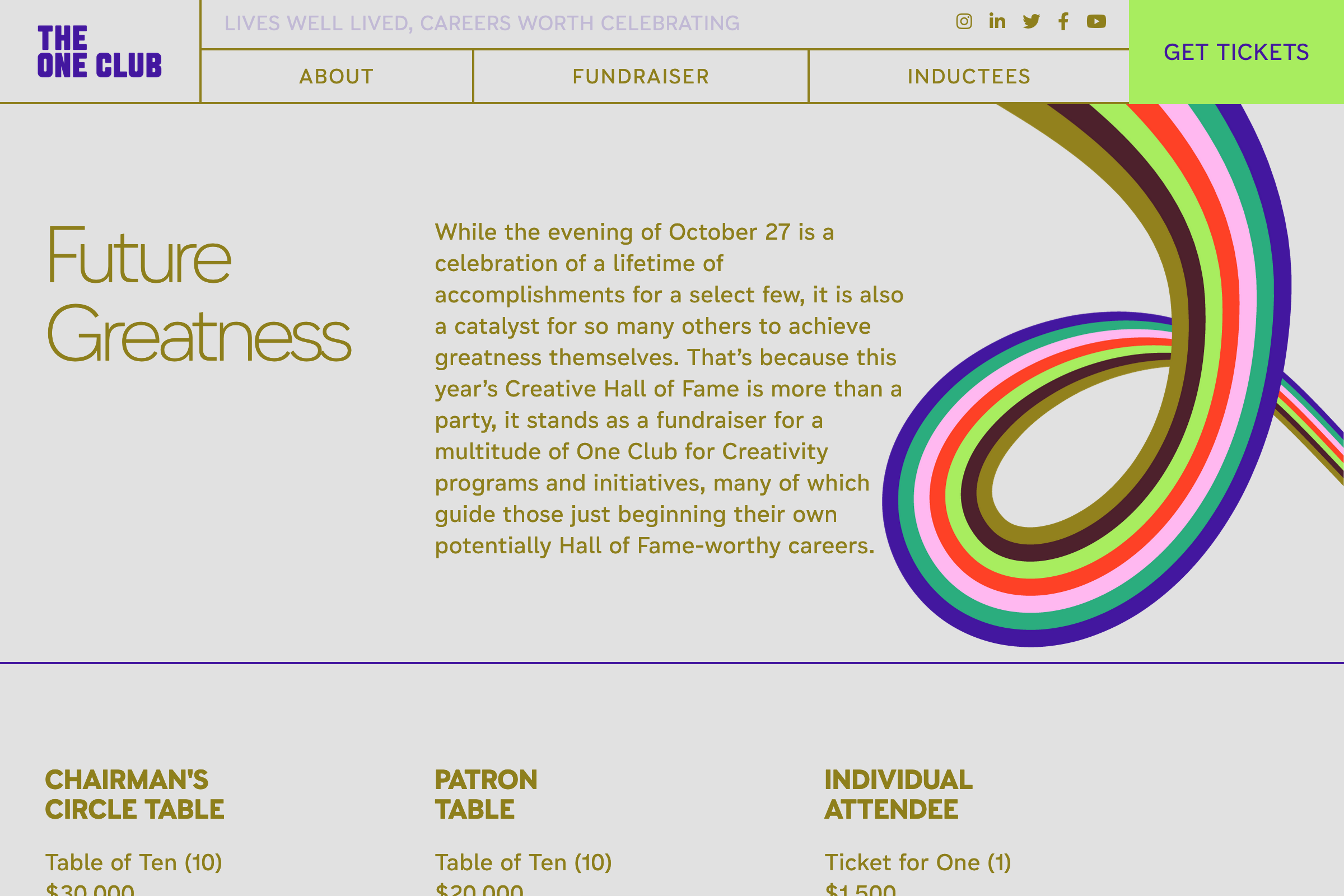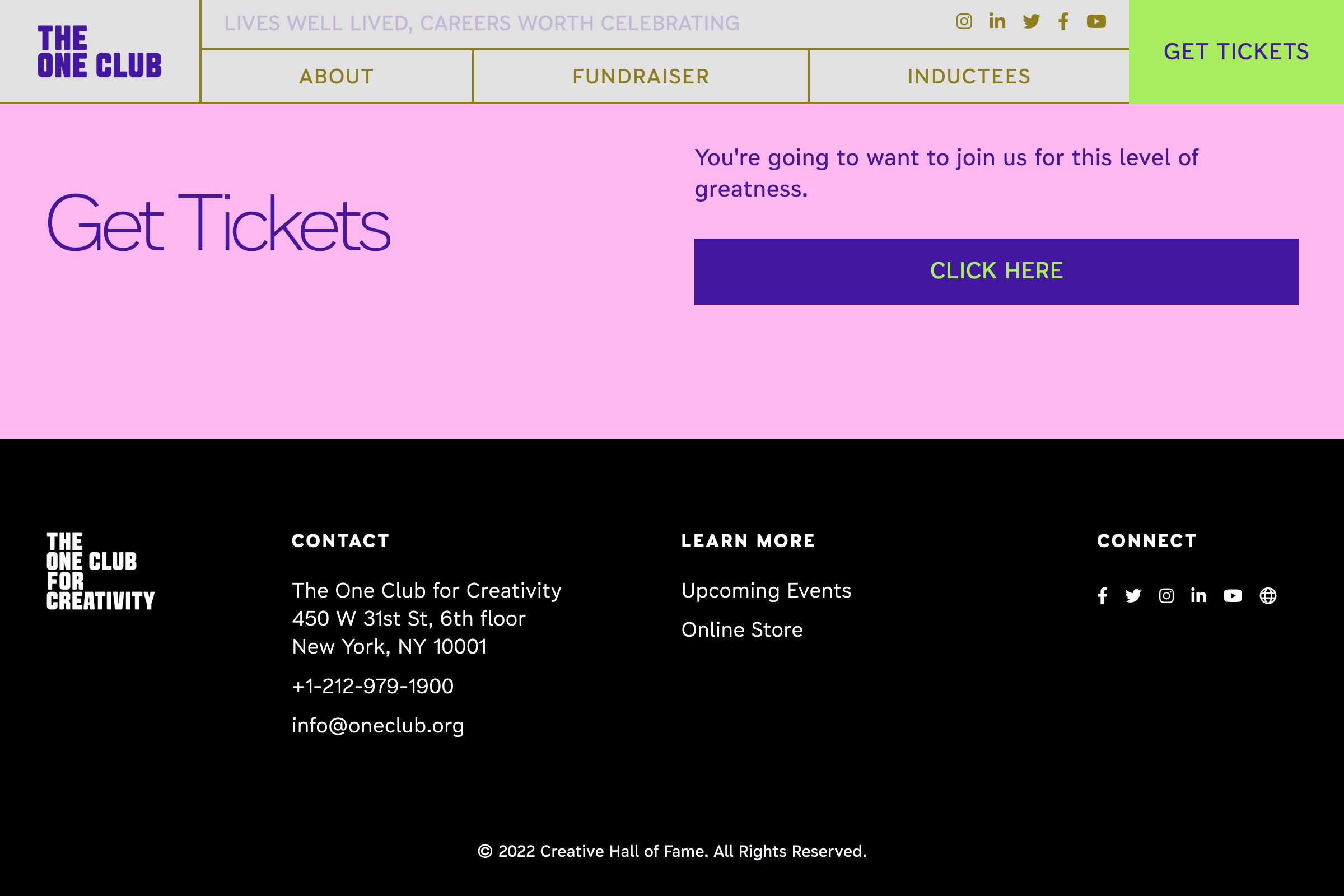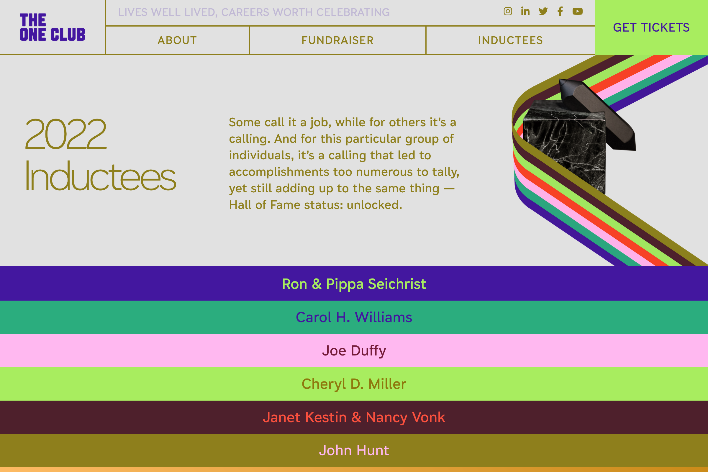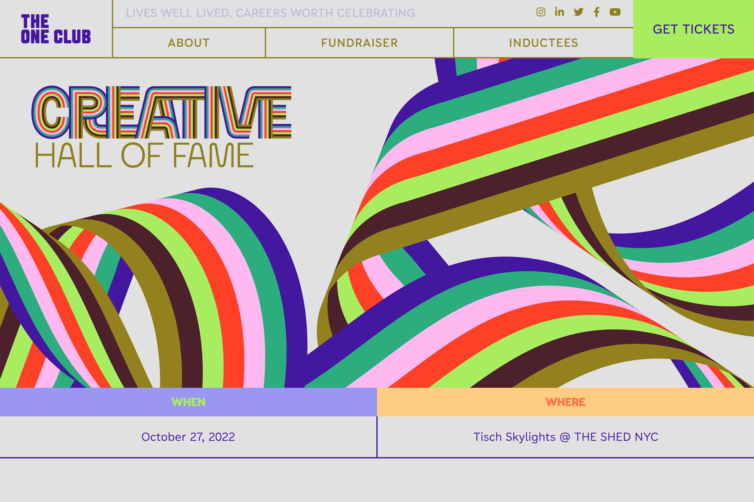 A website showcasing the Creative Hall of Fame 2022 inductees and promoting the induction ceremony in October 2022.