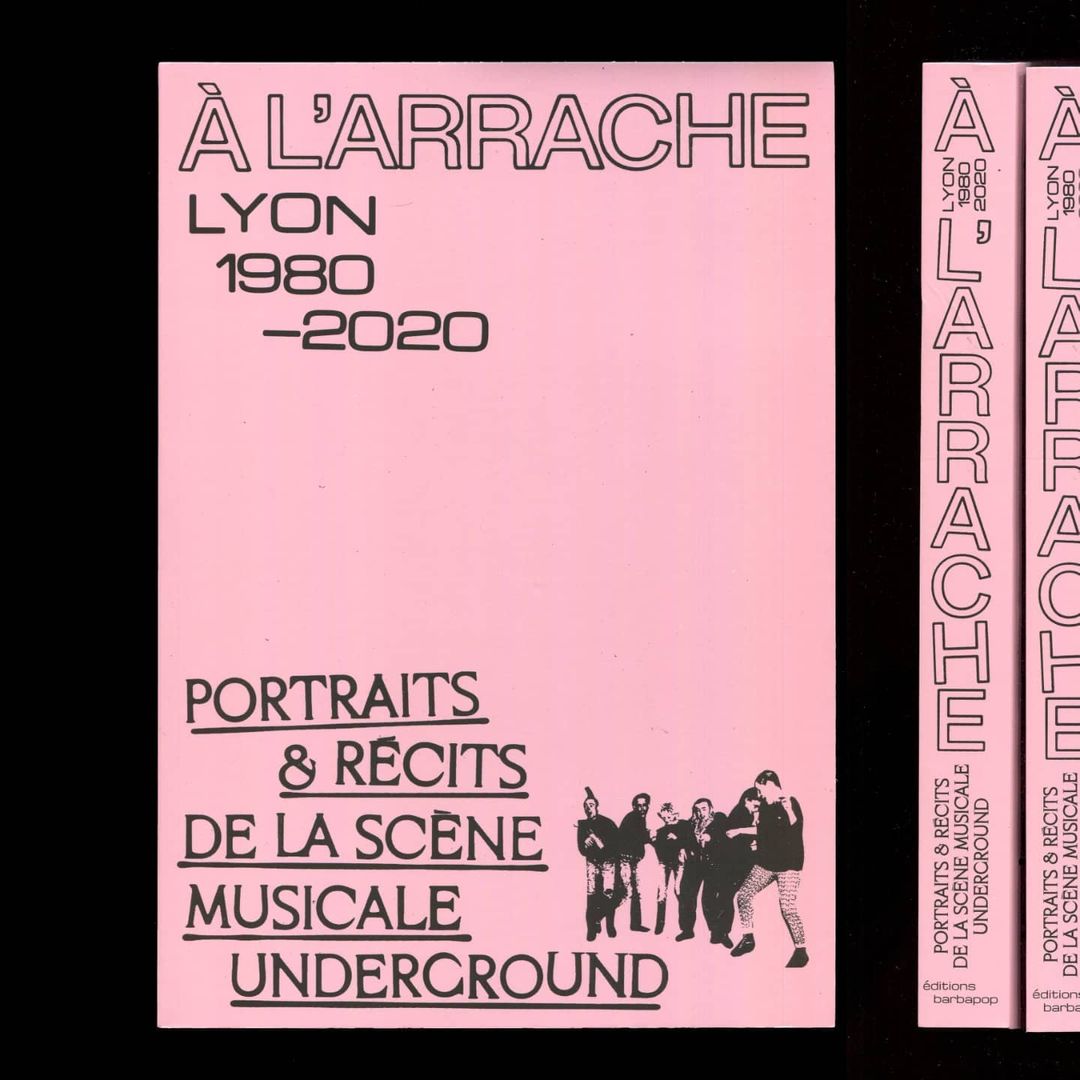 À l’Arrache is a book of 336 pages edited by Sébastien Escande, designed by Félicité Landrivon with Églantine Marcel, and published by Éditions Barbapop in 2021. It’s a collection of personal texts and archive documents on the underground music scene in Lyon from 1980 to today.