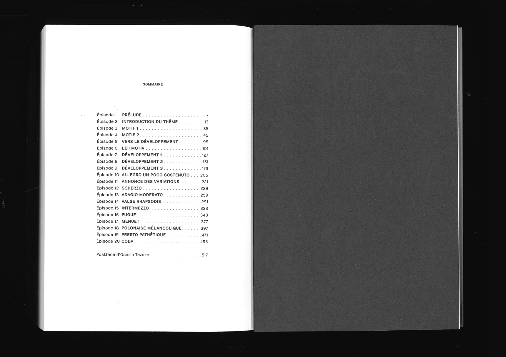 The whole book is set in Emilie Rigaud’s Pachinko (A is for fonts), a rounded font deeply rooted in Japanese culture, from which it derives its first inspiration and final name. The title uses Jérémy Landes’ Le Murmure (Velvetyne).