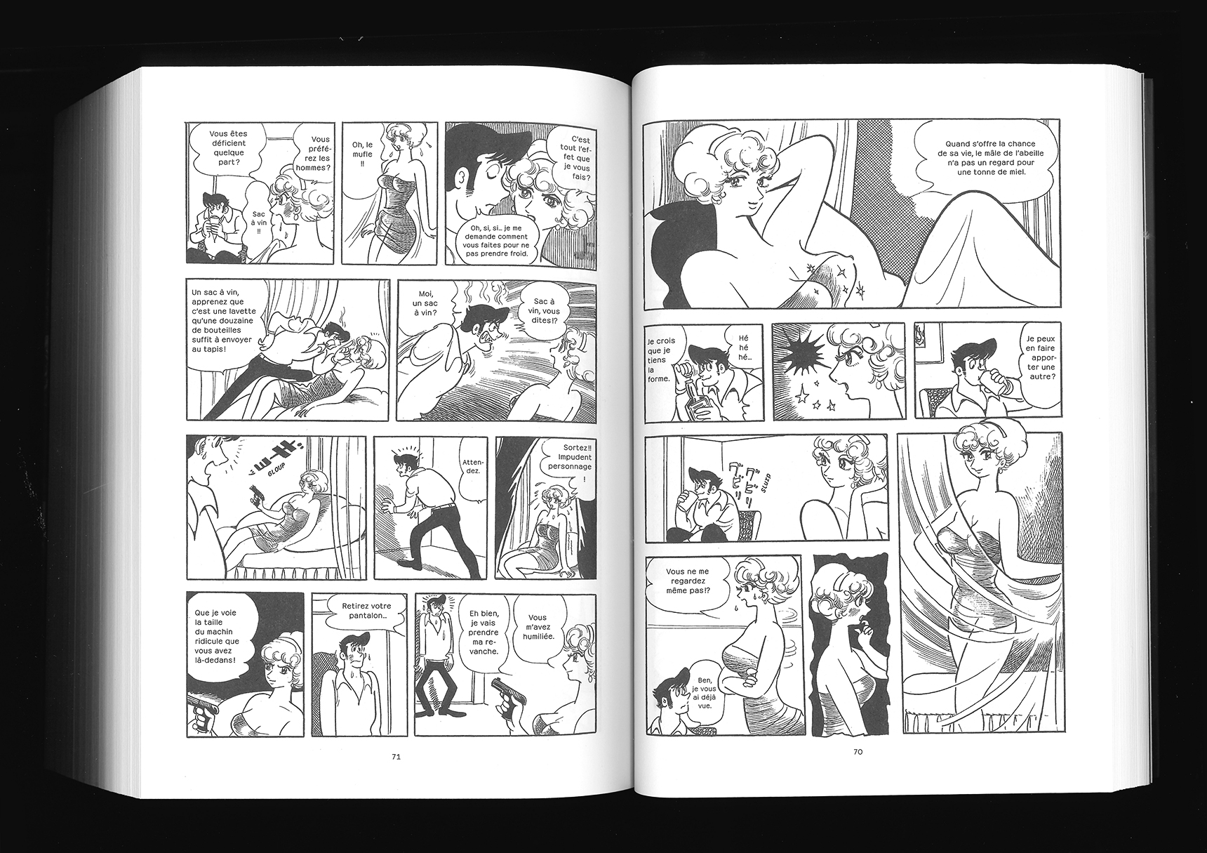 Avaler la Terre (“Swallow the Earth”) is a manga by Osamu Tezuka. It was translated to the French by Jacques Lalloz and Patrick Honnoré and published by Éditions FLBLB. It depicts the story of a scorned woman who makes her seven daughters promise to deliver the society of men to chaos, starting with issues with money and morals.